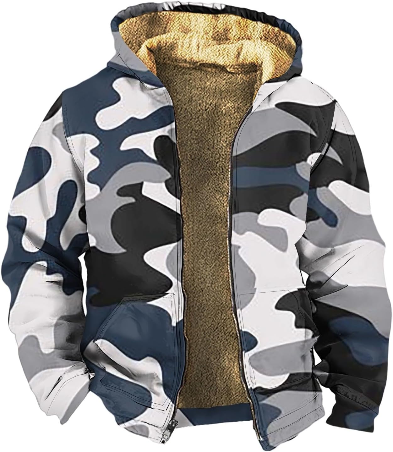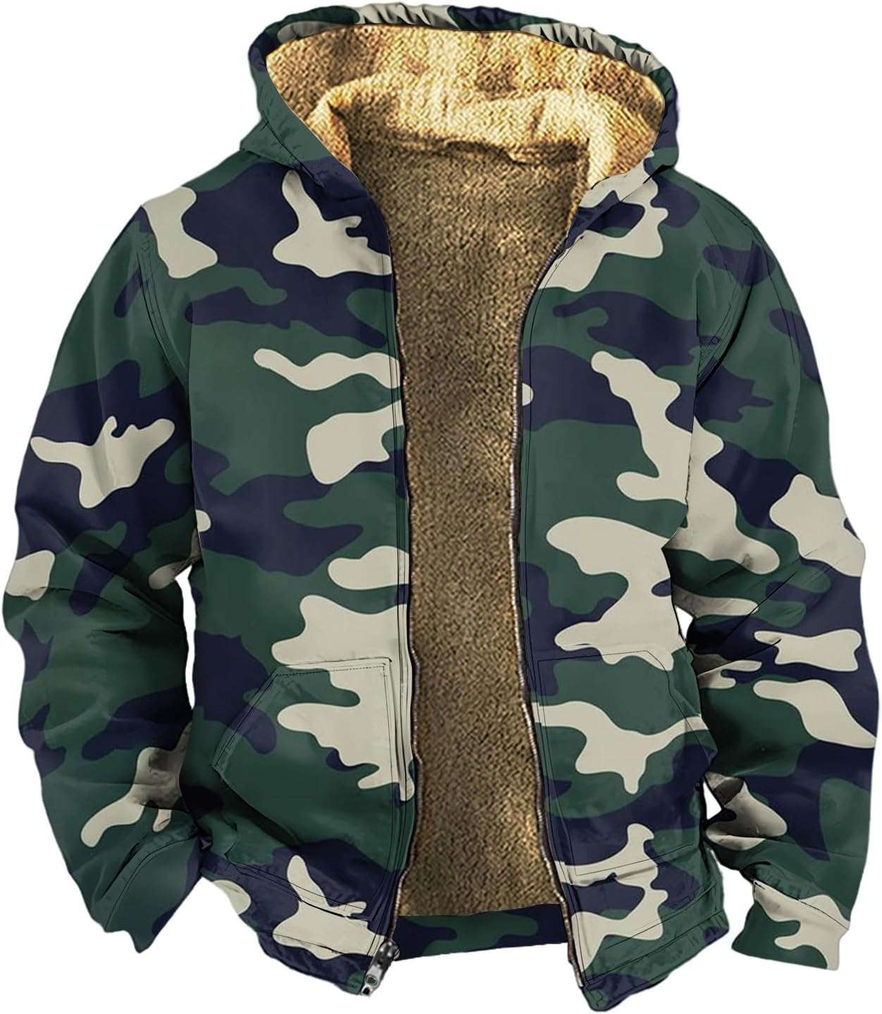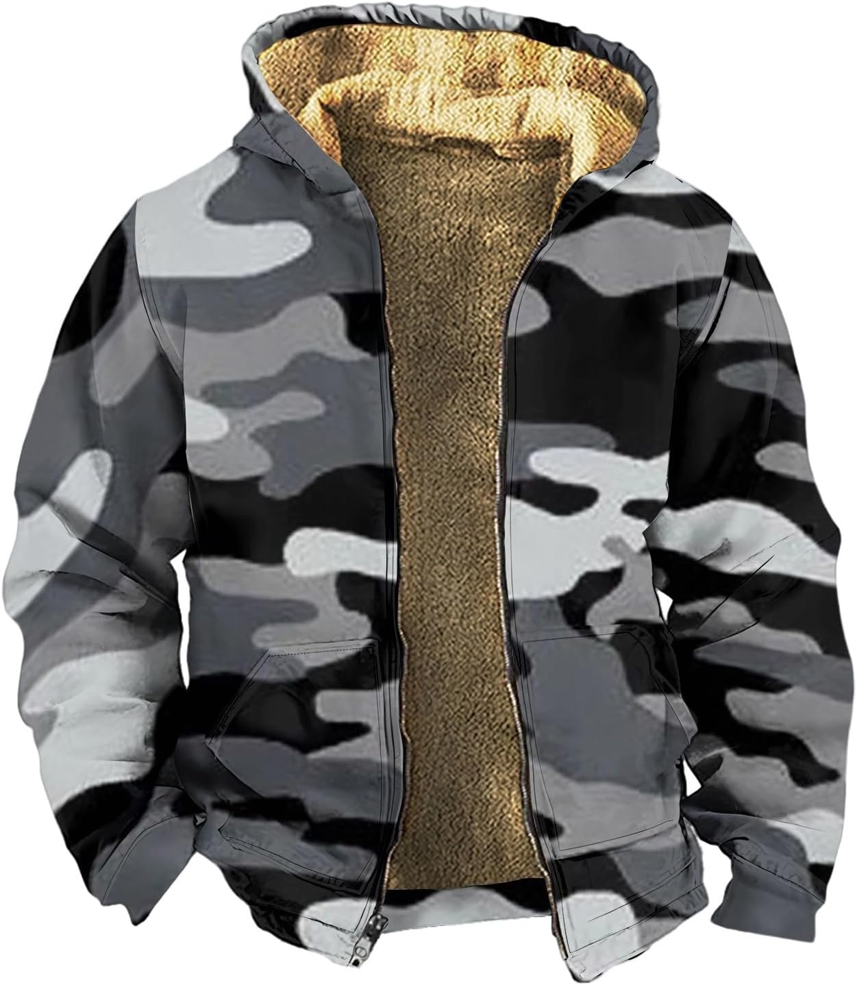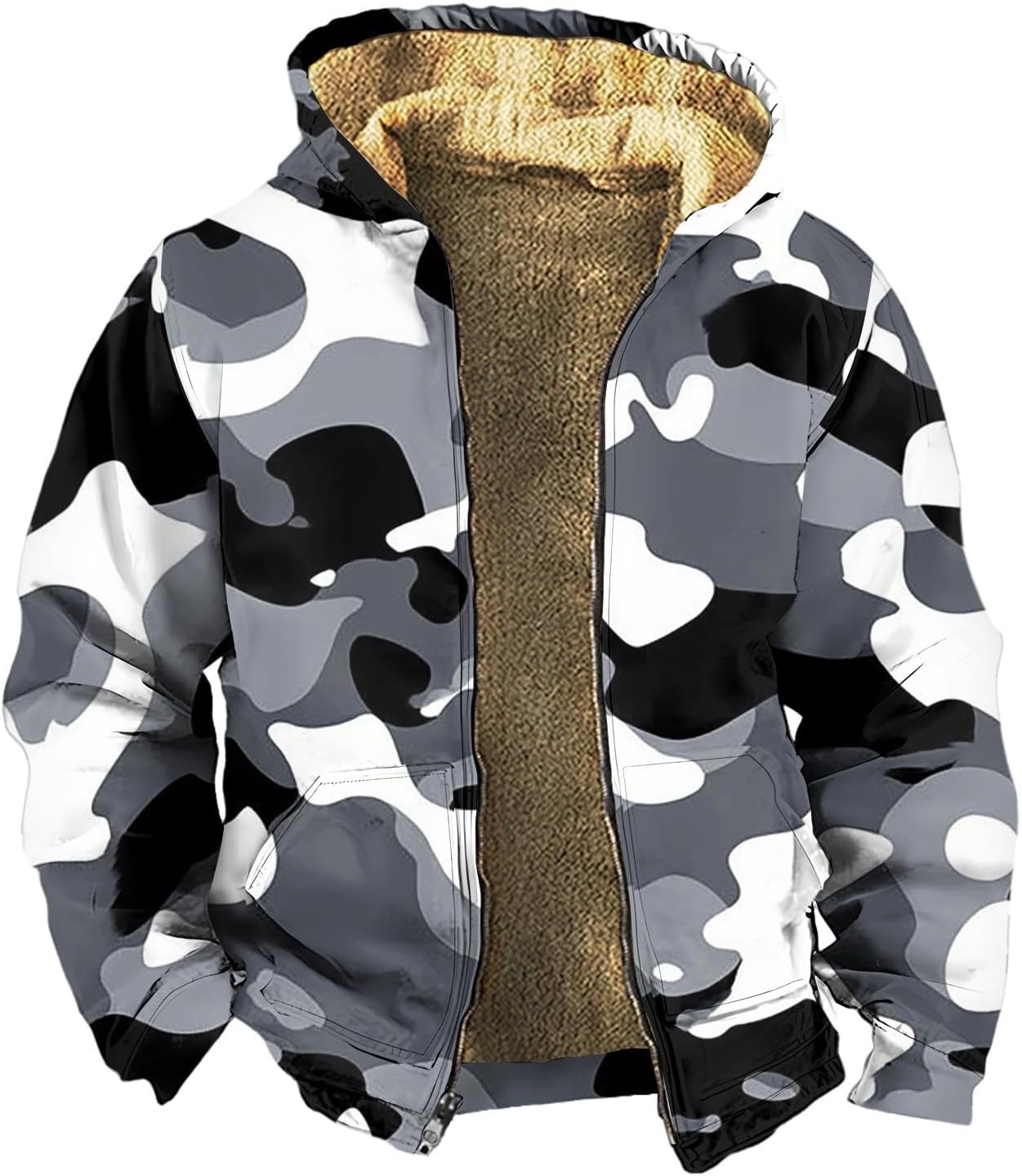 Casual Plus Size Coats Man Long Sleeve Camping Winter Hoodies Warm Outerwear Relaxed Fit Graphic Thick PocketWelcome to WHHFOOH store (✿◕ᴗ◕✿)Introducing our men's camo zip up hoodie, a must-have addition to any wardrobe this season.This stylish piece is crafted from high-quality materials, ensuring both comfort and durability.With its eye-catching camouflage design, this hoodie is perfect for those who want to make a statement while staying warm.The zip up feature allows for easy wear and removal, adding convenience to your daily routine.Inside, you'll a soft fleece that provides exceptional warmth, making it for chilly days and nights.Whether you're heading out for a casual stroll, in outdoor activities, or simply relaxing at home, this hoodie offers the perfect of style and comfort.Available in a range of sizes, including options for big and tall, this hoodie ensures a great fit for all body type.The adjustable drawstring hood provides additional comfort, while the durable construction guarantees long-lasting wear.Pair it with jeans or athletic wear for a versatile look that suits any occasion.As part of our winter jackets for men collection, this hoodie stands out as a reliable and fashionable choice.Don't let the cold compromise your style – choose our camo sweatshirt for a cozy and trendy option.Stay warm and enjoy the comfort of our men's hoodies this season.Product description:Product type: coatPattern type: PatternedSleeve type: Long SleeveNeck style: HoodedStyle name: CasualFront style: Pleated FrontTarget gender: MaleAge range description: AdultFit type: LooseTheme: Holidays