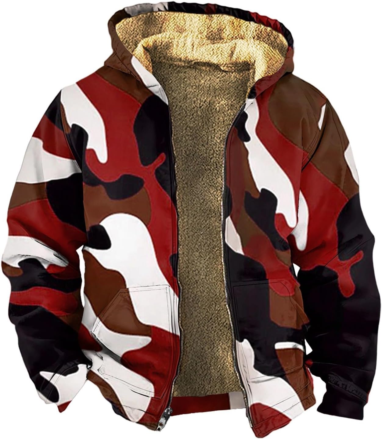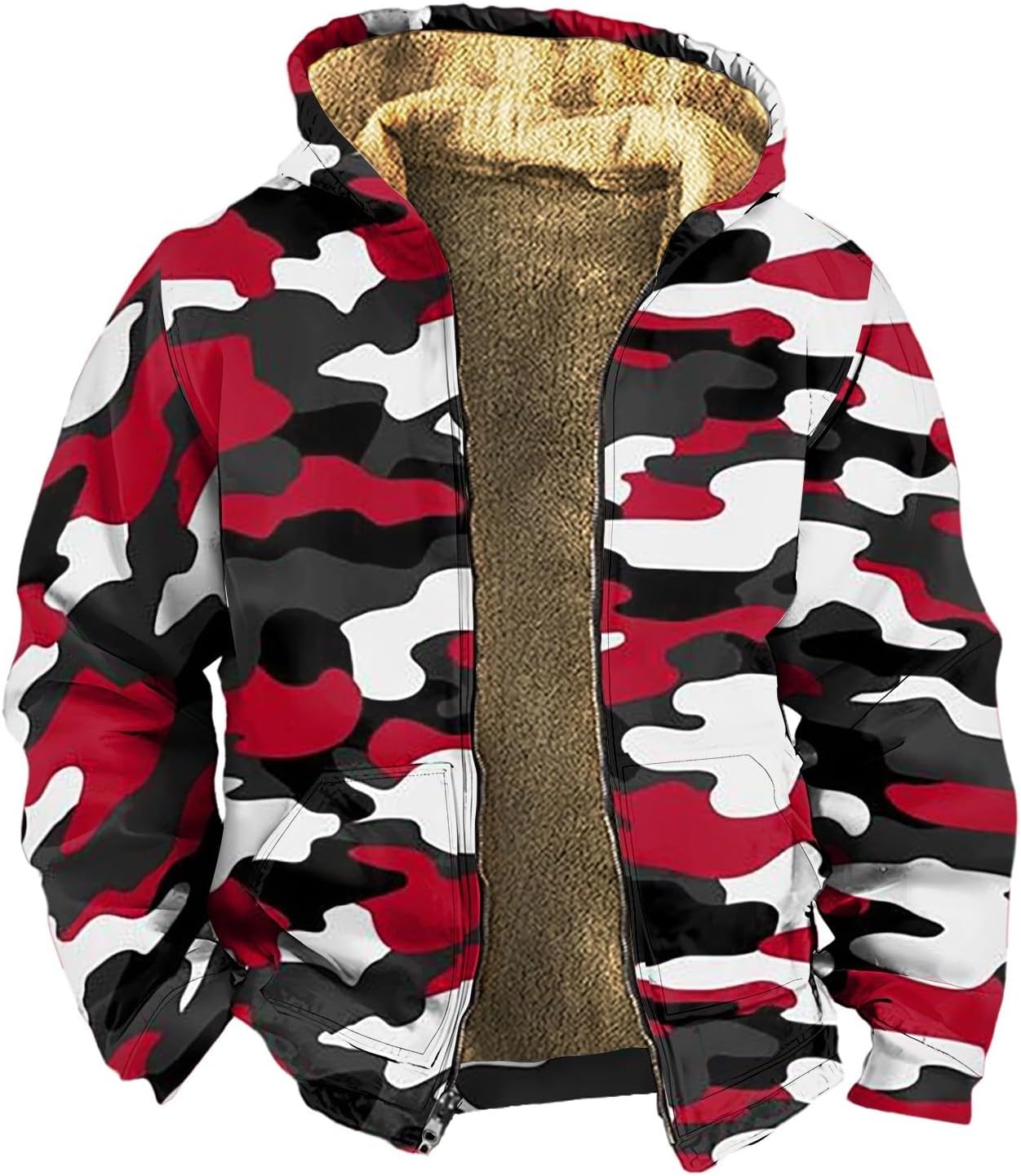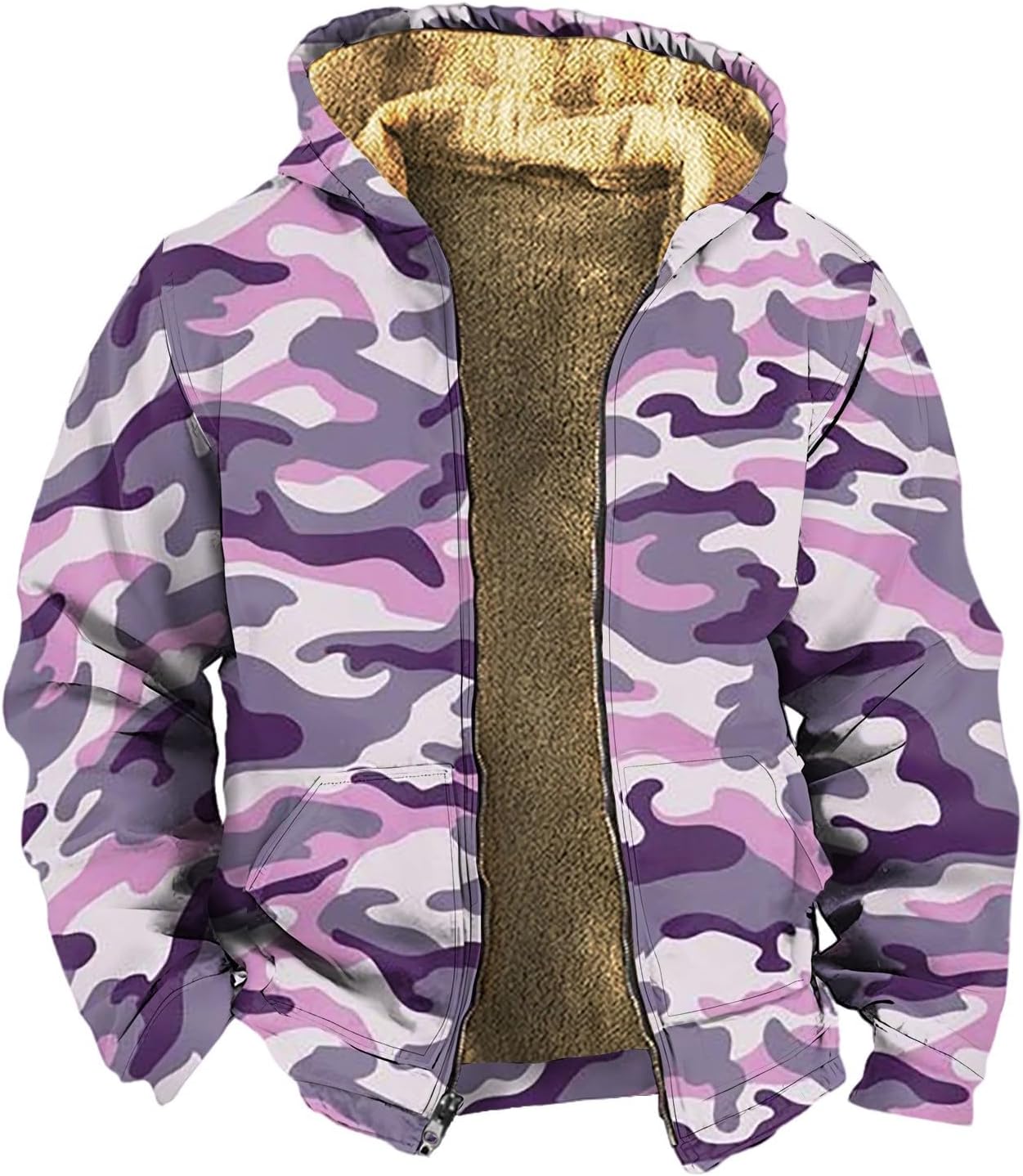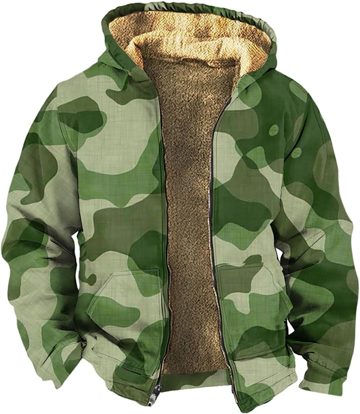 Casual Plus Size Coats Man Long Sleeve Camping Winter Hoodies Warm Outerwear Relaxed Fit Graphic Thick PocketWelcome to WHHFOOH store (✿◕ᴗ◕✿)Introducing our men's camo zip up hoodie, a must-have addition to any wardrobe this season.This stylish piece is crafted from high-quality materials, ensuring both comfort and durability.With its eye-catching camouflage design, this hoodie is perfect for those who want to make a statement while staying warm.The zip up feature allows for easy wear and removal, adding convenience to your daily routine.Inside, you'll a soft fleece that provides exceptional warmth, making it for chilly days and nights.Whether you're heading out for a casual stroll, in outdoor activities, or simply relaxing at home, this hoodie offers the perfect of style and comfort.Available in a range of sizes, including options for big and tall, this hoodie ensures a great fit for all body type.The adjustable drawstring hood provides additional comfort, while the durable construction guarantees long-lasting wear.Pair it with jeans or athletic wear for a versatile look that suits any occasion.As part of our winter jackets for men collection, this hoodie stands out as a reliable and fashionable choice.Don't let the cold compromise your style – choose our camo sweatshirt for a cozy and trendy option.Stay warm and enjoy the comfort of our men's hoodies this season.Product description:Product type: coatPattern type: PatternedSleeve type: Long SleeveNeck style: HoodedStyle name: CasualFront style: Pleated FrontTarget gender: MaleAge range description: AdultFit type: LooseTheme: Holidays