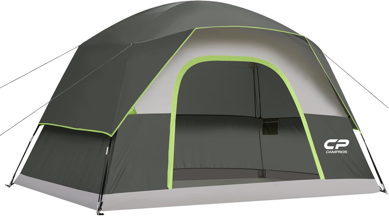 BRING YOU A UNIQUE CAMPING EXPERIENCE CAMPROS CP 4/6 PERSON DOME TENT CAMPROS is a traditional company from Cambodia, produce outdoor products include different sizes of tents, camp chairs, canopy, etc. We're a team of energetic people crazy for outdoor activities. We're working on offering customers better value products. Giving people a lower cost to close to nature Weather Protection No particular skills needed, 2 people could set up the tent easily in 5 min. High-tech coating material with sealed seams and waterproof strip keeps the water out. Gear loft with lantern hook, mesh storage pockets keep small items well organized. 20% More Headroom The nearly vertical walls that allow for 20% more headroom. 5 Minutes Setup, 2 Simple poles make setup and teardown much easier. Waterproof Rainfly - High quality waterproof fabric keep the inside of the tent dry and comfortable. Extended Door Awning Wider Open Door Much easier to move in and out the airbeds, sleeping bags and other gear. Excellent Ventilation - The camping tent with big breathable mesh design and removable rainfly provides great ventilation. Extended Door Awning - No Water Leakage
