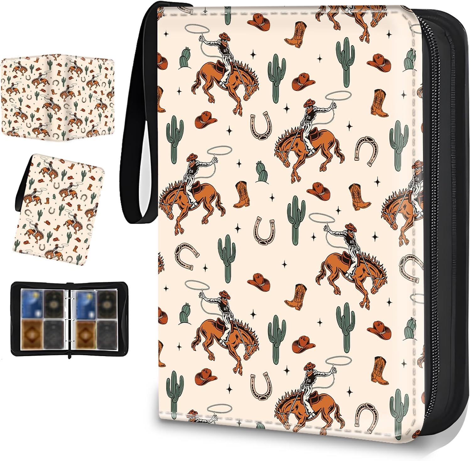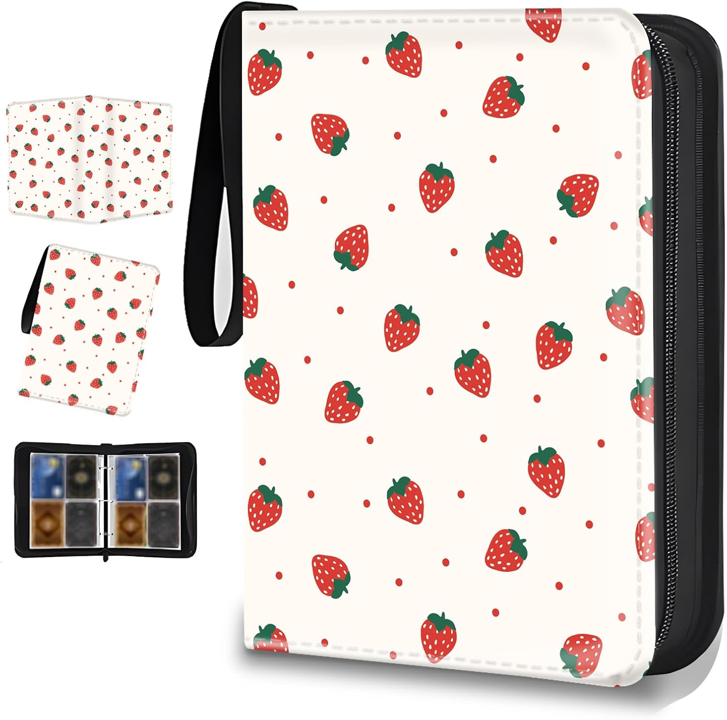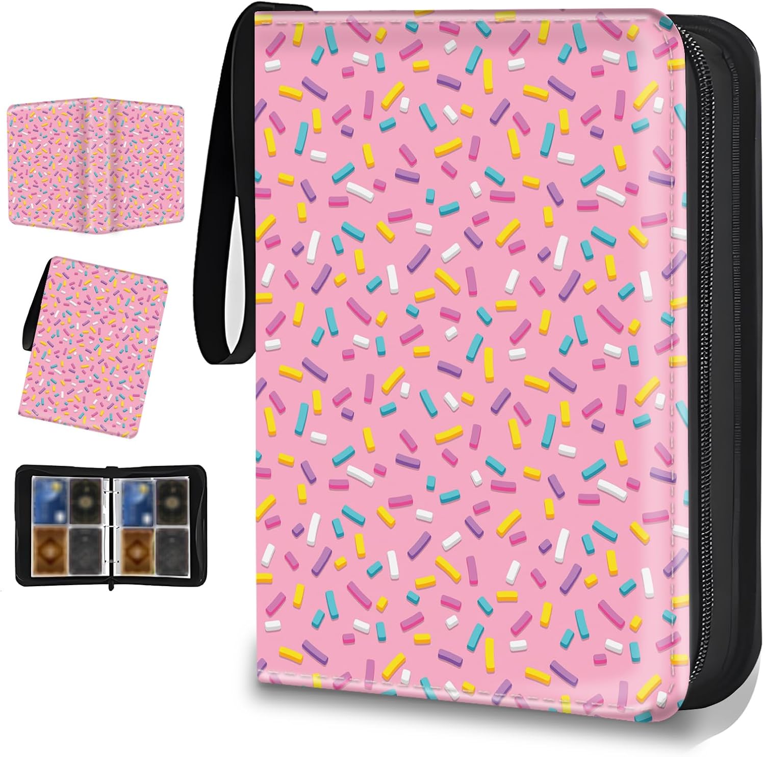 【400 Cards Storage】: The card binder size is 9.7*7*2 inches. The 4 pocket trading card binder has 50 pages of paper built-in, holds a total of 400 cards. Each pocket of the card pages measures 2.8*3.9 inches, which can perfectly hold the cards you want to collect and keep them intact.【Waterproof PU Material】: Collection Binder is made of PU leather that is waterproof, dustproof and wear-resistant. The two-way strong metal zipper design prevents cards from getting lost while carrying, the soft inner lining prevents damage and is transparent for easy display and browsing.【3-Ring Design & Portable】: The removable card binder sleeves have three metal ring switches to allow you to add or remove card sleeves at any time. Each card binder comes with a high quality wrist strap to make it more portable and able to fulfill all your collecting needs.【Multiple Protection】: The card holder all help us to better manage and categorize card book, game card, sports cards all kinds of cards more practically. This zipper card binder can effectively protects your cherished greeting cards from wear and tear, providing maximum security and durability.【Ideal Gift】: Our card binder is designed for trading card enthusiasts! With a sophisticated look and beautiful color scheme, it will catch your attention as soon as you see it. Perfect gift for card collectors, friends and kids for birthdays, New Year, Thanksgiving, Christmas.