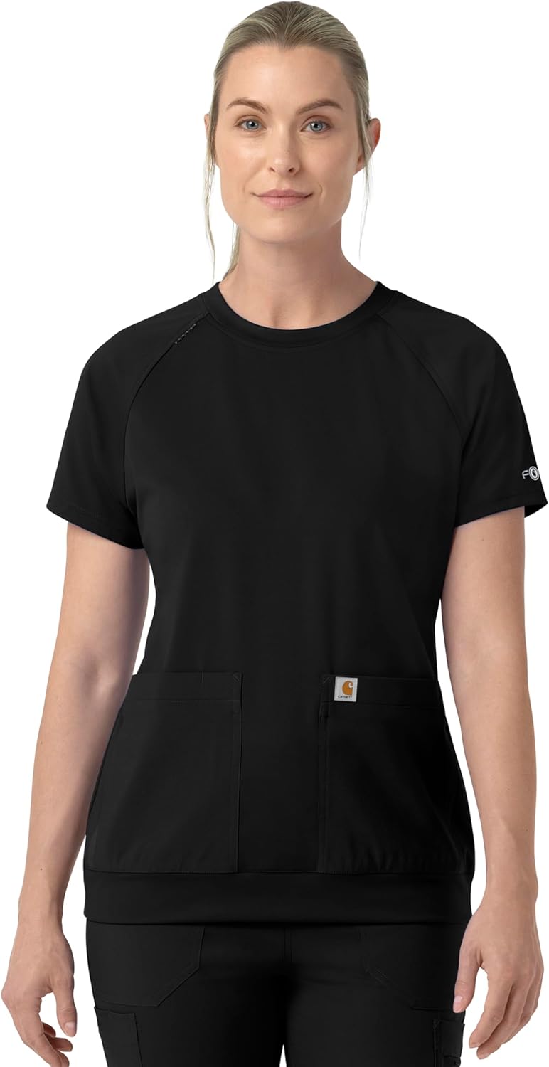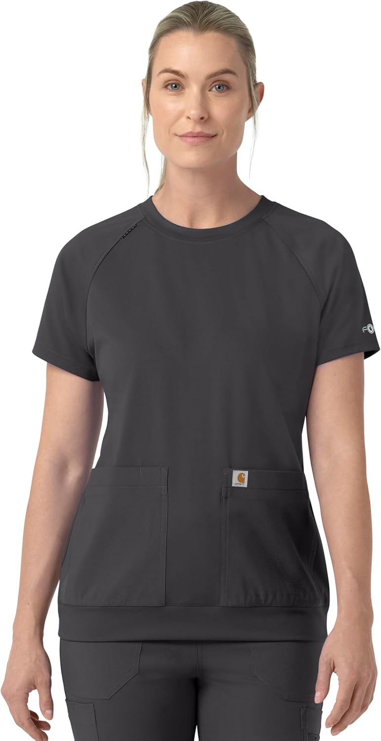 Built strong and worn easy, the Force Cross-Flex Knit Women’s Crew Neck Scrub Top by Carhartt is made for long shifts and demanding days. Designed to deliver work-ready toughness with everyday comfort, this women’s scrub top is crafted from soft, breathable four-way stretch knit fabric that moves with you while wicking away moisture and drying fast. It keeps you cool, comfortable, and focused—even when the pace picks up. As a core style in the Force Cross-Flex collection, this scrub top features Rugged Flex™ technology and reinforced stitching at high-wear points for durability you can count on shift after shift. The modern fit gently skims the body for a clean, professional look, while the classic crew neckline and raglan sleeves provide unrestricted arm movement. Functional storage, a secure banded hem, and a shoulder badge loop round out this reliable essential from Carhartt scrubs, built to be worn on repeat.
