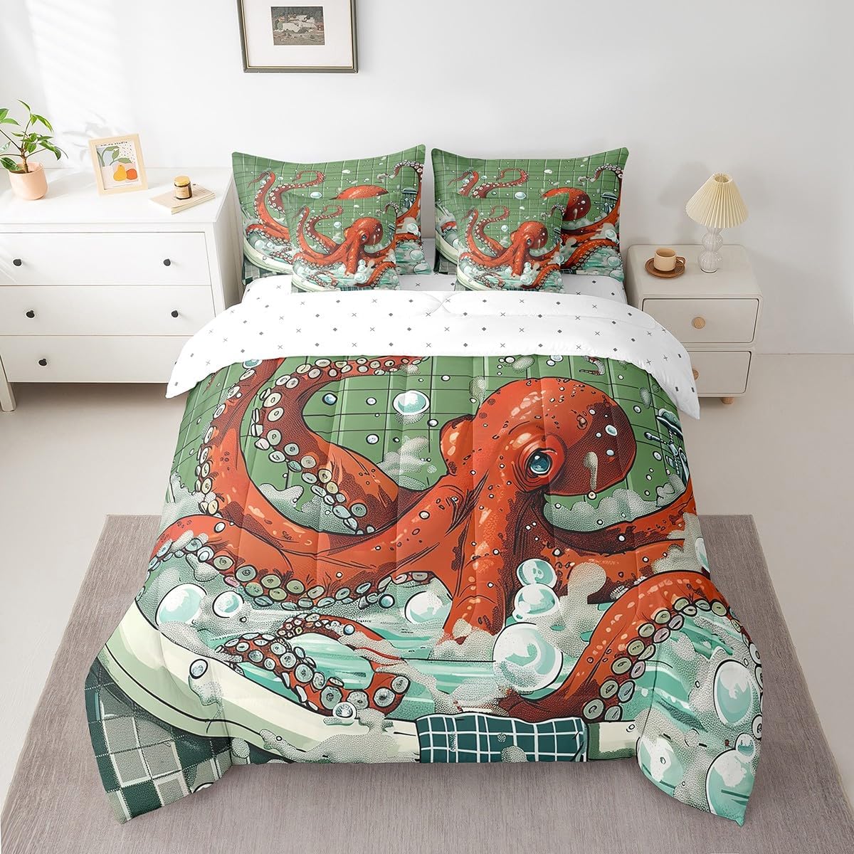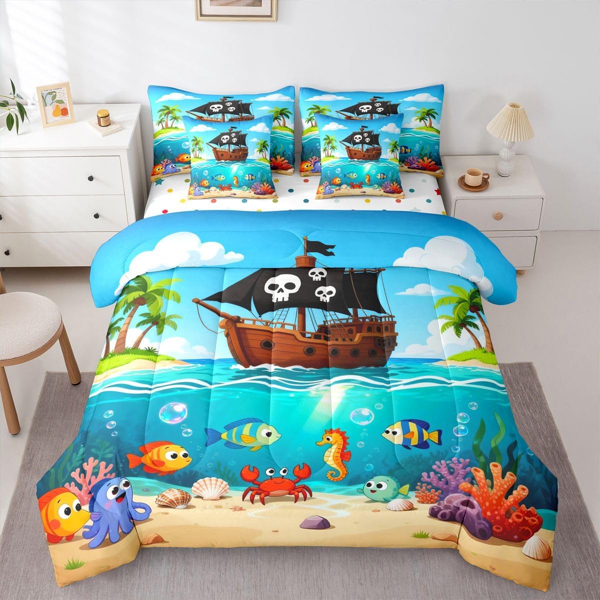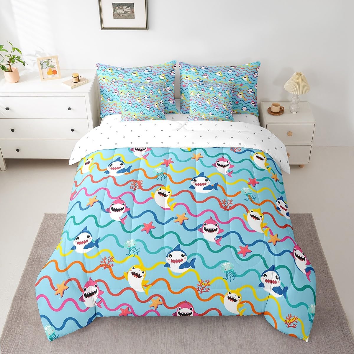 Welcome to our store. Size information: Twin size: 1 Comforter 68"W x 90"L and 1 Fitted Sheet 39"W x 75"L x 16"H and 1 Flat Sheet 67"W x 96"L and 2 Pillowcases 20" x 30" and 2 Throw Pillow Covers 18" x 18" . Full size: 1 Comforter 79"W x 90"L and 1 Fitted Sheet 55"W x 75"L x 16"H and 1 Flat Sheet 81"W x 96"L and 2 Pillowcases 20" x 30" and 2 Throw Pillow Covers 18" x 18" . Queen size: 1 Comforter 90"W x 90"L and 1 Fitted Sheet 60"W x 80"L x 16"H and 1 Flat Sheet 90"W x 102"L and 2 Pillowcases 20" x 30" and 2 Throw Pillow Covers 18" x 18" . King size: 1 Comforter 104"W x 90"L and 1 Fitted Sheet 78"W x 80"L x 16"H and 1 Flat Sheet 90"W x 106"L and 2 Pillowcases 20" x 36" and 2 Throw Pillow Covers 18" x 18" . Useful and practical: A luxurious product for homes,dorm rooms,hotels,guest rooms.Practical to use for being polyester, feels like cotton which is super soft and breathable.No chemicals used, no dye substance harming the health of you or your family. Unique design: Vivid Colors won't fade thanks to new 3d digital printing methods. These unique designs match well with various color palettes of your rugs, curtains, headboard, furniture, and all other decor accessories. Washing instructions: Machine wash it in cold water without bleach,and tumble dry on low heat to restore its freshness and appearance.