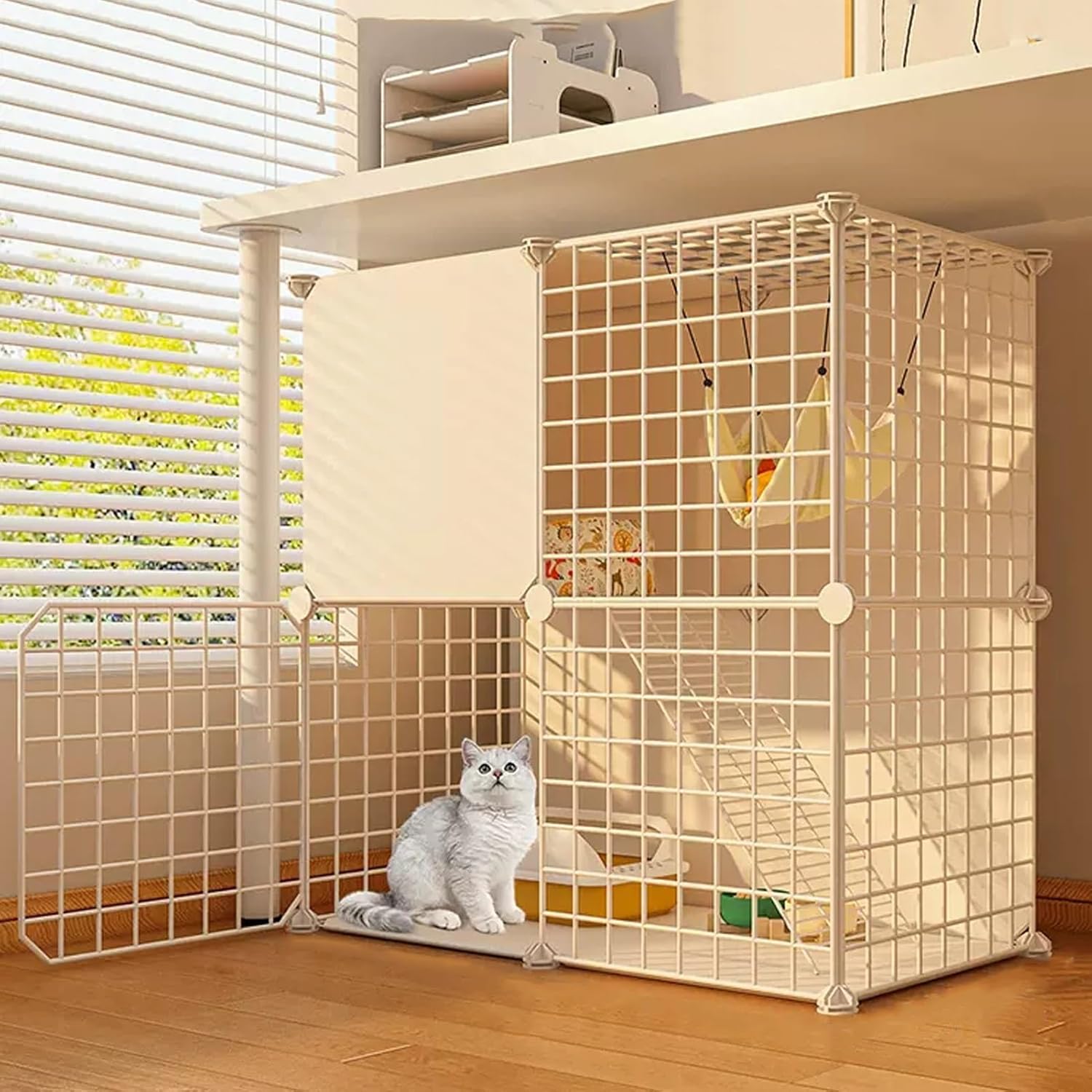 Introducing our sturdy and versatile cat cage, perfect for pet owners who want a safe and comfortable space for their furry friends. Made to provide ample space for your pets to roam in, this cage is made with sturdy materials that ensure durability and longevity.Product name: DIY detachable cat cage / Cat kennels / Cat crate / Cat enclosure / Pet fence / Pet playpen / Cat house / Cat cage villa / Cat apartment cage / CatterySize: (The size is as shown in the picture)29.5*15.4*28.7in/75*39*73cm , 43.7*15.4*14.7in/111*39*37cm , 43.7*15.4*28.7in/111*39*73cmColours: whiteMaterial: metal, ABS plasticAssembly Required: YesMount Type: Floor StandingNumber of Cats Accommodated: 1-3Application:This product is suitable for about 1-3 cats. It is ideal for homes, pet stores, pet hospitals, catteries, balconies, and near the window for cats to scratch, bump, play, and rest.Package includes:Cat cage + Installation tools + ladderPlease note:1. Manual measurement, please allow slight size deviation.2. The color may have a little difference due to different screen displays.3. The cat supplies in the photo are for display and reference purposes only (not for sale).