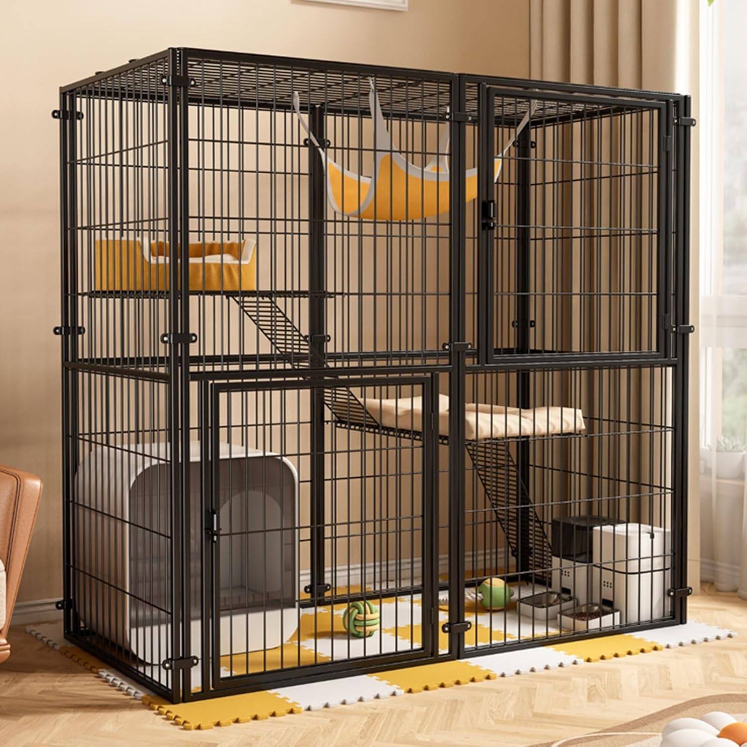 The gate is large enough for cats to get in and out easily. Threshold-free design, fully enclosed litter box for easy entry and exit.The multi-angle connectors help to secure the unit and avoid wobbles. Your lovely pet will have enough space to play, keeping active and staying safe within the boundaries of this cage.○Product name: Top cover cat fence○Material: Iron○Product color: black, white○Product size:23.6×23.6×23.6in, 47.2×23.6×23.6in, 49.2×23.6×47.2in○Packaging: 1*cat cage○Assembly: Need to assemble by yourself○Usage scenarios: home bedroom, living room, outdoor, etc.○Features: With a top cover, the space can be infinitely enlarged, and a fully enclosed cat litter box can be placed○Tips:1. Due to lighting, shooting, display and other factors, there may be differences between the picture and the actual color of the product, please refer to the actual product!2. This product is measured manually, and there may be a slight error of 1-3cm. Please confirm the actual product for details.
