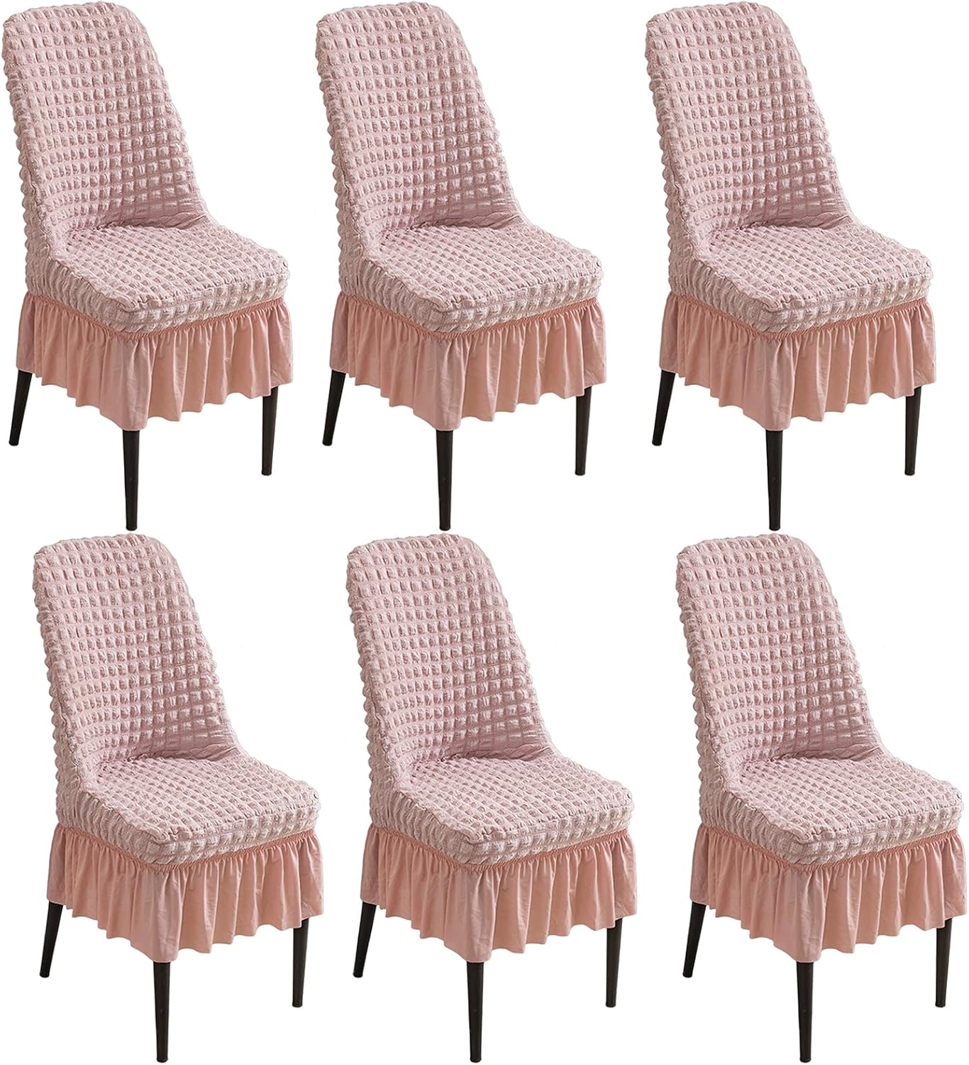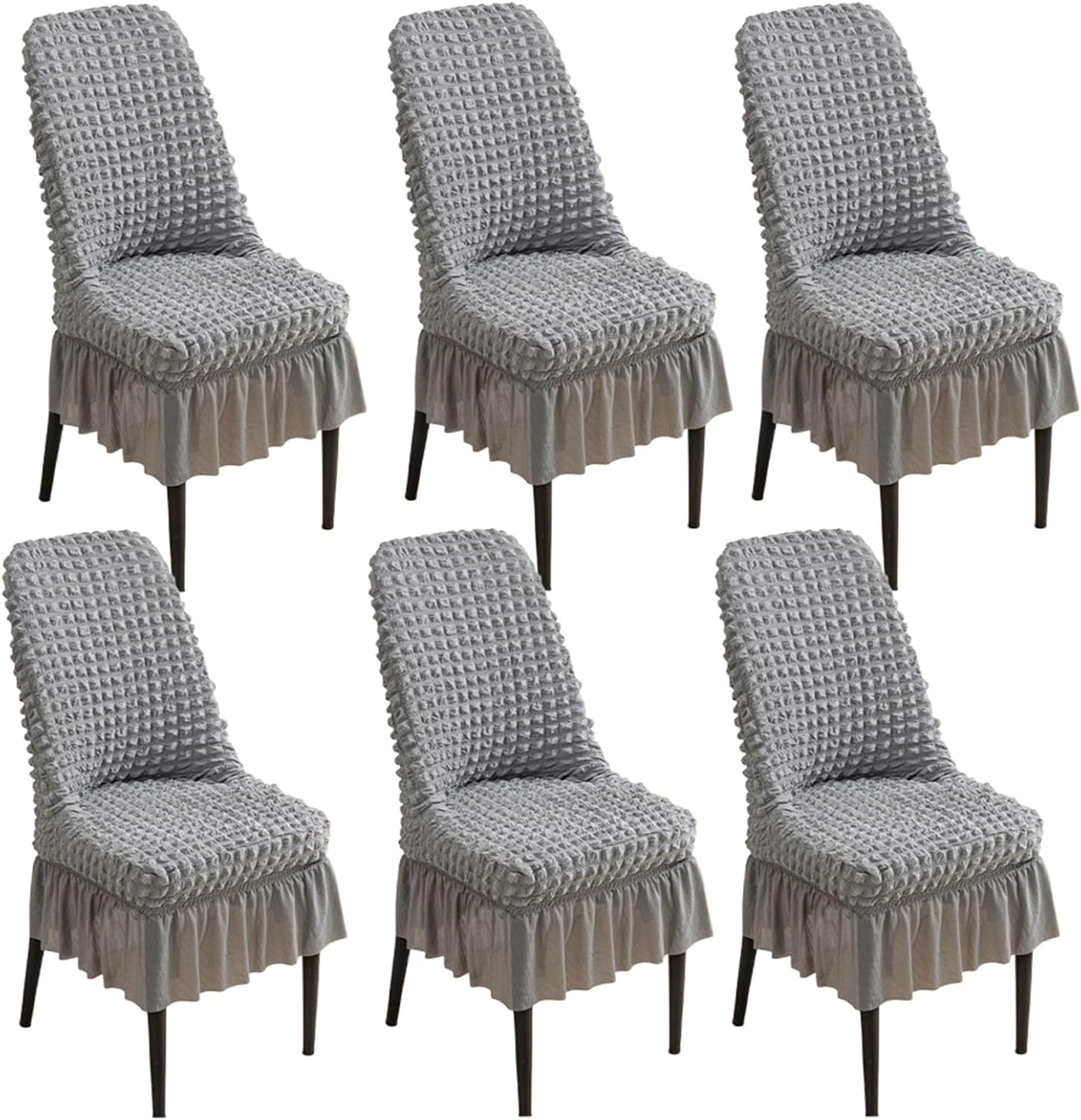 - Please Note:Just a Cover ! No Chair !- Material: Polyester- Suitable Size:This dining room chairs covers fit most curved back chairs,accent chairs.Our curved back chairs fit:Back height: 40-48CMSeat depth: 40-46CMSeat width: 40-46CMPackage Contents:6 x Set of Chair Cover (Chair Not Included)Kind Tips:1.Please measure your armchairs before choosing our chair covers.Please allow slight measurement errors due to manual measurement.2.Due to the difference in light and display,the color may be slightly different from the picture and the product.3.If you have any questions,please contact us via email and we will be happy to assist you.