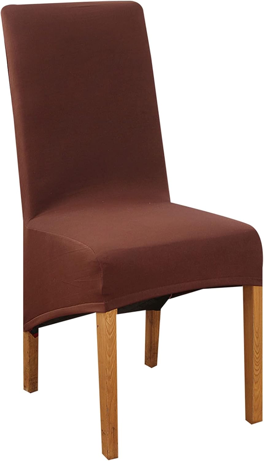 Product Description This stylish chair cover is made from High Quality Fabric, giving your chair a new upholstery, easy to install and remove and will give your chair a New Look. Features: - Made from 94% polyester and 6% spandex fabric soft to the touch and skin-friendly, durable, - The all-round elastic provides a clean, smooth look that is easy to put on and Stays In Place. - Made from stretch fabric, it fits the chair well, wraps in place and is less likely to slide and wrinkle. - The Material of the chair cover is stretchy and does not stretch easily and fits many Sizes of chairs. - Perfect For hotel wedding party conference celebration ceremony restaurant Christmas birthday decoration etc. - Give your chairs a new decoration. Protects chairs from dents, scratches and stains. Suitable Chair Size: Chair back height:55-66m/21-26in Width of seat back:38-42cm/15-16in Seat width:38-48cm/15-19in Seat length:38-42cm/15-16in Back leg length:25-30cm/9-12in Package includes: 2/4/6/8 piece chair covers (chairs not included) Please note: Measured by hand, please allow 1-3cm error. There may be some wrinkles on the surface due to folding and shipping. They will disappear after a few hours of use. There may be slight colour differences due to light and screens. Always wash beFore first use, especially with dark coloured chair covers.