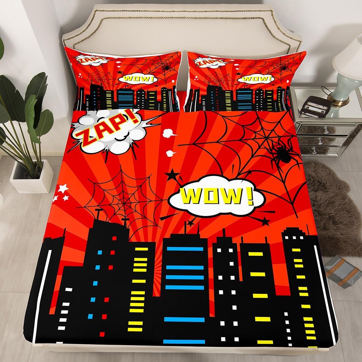 Package Include:fitted sheet,Pillowcase;Our high quality designs match any decor ; High-end Fitted Sheet Set Pattern Bedding Set, simply decorating your rooms any time you want, bringing you fresh feel for year round use; Long-lasting: Made from 100% polyester microfiber, the sheet set offers long-lasting strength, anatural resistance to shrinking and a noticeably soft hand feel; Size Information:; Twin size :2pcs Fitted Sheet set, 1 Fitted Sheet 39"W x 75"L x 16"H,99 x 190 x 41cm , 1 pillowcase 20" x 30",51x75cm ; Full size: 3pcs Fitted Sheet set, 1 Fitted Sheet 54"W x 75"L x 16"H,137 x 191x 41cm , 2 Pillowcases 20" x 30",51 x 75cm ; Queen size: 3pcs Fitted Sheet set, 1 Fitted Sheet 60"W x 80"L x 16"H,152 x 203x 41cm , 2 Pillowcase 20" x 30",51 x 75cm;Personalize your bedroom: Beautiful design and colorful print, makes your bedroom unique and brings you a wonderful dream; Washing instructions Machine wash separately in cold water,hang dry, do not bleach;Occasion:The soft Fitted Sheet bedding sets designed for Children ,Adult, Men, Women, Teens; This Fitted Sheet set is also suitable for full seasons, Spring, Summer, Autumn and Winter; After Service : We are dedicated to ensuring you have an excellent experience, from the moment you place your order until you sleep on your new bedding the first time;