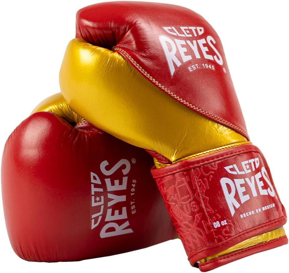Step into the ring with confidence with CLETO REYES High Precision Boxing Gloves. Ideal for both men and women, these leather boxing gloves provide optimal support for your punches with moldable long-lasting latex foam padding. These men's and ladies' boxing gloves come with an anatomically designed shape that fits like a glove. The innovative design has a shorter cuff which makes the glove lighter and an ergonomic hand placement gives you the security your hands need for hard training. Look no further for high performance male and female boxing gloves. With a water resistant lining, these gloves will keep your hands dry, while the attached thumb ensures your hands stay safe and your thumb stays intact. Those searching for gloves for punching bag workouts will love the wrist support, which keeps your hand from bending during those heavy hits. Whether you're looking for professional boxing gloves for training, MMA training gloves, or gloves for contact sports, CLETO REYES has you covered with their High Precision Boxing Gloves. Handmade in Mexico, these gloves are designed with the finest craftsmanship. The hook and loop closure provides a faster and firmer fit with a comfortable easy on-off strong strap, so you can focus on your workout without worrying about your gloves slipping. Upgrade your training gear with these boxing gloves for women and men. Get your hands on CLETO REYES High Precision Boxing Gloves and unleash the fighter within you!