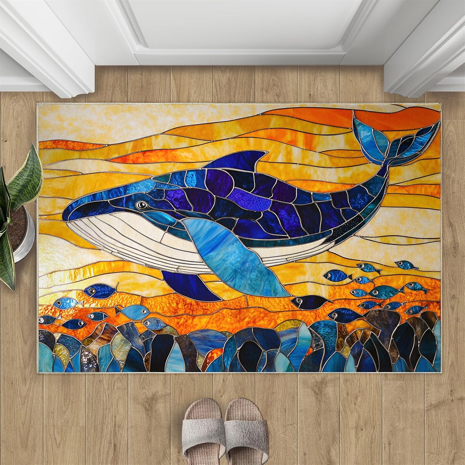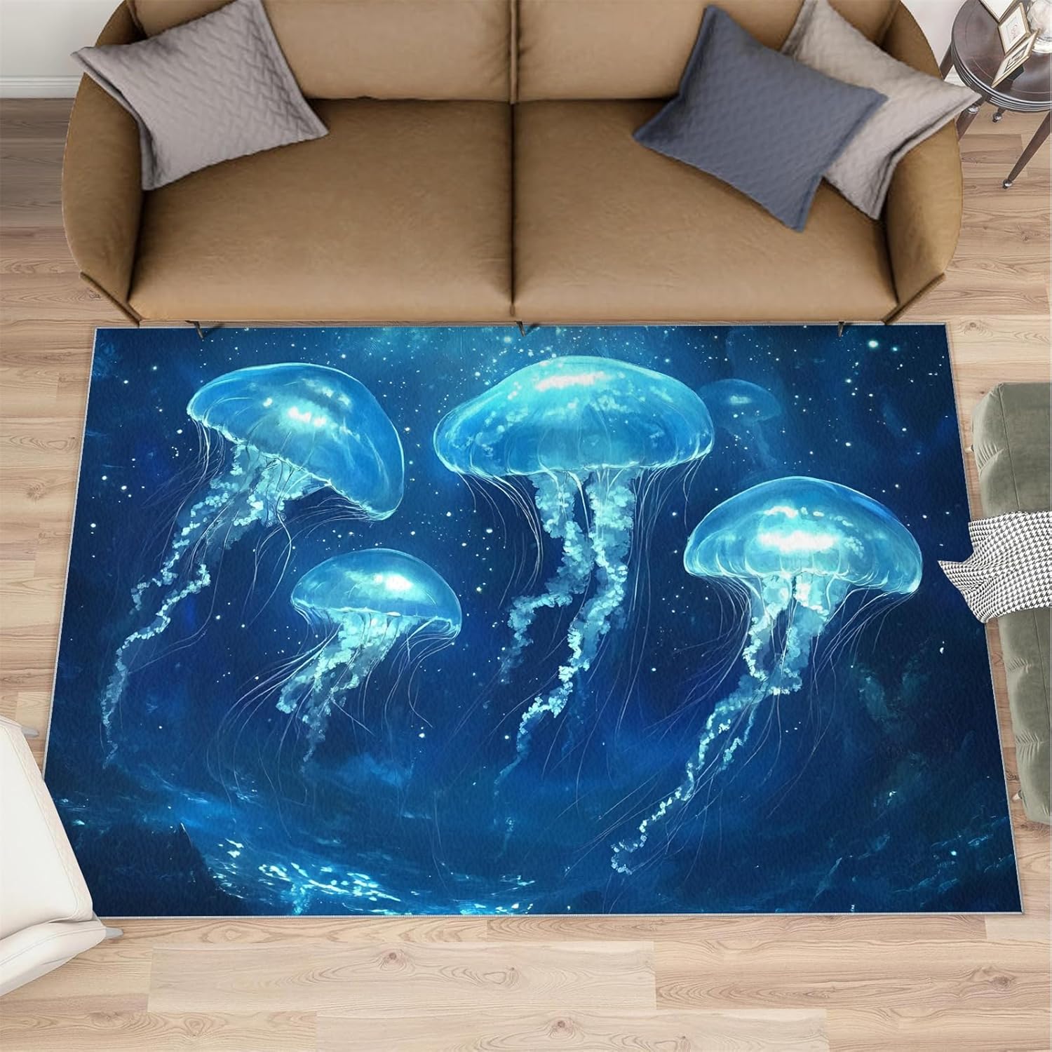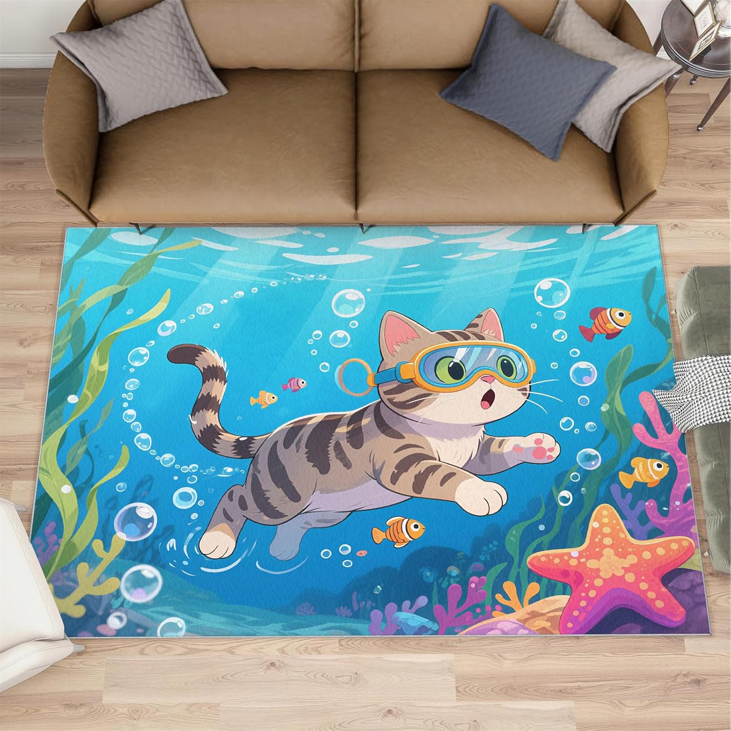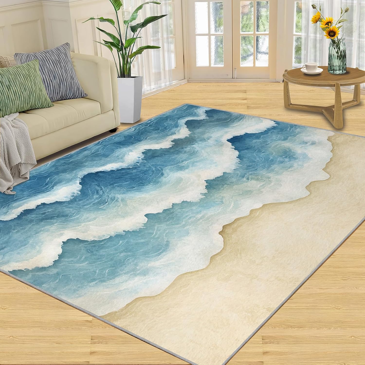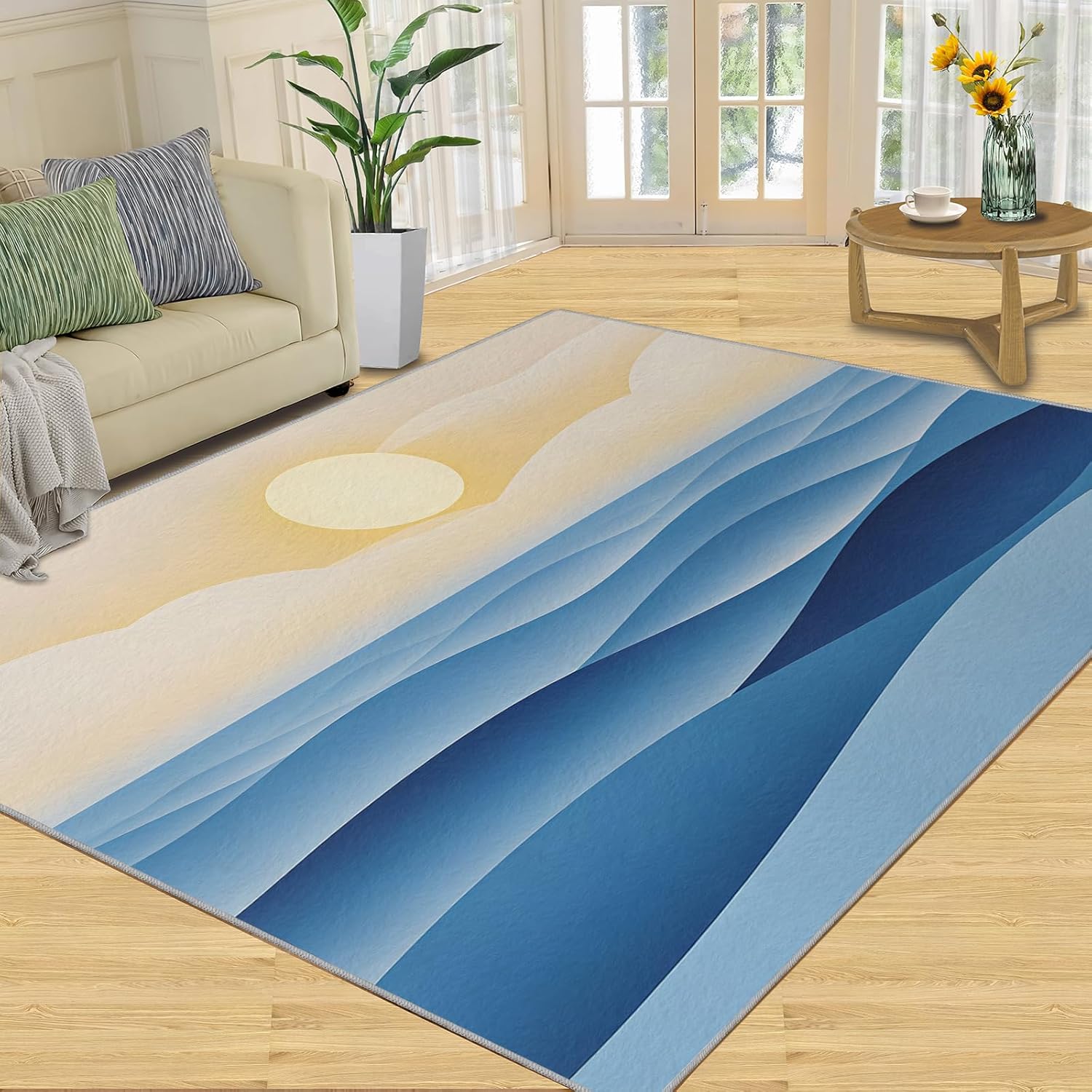 Printed rug add color to your life, will be the centerpiece of any spaceFeatures:Exclusive DesignArea Rugs adopt digitally printed and heattransferred technology to achieve clear patterns, bright colors and long-lasting effects. Print rug has a trendy style and a unique pattern to bring any room aliveSoft SurfaceArea rugs are made of natural flannel fabric, super soft to the touch.Soft low pile rugs can soothes tired feet, and reduces the noise when walking and creates a quiet environment for youNon Slip BackingNon slip rug features a reliable anti-slip backing, effectively preventing slips and trips. This ensures a safer environment for your children and pets to play. Ideal for indoor high-traffic areas, providing peace of mind and safety for daily useReinforced EdgeOur washable rug has high-density stitched edges that make him stronger and not easy to loose and can make area rugs last longerWide UseWhether placed in living room, dining room, kitchen, dorm, porch, office, kids' room, or bedrooms, this rug effortlessly complements your home decorMachine WashableRug is machine washable. It is recommended to wash them in cold water. If small dust and dirt on the surface, you can clean it with a rag, broom, or vacuum cleaner. Avoid using bleach and high-temperature ironingPile Height: 0.31inchMaterial : Natural flannel fabric,Sponge layer,Non slip dots bottomSize: 4x5 ft /120x150 cmWeight: 4.10 poundsPackage List:Area rug × 1Please Note:1.Due to different monitors, the actual color may differ slightly from the picture, please refer to the actual product2.Due to different measuring tools, there may be a deviation of ±2%