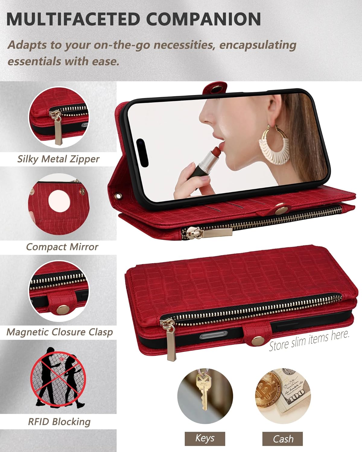 | Additional Features | Card Slot, Kickstand, RFID Blocking, Wireless Charging Compatible |