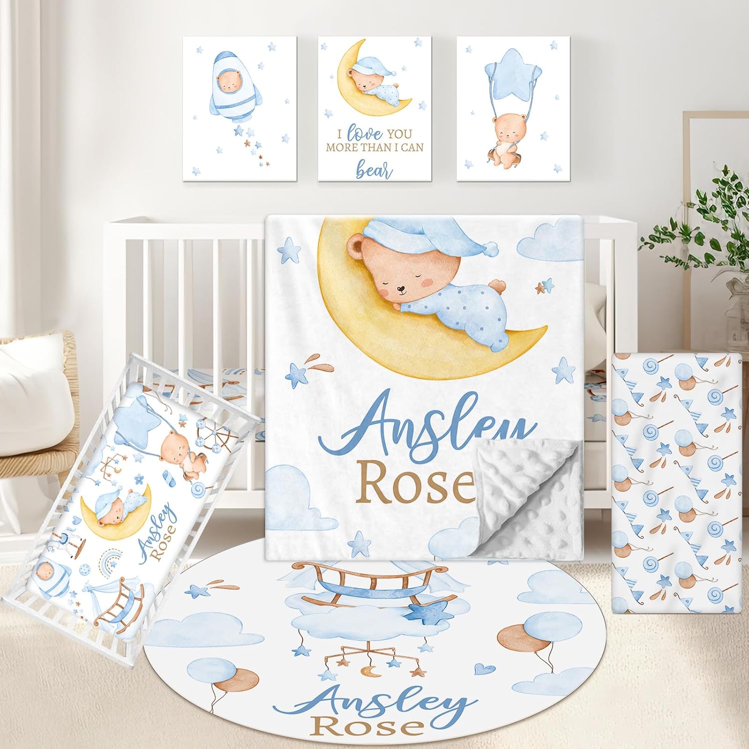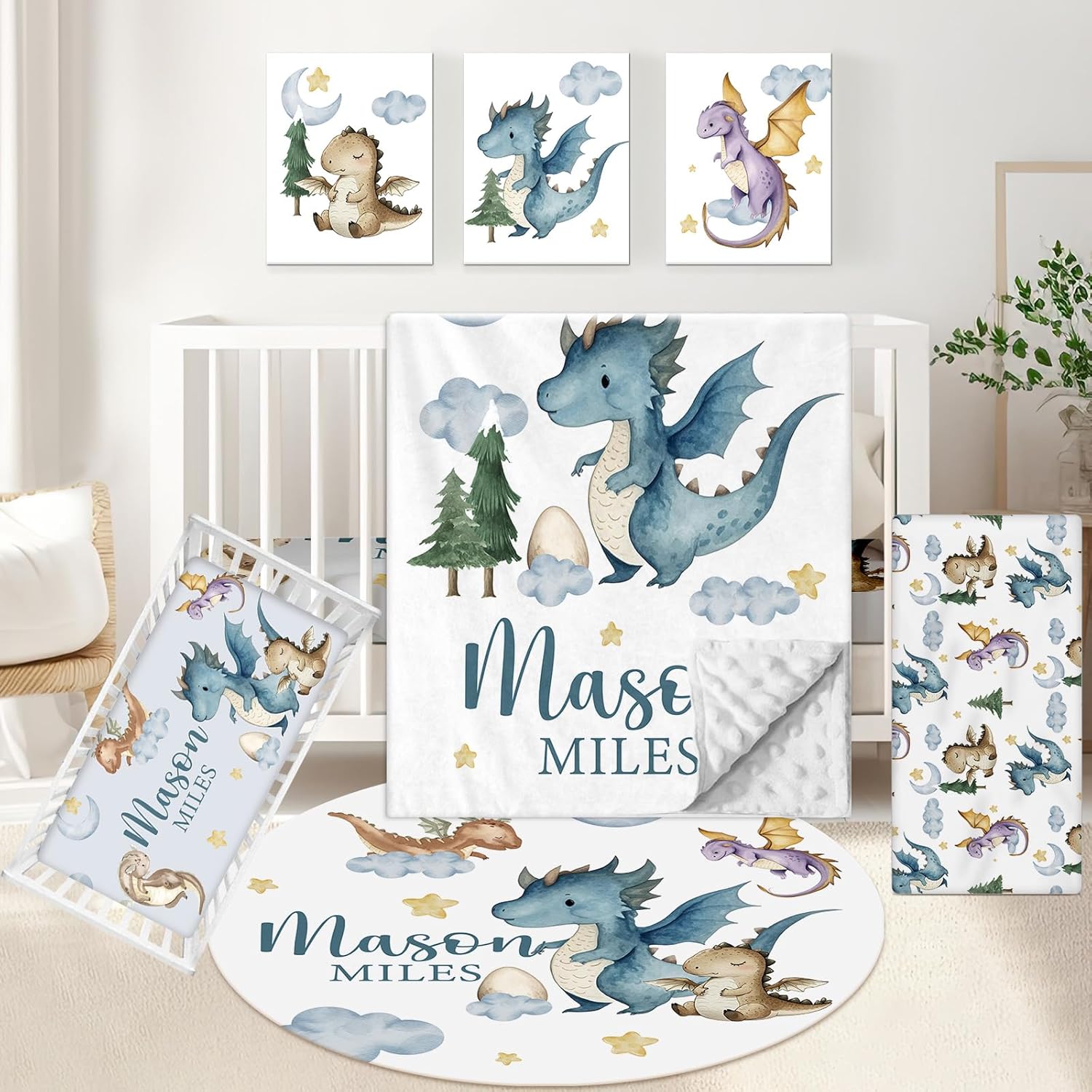 | Included Components | Baby Rug, Changing Pad Cover, Crib Fitted Sheet, Dotted Backing Blanket, Wall Art |