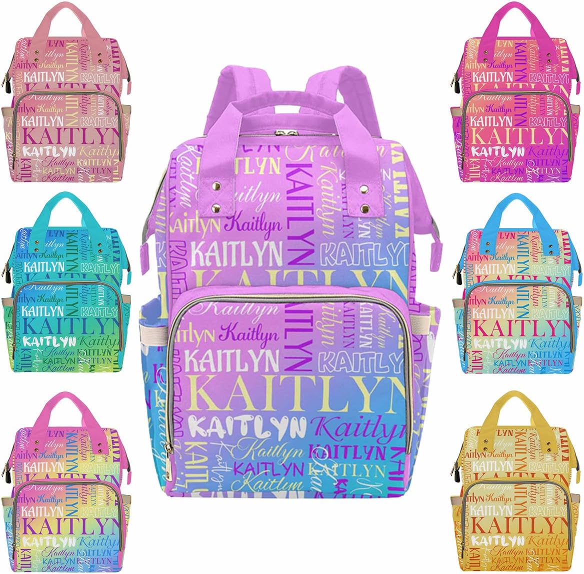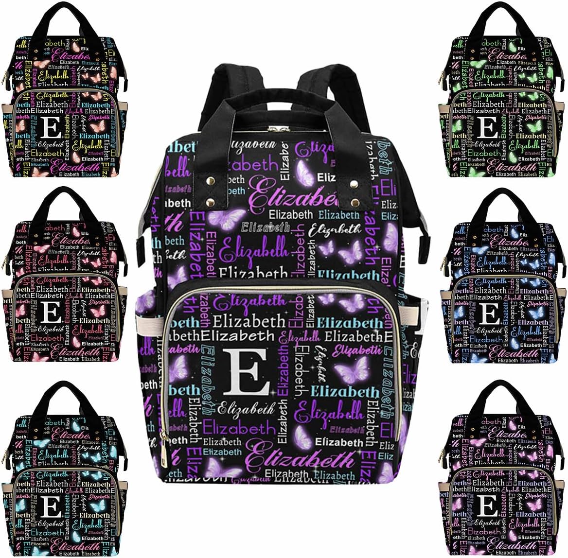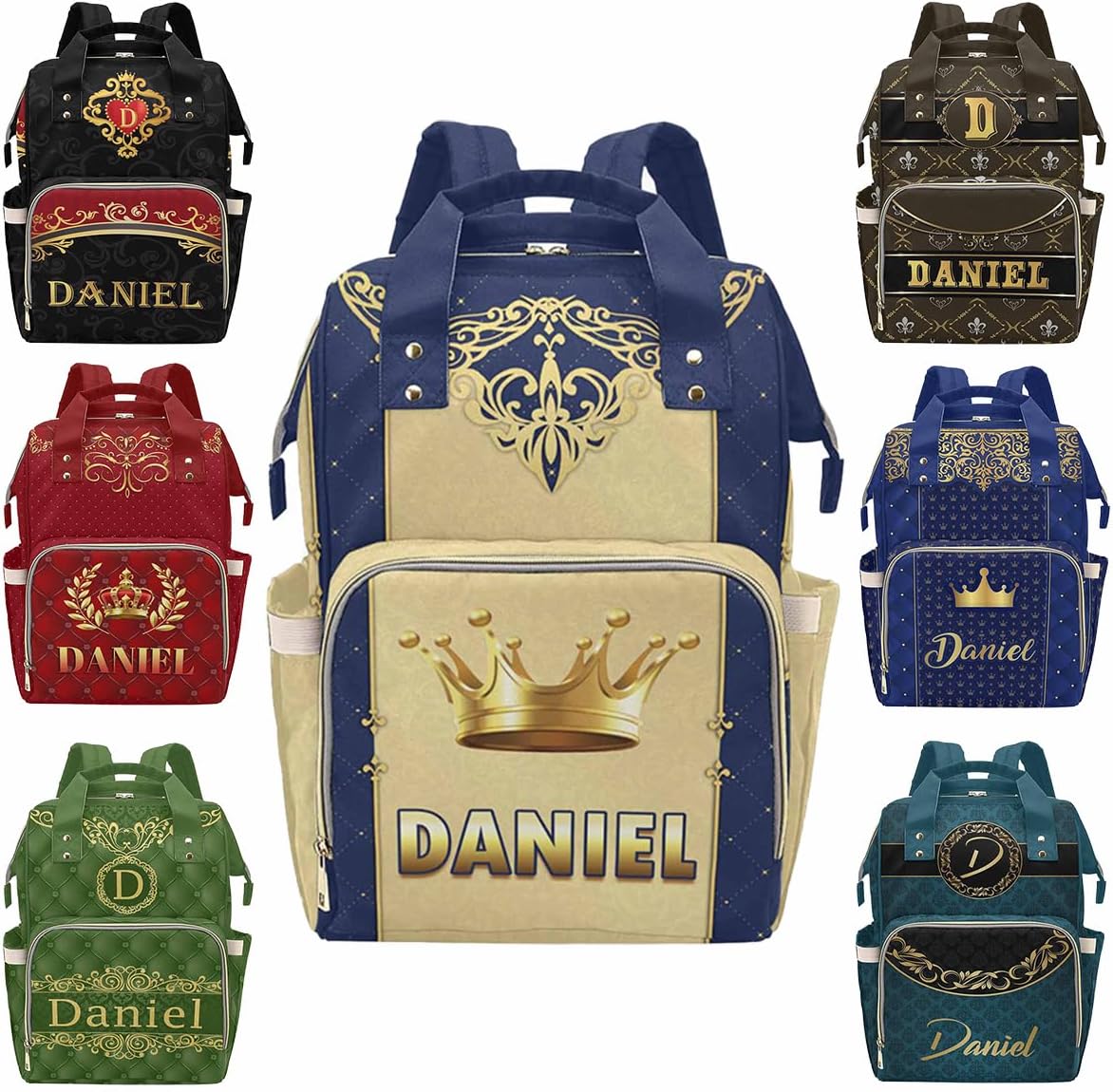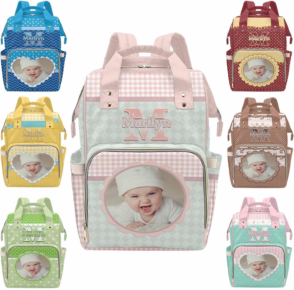 This Personalized Name Diaper Bag offers plenty of storage to fit all of your mom or dad essentials for your baby girl or boy!MaterialMade from waterproof nylon.SizeMeasures approximately 10.83"(L) x 6.69"(W) x 15"(H) x 3.1"Parts structureOne main capacity pocket, 2 side pockets, 1 front zipper pocket, multi-pocket design, side zipper, easy to take away, spacious and separate bottle design area, easy to use.FeatureMulti Color & DesignCute elements, so you can have one more decoration to decorate your holiday.MultifunctionA mesh pocket featured. Padded back and adjustable shoulder straps for ultra comfort and stability. Multi function backpaks are suitable for many occasions. Zipper closure allows it easy to open and close.Suitable Different OccasionsThe custom diaper bag for baby boy girl is fit for many occasions, such as travel, shopping, hiking, camping, work, going out etc.Perfect GiftYou can send the custom diaper bag to your friends who is a new mom, dad. Or send it to your sister, brother, husband, wife, colleague. As a festival holiday gift present on mother's day, father's day, birthday etc.Start Your Customization1. Choose The Style You Need2. Click The "Customize Now" Button3. Upload Any Name