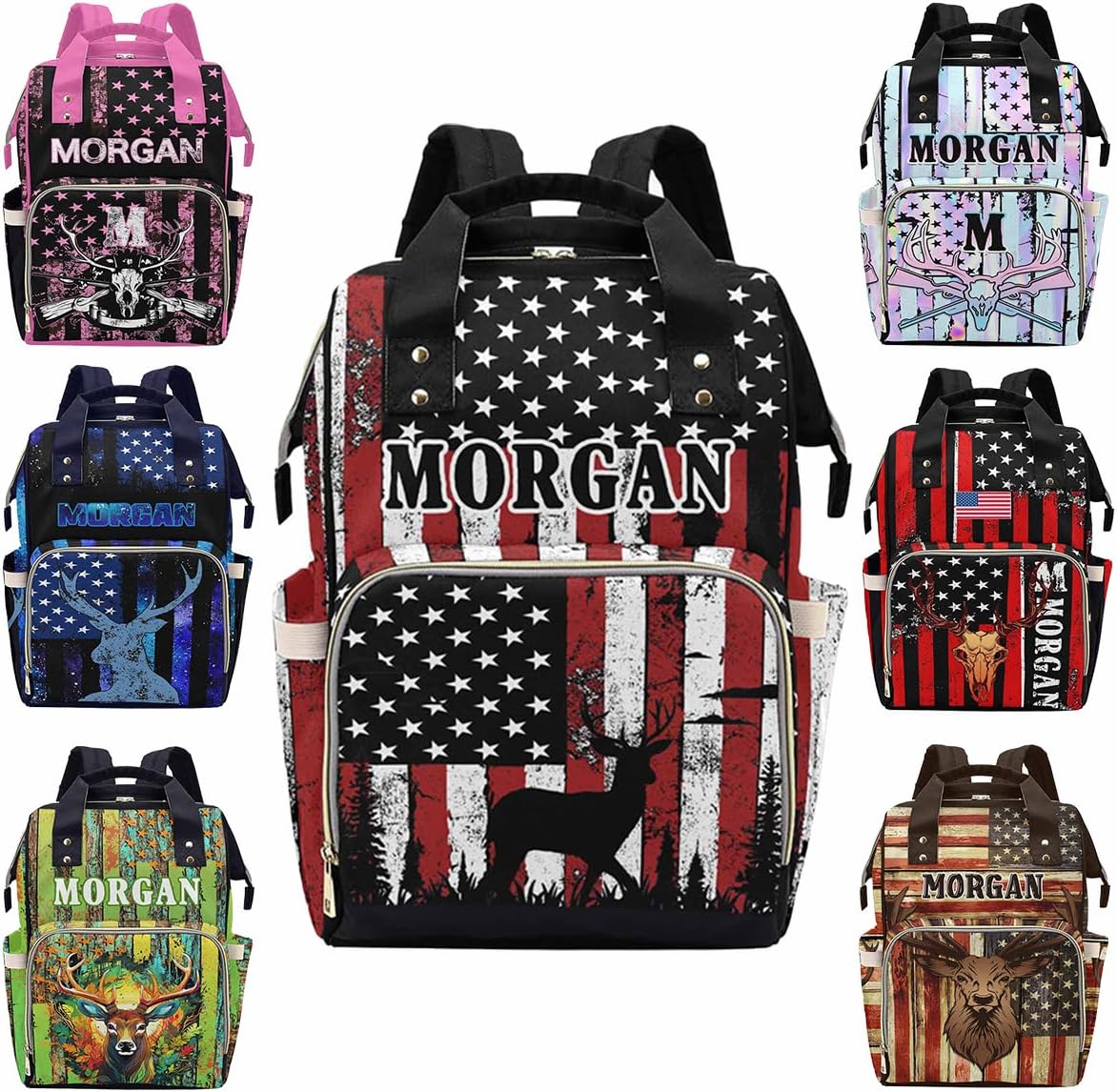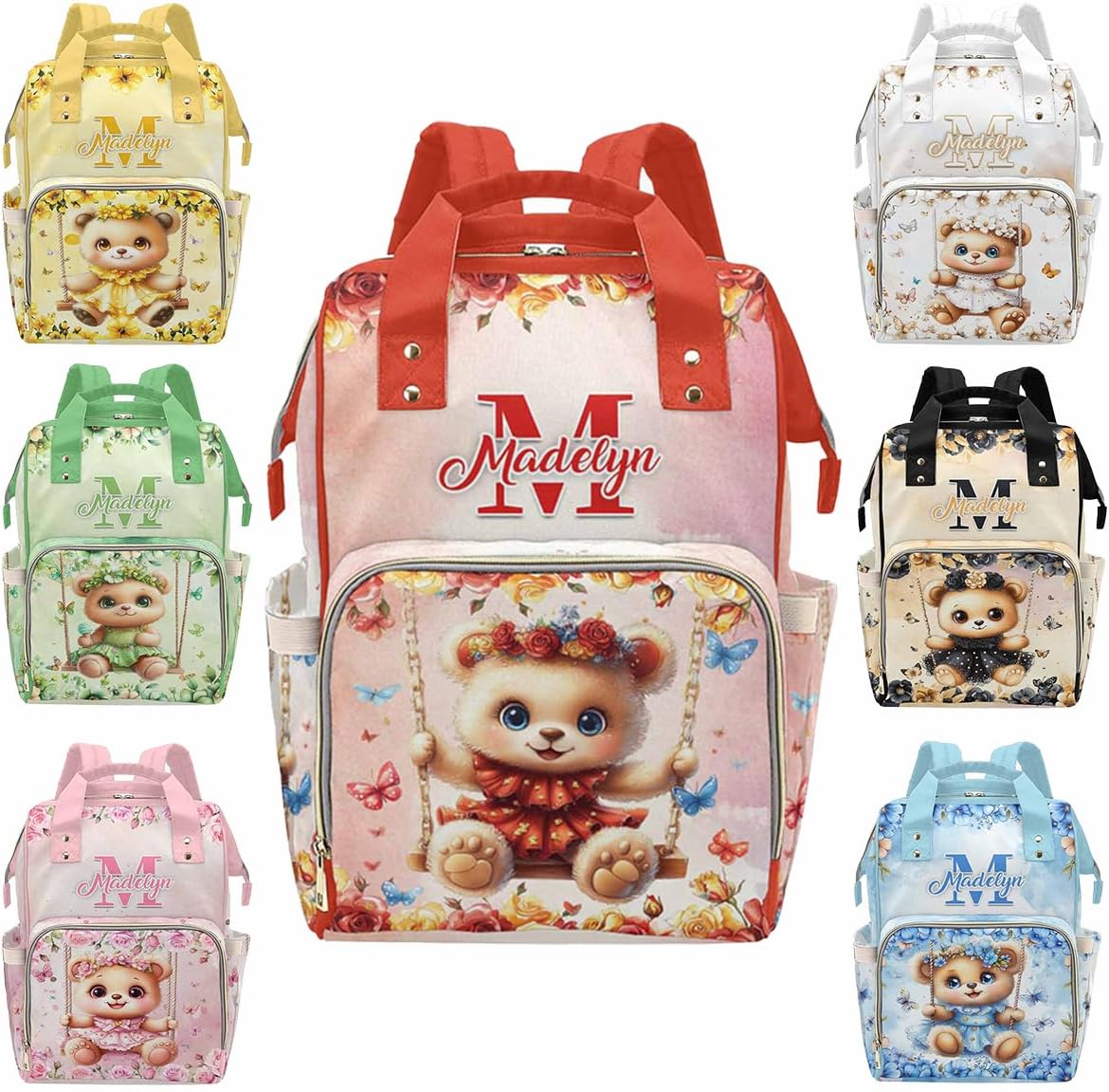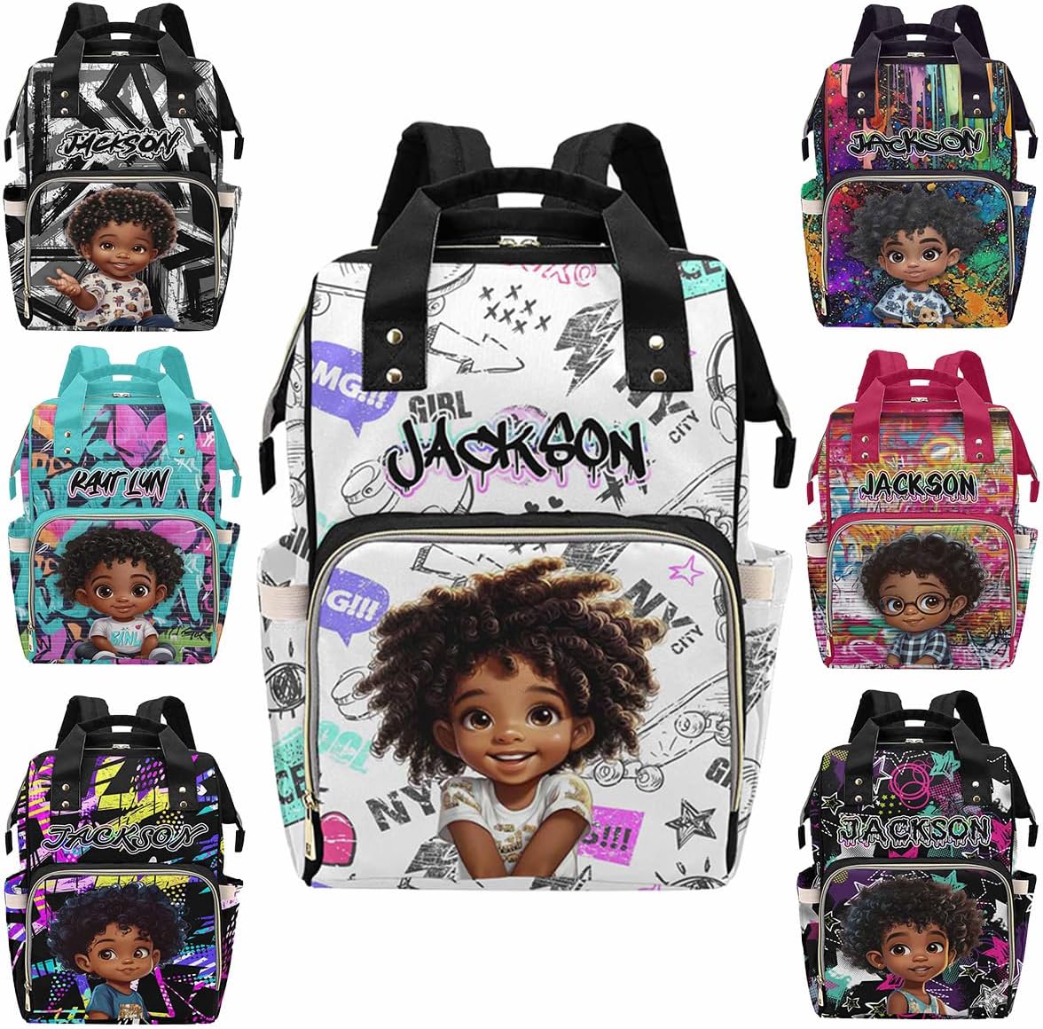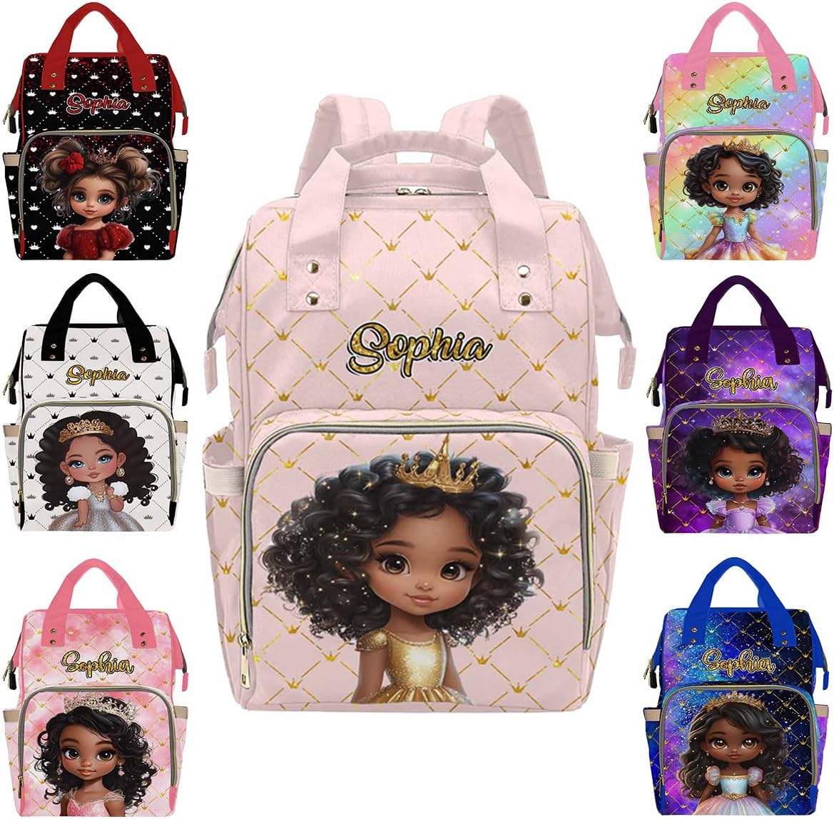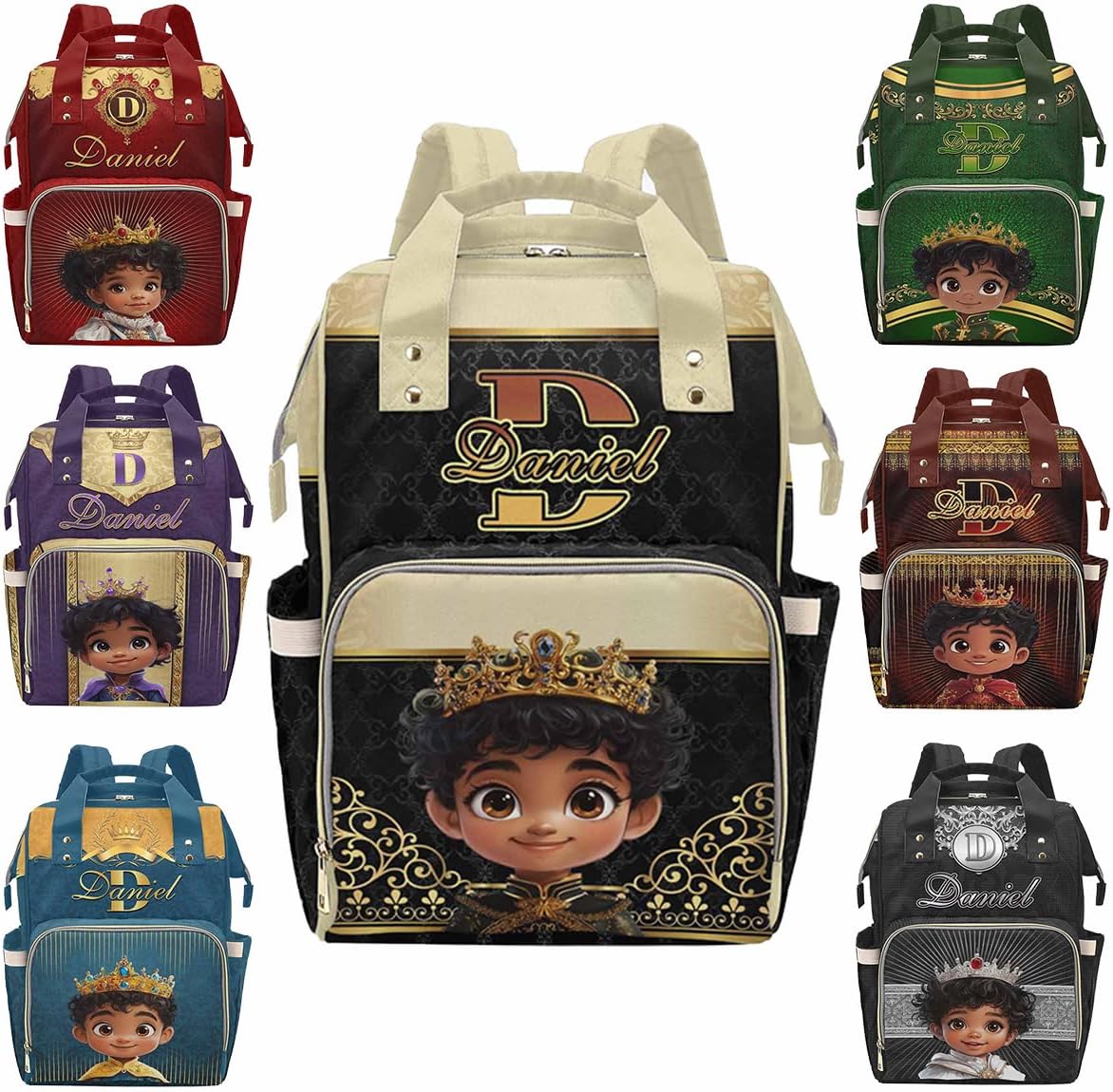 This Personalized Name Diaper Bag offers plenty of storage to fit all of your mom or dad essentials for your baby girl or boy!MaterialMade from waterproof nylon.SizeMeasures approximately 10.83"(L) x 6.69"(W) x 15"(H) x 3.1"Parts structureOne main capacity pocket, 2 side pockets, 1 front zipper pocket, multi-pocket design, side zipper, easy to take away, spacious and separate bottle design area, easy to use.FeatureMulti Color & DesignCute elements, so you can have one more decoration to decorate your holiday.MultifunctionA mesh pocket featured. Padded back and adjustable shoulder straps for ultra comfort and stability. Multi function backpaks are suitable for many occasions. Zipper closure allows it easy to open and close.Suitable Different OccasionsThe custom diaper bag for baby boy girl is fit for many occasions, such as travel, shopping, hiking, camping, work, going out etc.Perfect GiftYou can send the custom diaper bag to your friends who is a new mom, dad. Or send it to your sister, brother, husband, wife, colleague. As a festival holiday gift present on mother's day, father's day, birthday etc.Start Your Customization1. Choose The Style You Need2. Click The "Customize Now" Button3. Upload Any Name