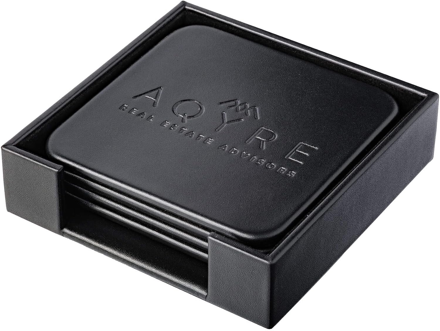 Classic Black Leather Square Coaster Set with Holder