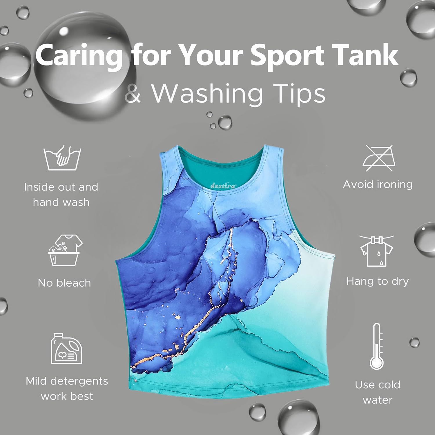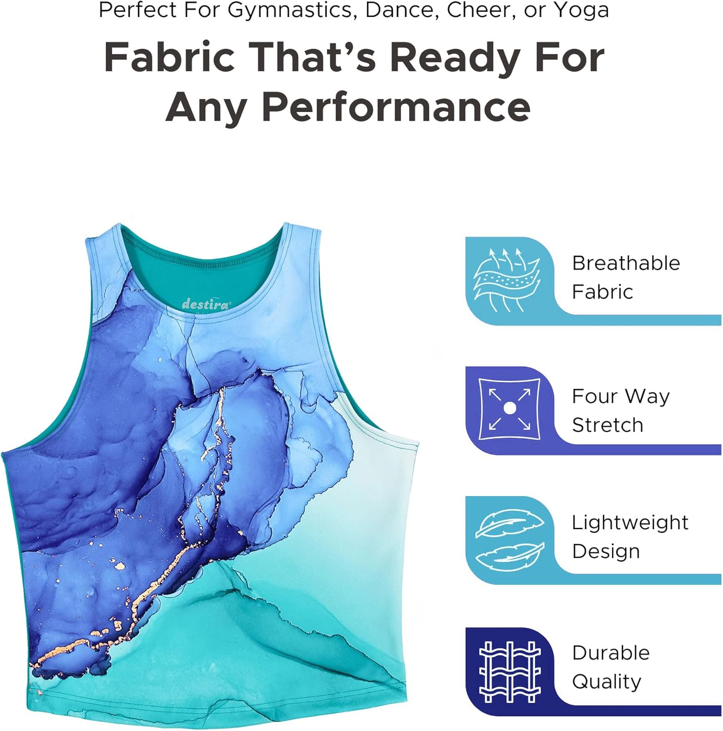 We've taken our popular athletic tank tops and made them even better! Our new crop-top silhouette is available in a range of classic neutrals and fun, vibrant colors and patterns. Hand wash inside out in cold water using a mild detergent and hang to dry. Do not use granular detergent, fabric softener, or bleach. Do not iron. Jazz, volleyball, hip hop, acro? YEP! WeÍve got your perfect fitting tank top so you can show off where you want, whenever you want. No matter what your preferred activity is, the Destira Crop Tank can handle it. Our buttery soft, elasticated material won't pinch or squish. Perfect for gymnastics, tumbling, cheer, yoga, acrobatics and event or team apparel.
