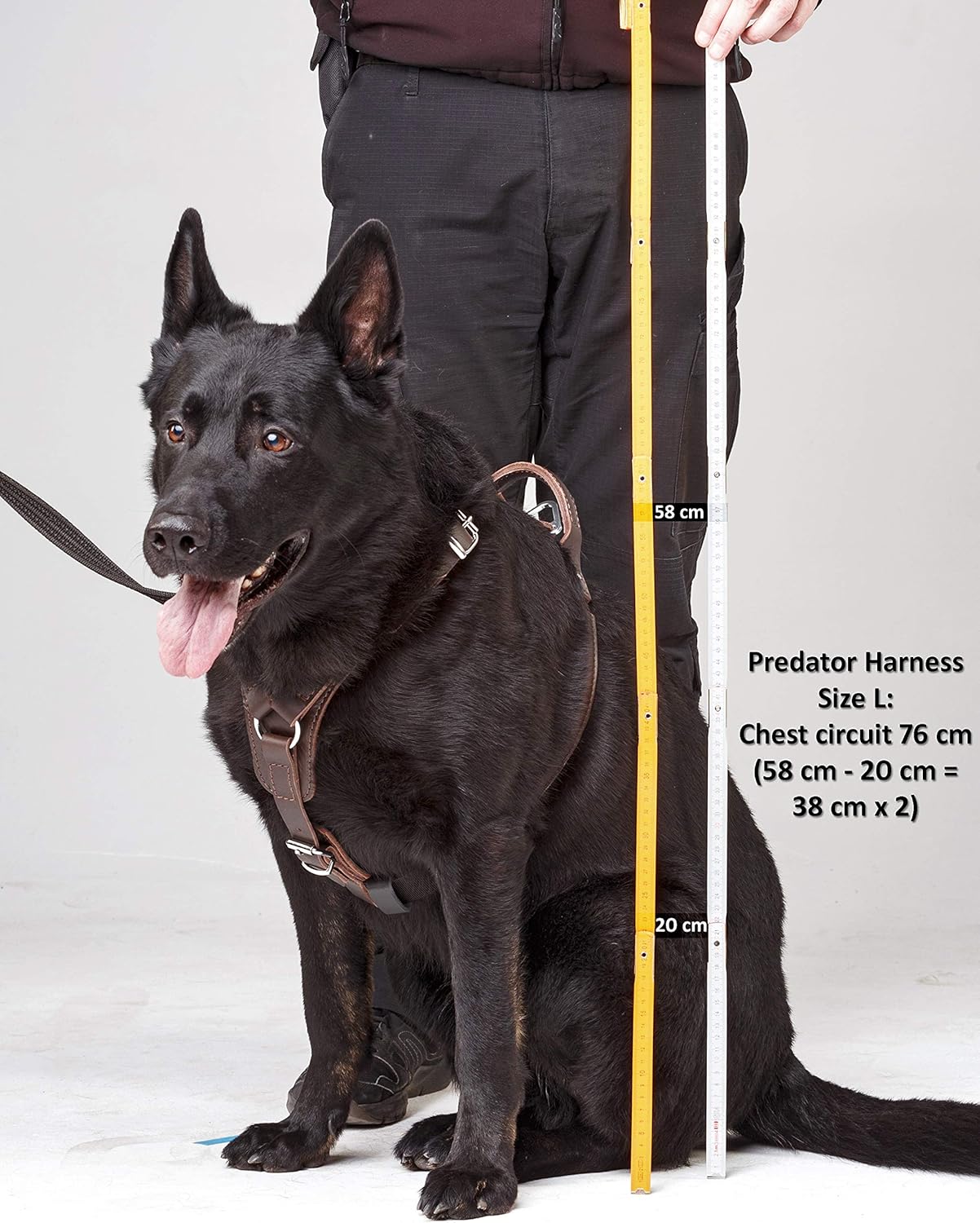 Product Description Dingo Gear Predator harness it’s the product crafted by hand from the great genuine leather. It's worth to mention about the leather haberdashery for a dog, that all of the highest quality products, like the dog harnesses, all leads or collars should be made of natural full grain leather, because only that type of leather gives maximum comfort to the dog. Thanks to the natural leather benefits, your dog can feel comfortable, safe and immune to any allergic syndromes. The last benefit is coming also from the tan process, when you tan the leather with the plant method, it's fully safe to wear for hair and skin because the leather “breathes”. The full grain leather used in Predator dog harness is tanned with plant method, so the dog is protected against any allergic reactions. Moreover you can see that harness for dog is padded, so there is a separation between chromed fittings and the dog's fur. The only exception is the Cobra buckle, which is used by alpinists. This buckle type is certified, Cobra components are safe for the dog and for you. How buckle works? To lock it, you have to push from both sides, until you will hear the sound of locking system. No dog is able to take the harness off when the Cobra buckle is locked. See the benefits for your dog that are coming from wearing leather harness: comfortable wearing, no chafes and hair loosing, safe for skin and fur, adjustable, smart construction that complies the dog needs, natural smell and the great look. The benefits for you: happy dog, durable product, full safety when Cobra buckle locked, you adjust the harness only once, better cooperation with the dog thanks to the handle, easy attaching the leash. Some advice to fit the harness perfectly to the dog: choose the correct size by measuring the dog's chest circumference. Between 60 and 75 cm, choose M size. For 75 - 90 cm Choose L size. For 90 - 105 cm choose XL size. All the other straps are adjustable. Once adjusted, after the first try, can stay forever, because the only one belt is important when putting it on or taking it off and that’s the chest belt with Cobra buckle, which you just lock or release. The most working part of this dog harness is breastplate, so to make sure that the dog won't be sweat and to prevent chafing effects, we decided to give the special padding. This lining is made of felt, which guarantees amortization and is simple to clean from hair also. This felt lining has to be a slightly slippery, because the harness breastplace is moving during the dog's activities. All straps are additionally secured with the loops. Predator harness for dog is crafted by hand in Poland. For more details please scroll down the page. Set Contains: The Predator harness for dog