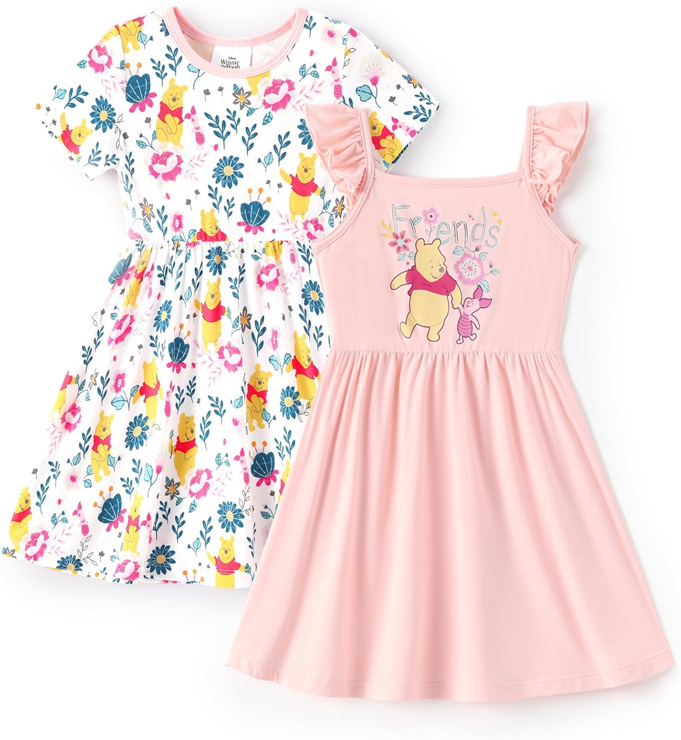 Charming & Unique 2-Pack Design: This officially licensed Disney Princess Collection set delivers double the style and royal adventure!The first dress features a sunny yellow ruffle-strap design with a high-resolution graphic showcasing beloved princesses like Ariel, Belle, and Tiana—perfect for channeling inner royal elegance. The second dress is a sweet green short-sleeve A-line style adorned with a playful, all-over floral and princess print. Both silhouettes offer a comfortable fit and twirl-worthy movement, ideal for active little royals who dream of castle journeys and grand adventures. Ultimate Bamboo Viscose Comfort & Durability:Experience the luxury difference of ultra-soft bamboo viscose, a buttery-smooth fabric that is naturally hypoallergenic and breathable. This lightweight, cooling material is exceptionally gentle on sensitive skin, making it the perfect choice for summer heat and everyday wear. Designed for maximum comfort, these dresses are versatile enough for birthday parties, theme park trips, or cozy sleepwear. Machine washable and highly durable for lasting adventures!