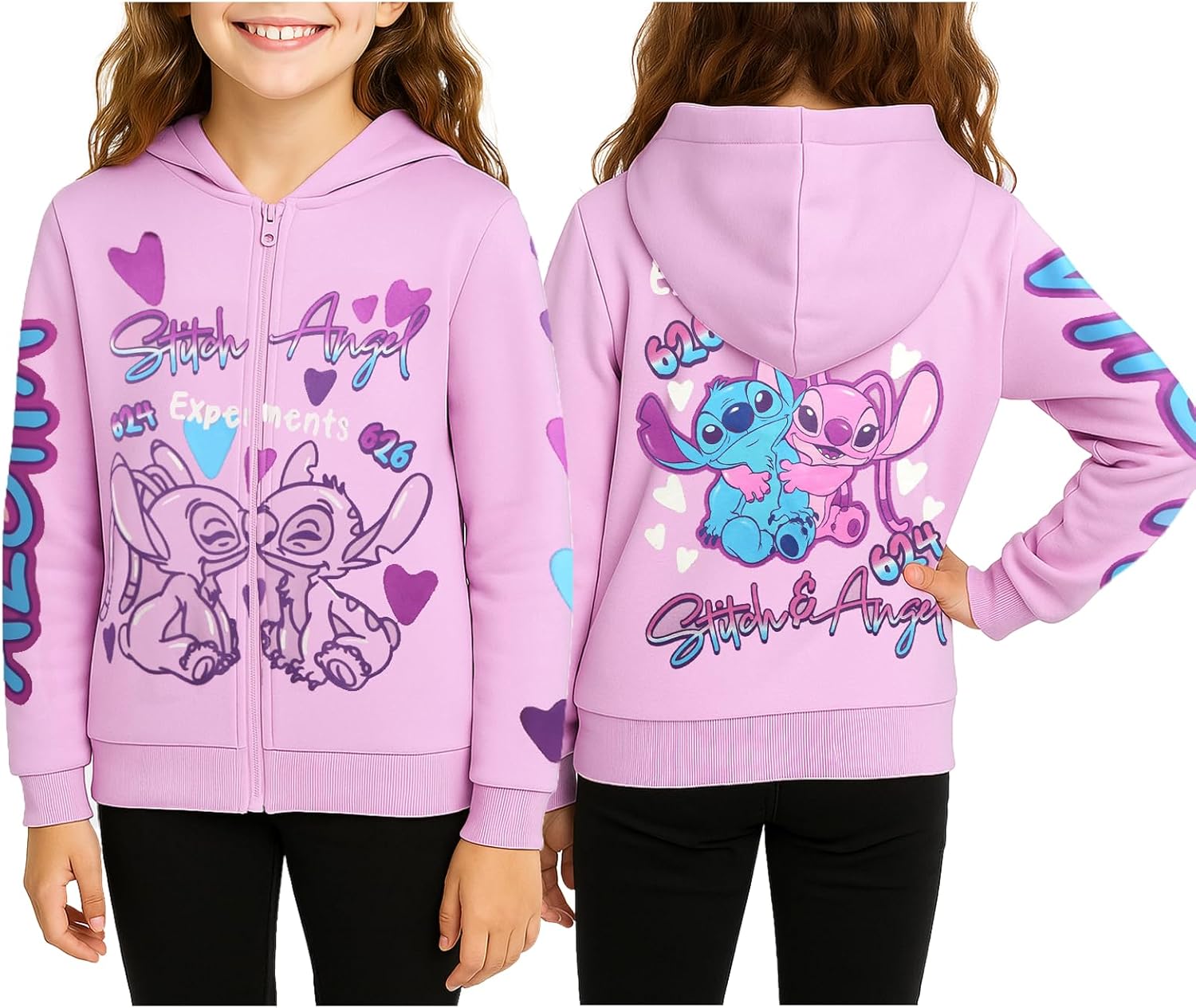 • Durable Zip Up Lilo and Stitch Sweatshirt for Girls 7-8 and 10-12: Made from premium fleece, this zip up hoodie offers lasting comfort for kids clothes girls size 10-12 or 7-8. The secure zipper makes it easy to layer over tees and tanks, and the adorable Lilo and Stitch artwork gives this Lilo and Stitch hoodie for girls a fun, playful vibe that’s always in style.