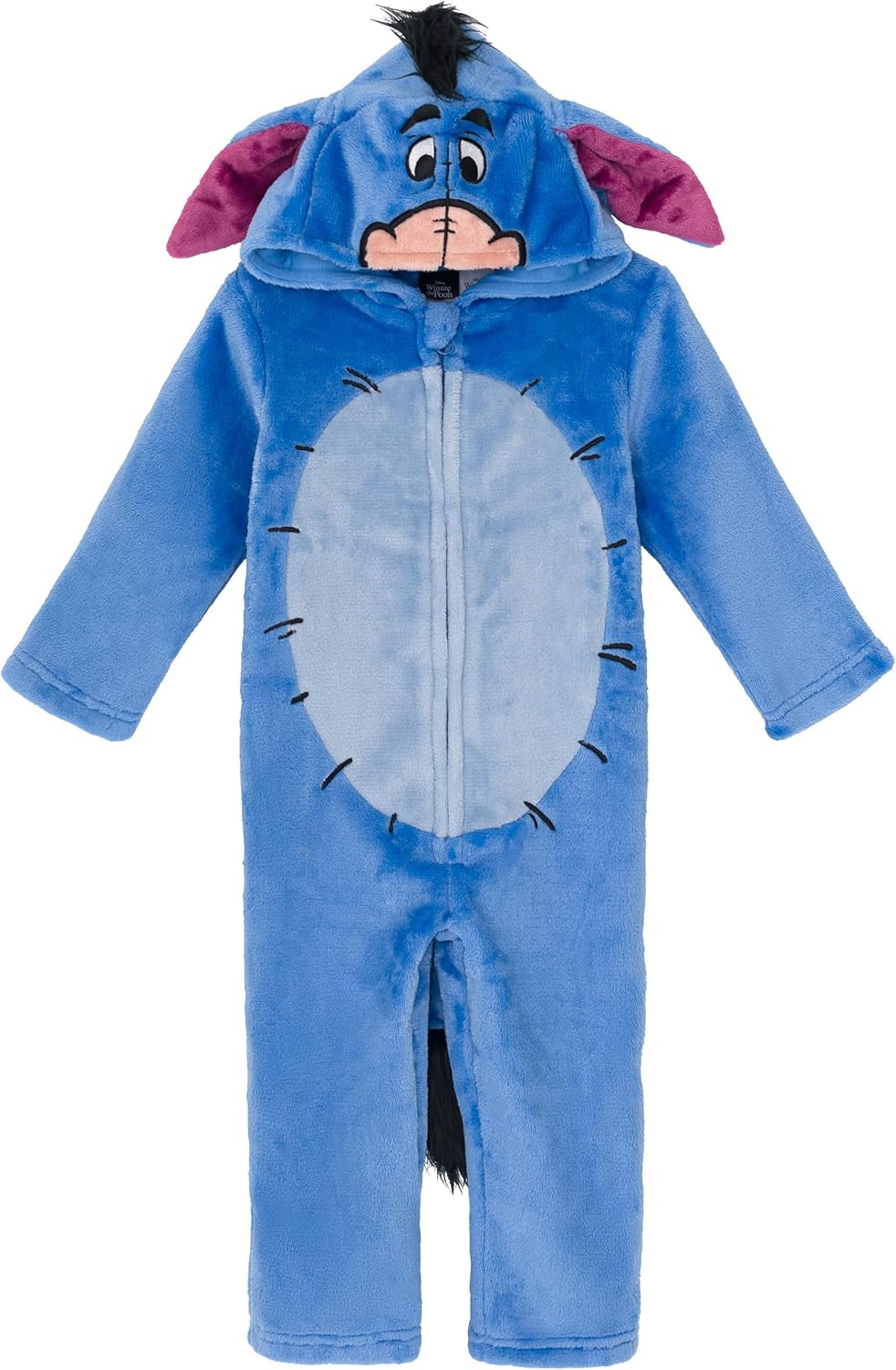 Cozy up in Disney Winnie the Pooh friends style with this boys one-piece coverall costume. Soft 100% polyester flannel fleece feels warm and gentle, while the full zip front makes changes quick and easy. Long sleeves and a lined hood add extra comfort, and the fun character hood details make it perfect for playtime, lounging, and bedtime. Machine washable for simple care.