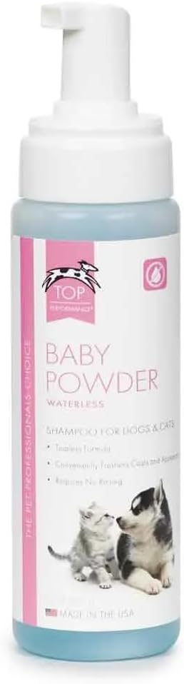Top Quality Performance Dog Grooming Baby Powder Shampoo Conditioner Cologne Mist or Waterless Shampoo Baby Powder shampoos and conditioners are the perfect pairing for professional groomers! Helps prevent and reduce mat and tangles. Our rich conditioning formulas give coats a brilliant sheen and a pleasant long lasting fragrance. Builds body and adds luster with fresh clean scent. Shampoo available in 17 oz, Gallon, 2.5 Gallon, or 5 Gallon. Conditioner available in 17 oz or Gallon. Our waterless shampoo features unique formulation that gently remove dirt and odors. Fresh pet features a mild and pleasant fragrance clings to coat to leave pet smelling fresh. Extra conditioners help loosen stubborn mats, eliminate tangles, provide manageability, and leave a lustrous sheen. No rinsing required! Safe for puppies and kittens over 6 weeks of age. Ready to use 7.1 oz. foam. Waterless Shampoo available in 7.1 oz. Our Baby Powder cologne mist helps keep pet smelling fresh between baths. Just spritz on coats as a finishing touch to grooming and to control odors. Cologne mist available in 8 oz