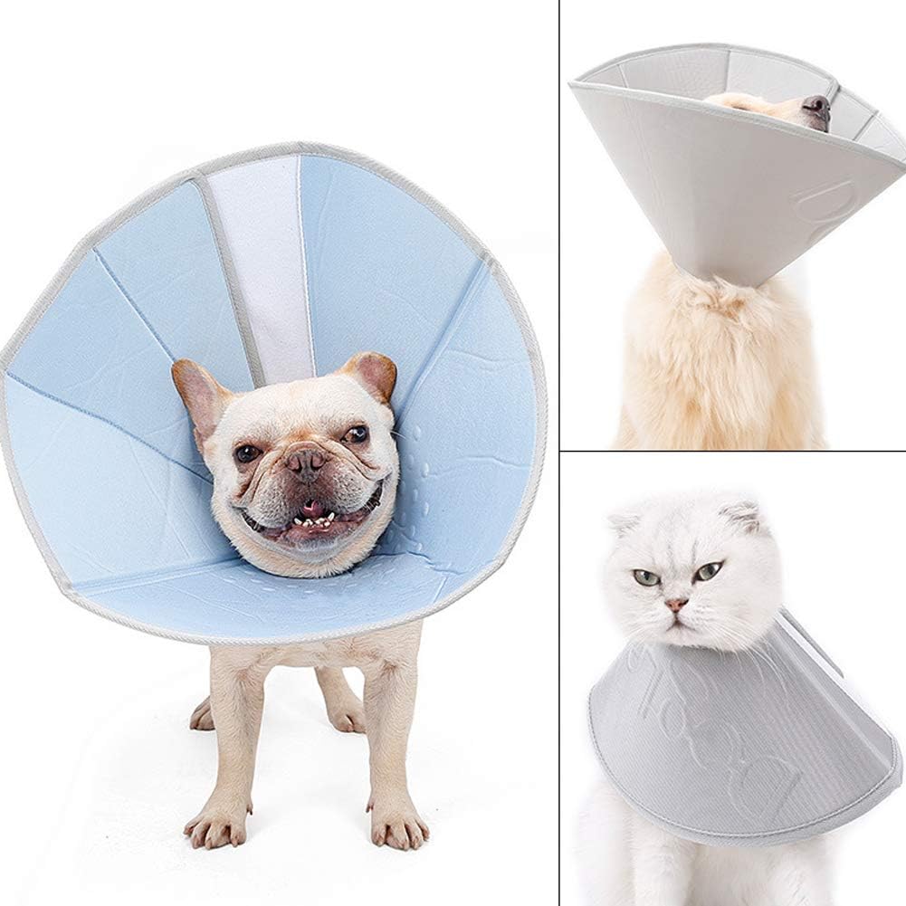 Specifications:Material: EVA and NylonColor: Blue,GreySize:XS: Neck: 4.7"- 6.3" Depth: 5" inch Diameter: 5"-7.5"S: Neck: 6.3"- 7.9" Depth: 6.3" inch Diameter: 7.9"-10.2"M: Neck: 7.9"- 9.8" Depth: 7.9" inch Diameter: 9.8"-12.2"L: Neck: 10.2"- 12.6" Depth: 9.8" inch Diameter: 13.8"-16"XL: Neck: 13"- 16" Depth: 11.8" inch Diameter: 14.2"-17.7"How to properly determine size:To find the right size collar, you will need TWO measurements1.Neck circumference: Use a soft tape measure or piece of string and wrap it snugly around the base of your dog’s neck--snug enough so that you cannot fit any fingers under the measuring tape.2.Depth: The length from the your pet's neck to the snout.If any of the measurements are between two sizes, choose the larger size.Feature:1.Durable and sturdy material make it more safty and practical2.Extended length then similar e-collar, we can ensure it will be long enough to keep pet from licking scratching their wound.3.Massage particles on the surface, comfortable to wear and skin-friendly. 4.Hollowed design making this collar more breathable and lightweight.offering fresh air all the time.Application:1.Anti-Scratch and Bite-resistant,great for recovery from injuries, rashes and post surgery2.Recommended using for beauty and medical care,like keep pet from licking in beauty grooming or bath clean.Package Including1 x pet recovery collar