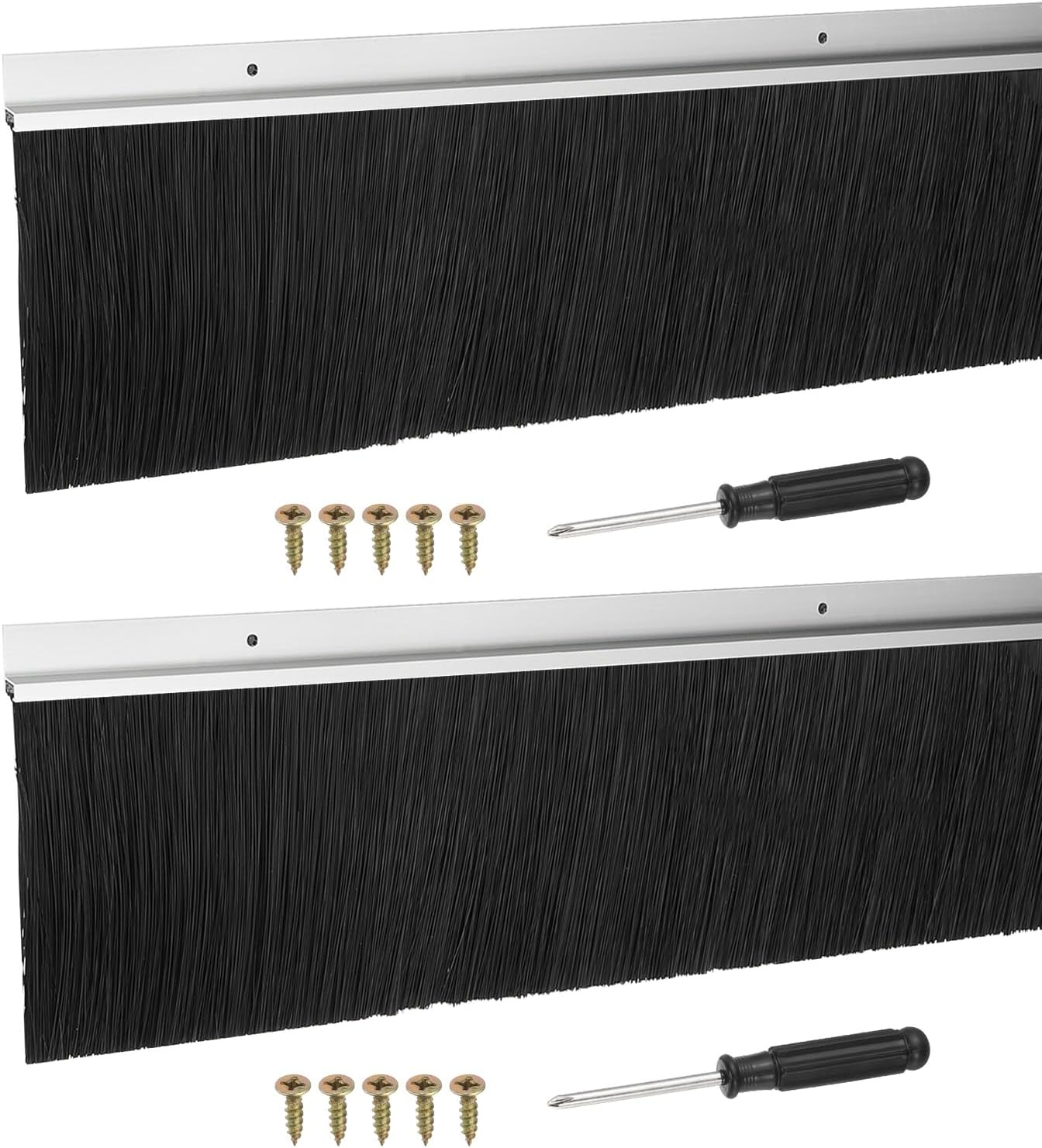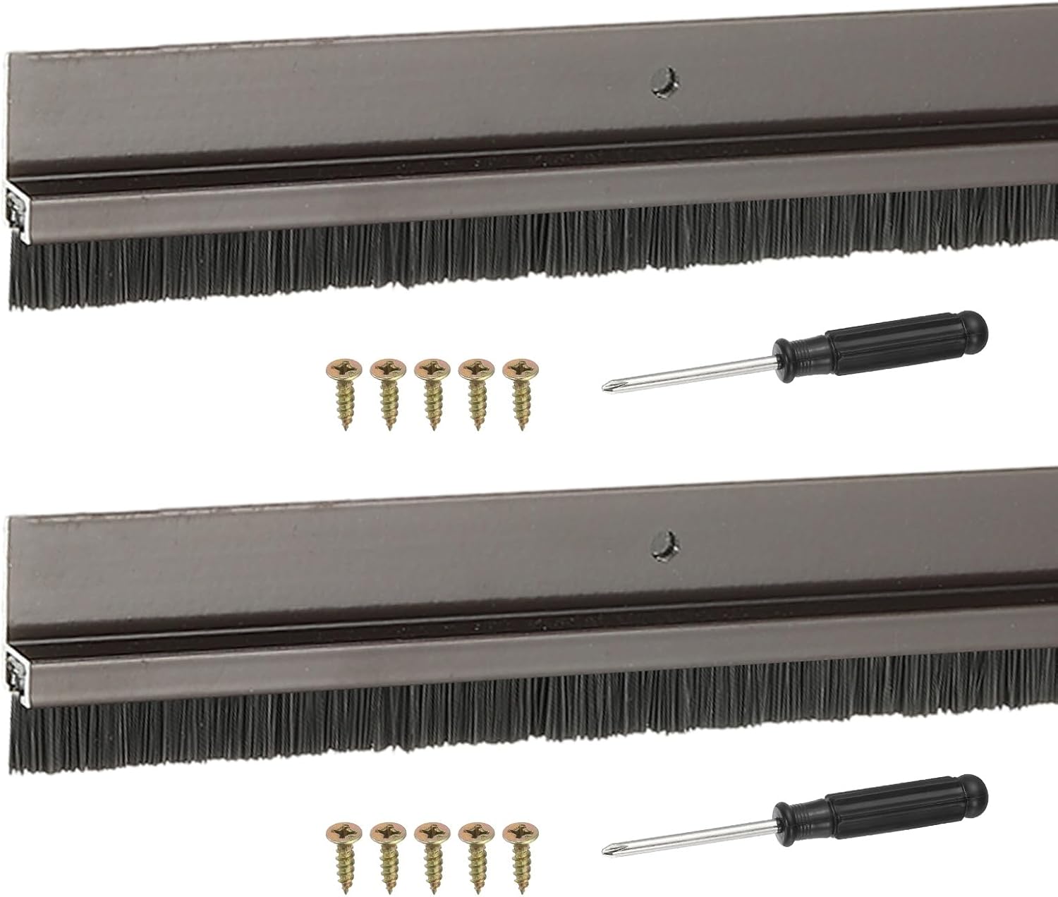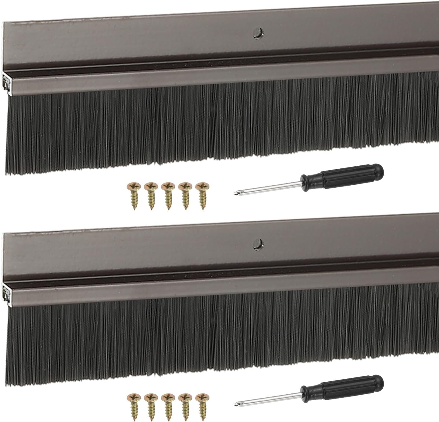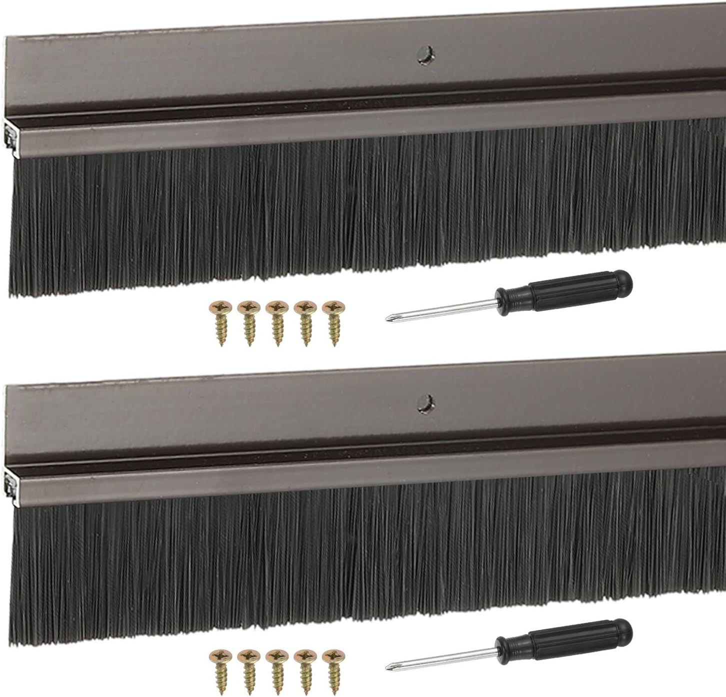 DURABLE MATERIALOur door sweep brush is made with sturdy aluminum alloy holder and tight PP bristles, it is rust-resistant, wear-resistant, flexible, and resistant to shedding and deformation. The adhesive backing ensures a secure and long-lasting attachment.MULTI APPLICATIONWidely used for sealing door and window gaps, tire cleaning, automatic escalator cleaning and other household, commercial, and industrial applications.KEY POINTSThe door bottom sweep is designed to effectively seal the gap between the door bottom and the floor, preventing wind, dust or dirt from entering indoors. It also helps improve room insulation and reduce noise transmission.PARCEL CONTENTLength: 1 m / 39 Inch; Width: 105 mm / 4.1 Inch; Bristles Length: 80 mm / 3.1 Inch; Color: Brown; Material: Aluminum Alloy, PP; Packing List: 2 Pcs x Door Sweeps with Screw AccessoriesTIPSThe door sweeper comes with four pre-drilled holes and a self-adhesive design, allowing you adhesive or use screws (included) to secure it to the bottom of the door according to your needs.