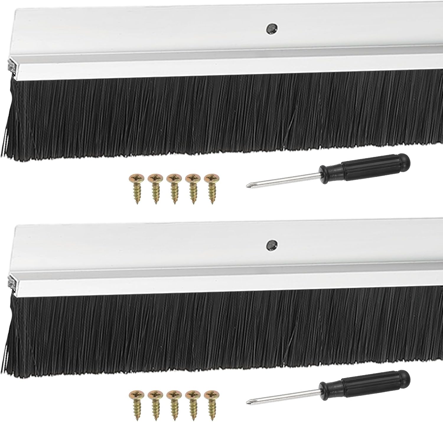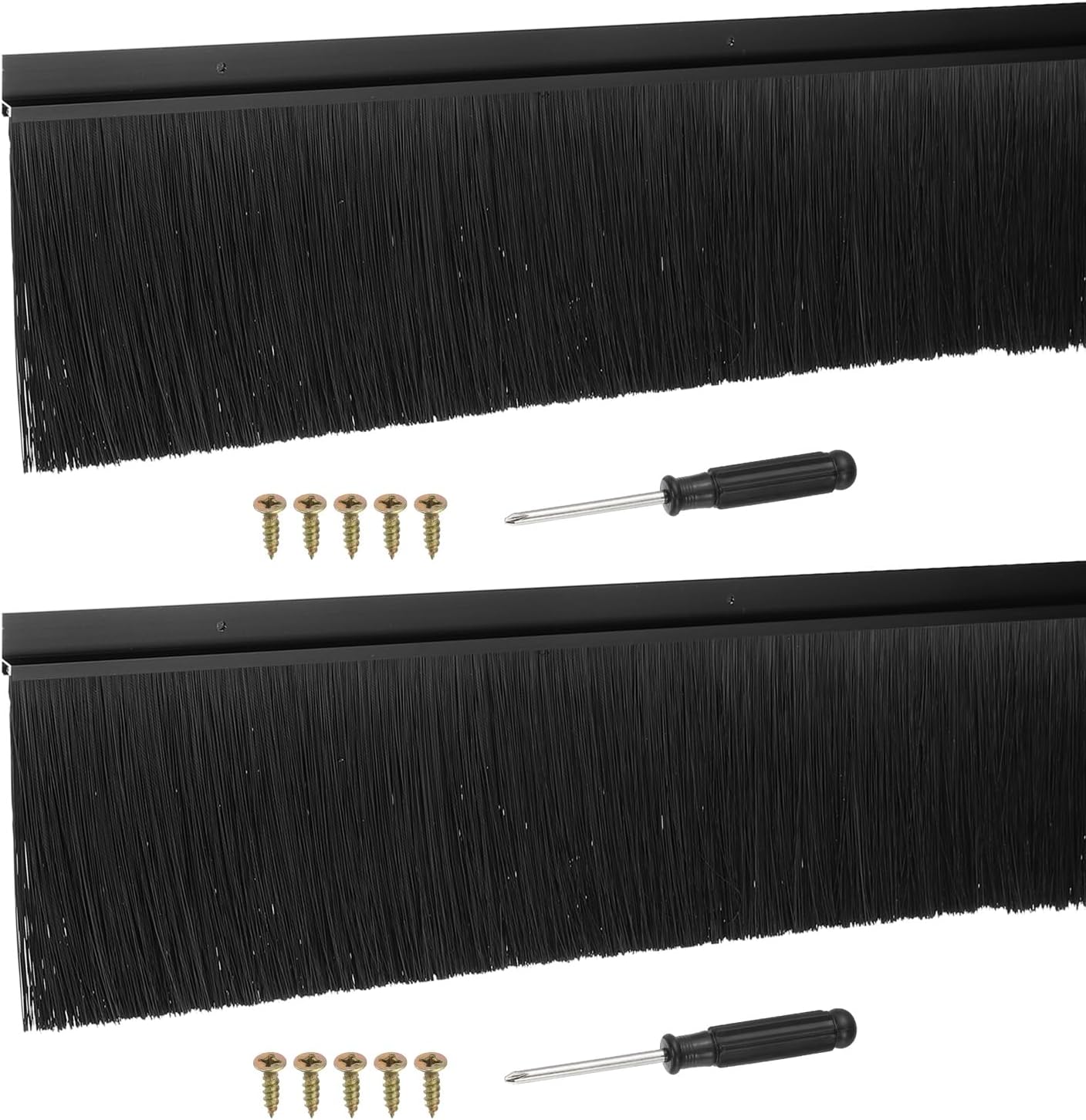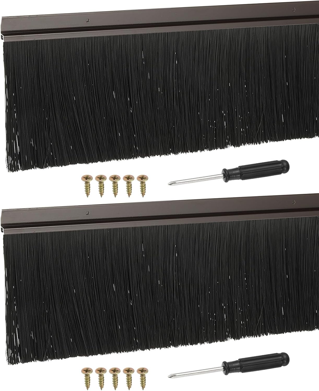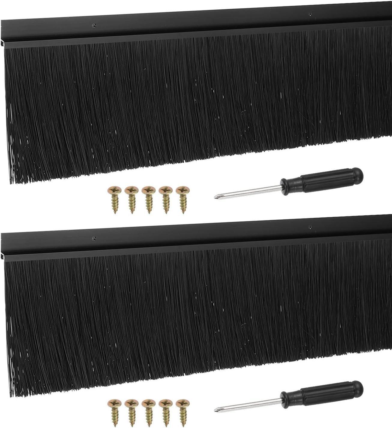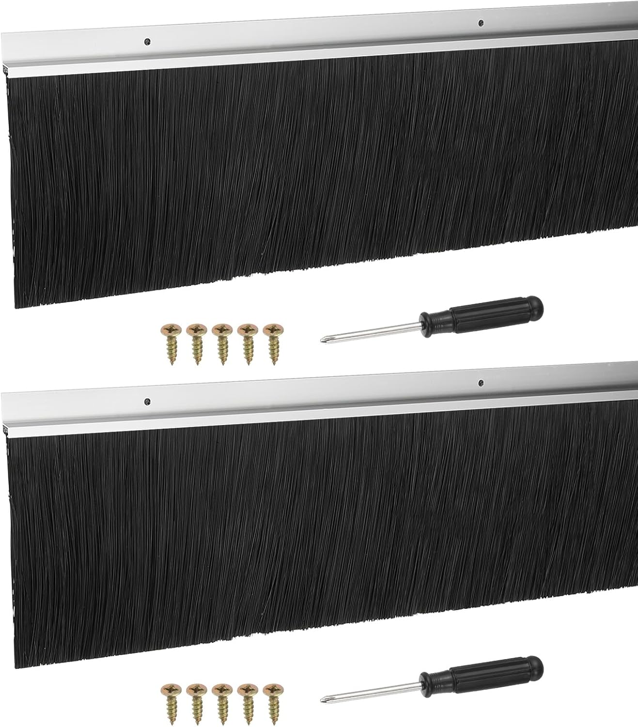 DURABLE MATERIALOur door sweep brush is made with sturdy aluminum alloy holder and tight PP bristles, it is rust-resistant, wear-resistant, flexible, and resistant to shedding and deformation. The adhesive backing ensures a secure and long-lasting attachment.MULTI APPLICATIONWidely used for sealing door and window gaps, tire cleaning, automatic escalator cleaning and other household, commercial, and industrial applications.KEY POINTSThe door bottom sweep is designed to effectively seal the gap between the door bottom and the floor, preventing wind, dust or dirt from entering indoors. It also helps improve room insulation and reduce noise transmission.PARCEL CONTENTLength: 1 m / 39 Inch; Width: 105 mm / 4.1 Inch; Bristles Length: 80 mm / 3.1 Inch; Color: Brown; Material: Aluminum Alloy, PP; Packing List: 2 Pcs x Door Sweeps with Screw AccessoriesTIPSThe door sweeper comes with four pre-drilled holes and a self-adhesive design, allowing you adhesive or use screws (included) to secure it to the bottom of the door according to your needs.
