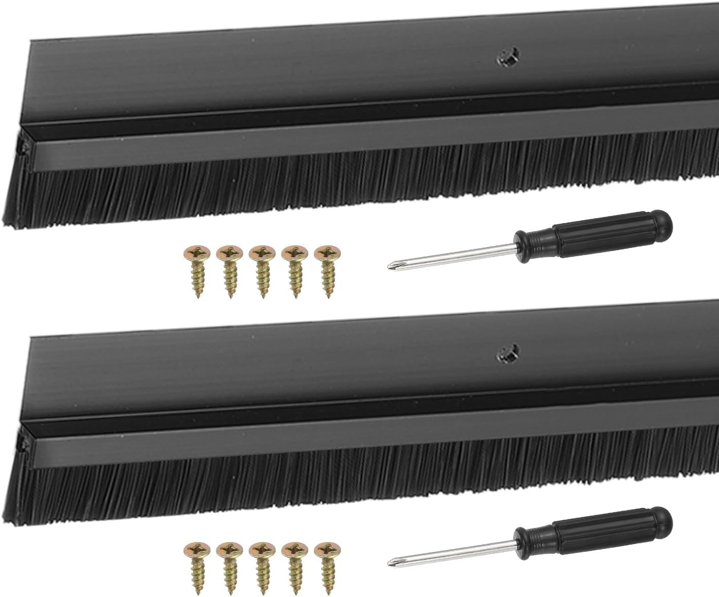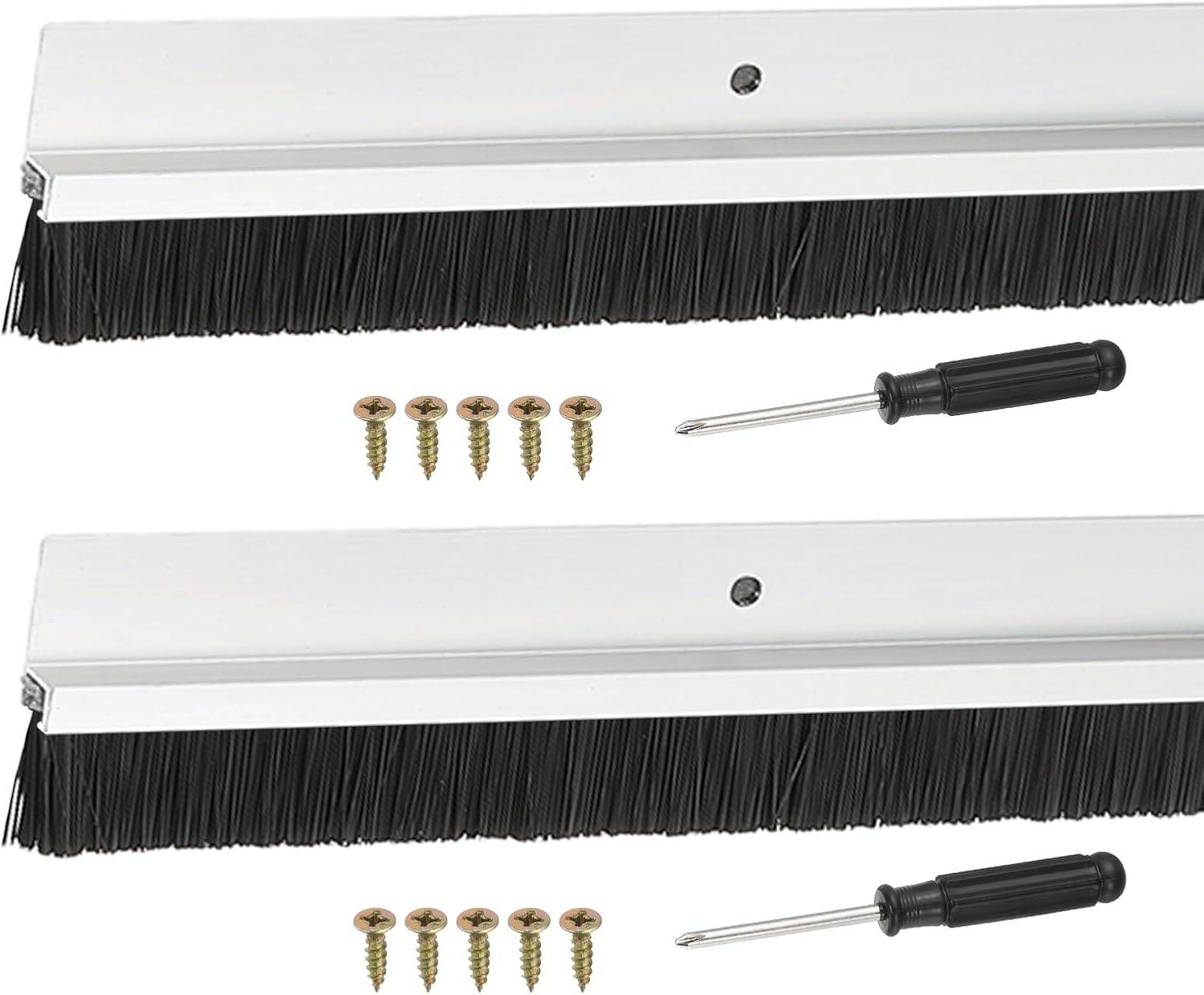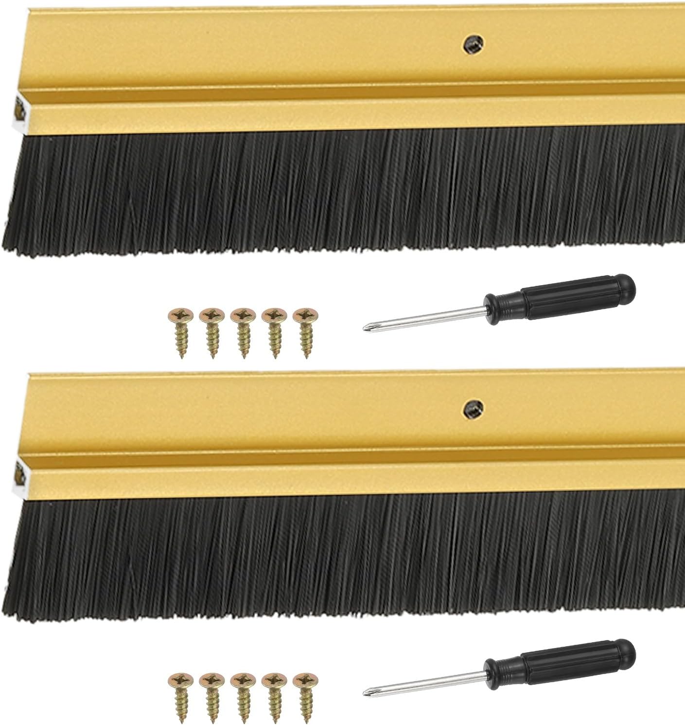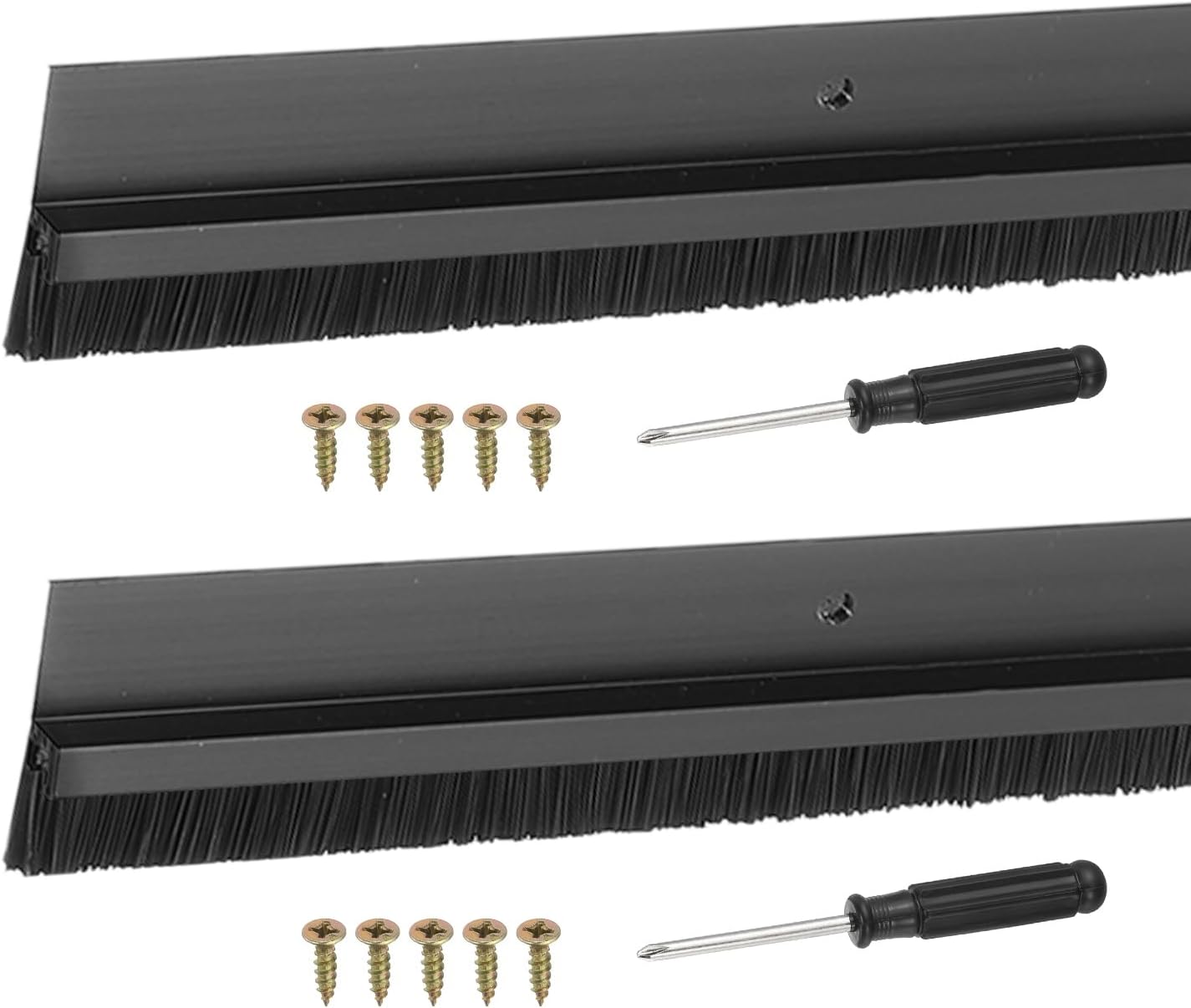 DURABLE MATERIALOur door sweep brush is made with sturdy aluminum alloy holder and tight PP bristles, it is rust-resistant, wear-resistant, flexible, and resistant to shedding and deformation. The adhesive backing ensures a secure and long-lasting attachment.MULTI APPLICATIONWidely used for sealing door and window gaps, tire cleaning, automatic escalator cleaning and other household, commercial, and industrial applications.KEY POINTSThe door bottom sweep is designed to effectively seal the gap between the door bottom and the floor, preventing wind, dust or dirt from entering indoors. It also helps improve room insulation and reduce noise transmission.PARCEL CONTENTLength: 1 m / 39 Inch; Width: 105 mm / 4.1 Inch; Bristles Length: 80 mm / 3.1 Inch; Color: Brown; Material: Aluminum Alloy, PP; Packing List: 2 Pcs x Door Sweeps with Screw AccessoriesTIPSThe door sweeper comes with four pre-drilled holes and a self-adhesive design, allowing you adhesive or use screws (included) to secure it to the bottom of the door according to your needs.
