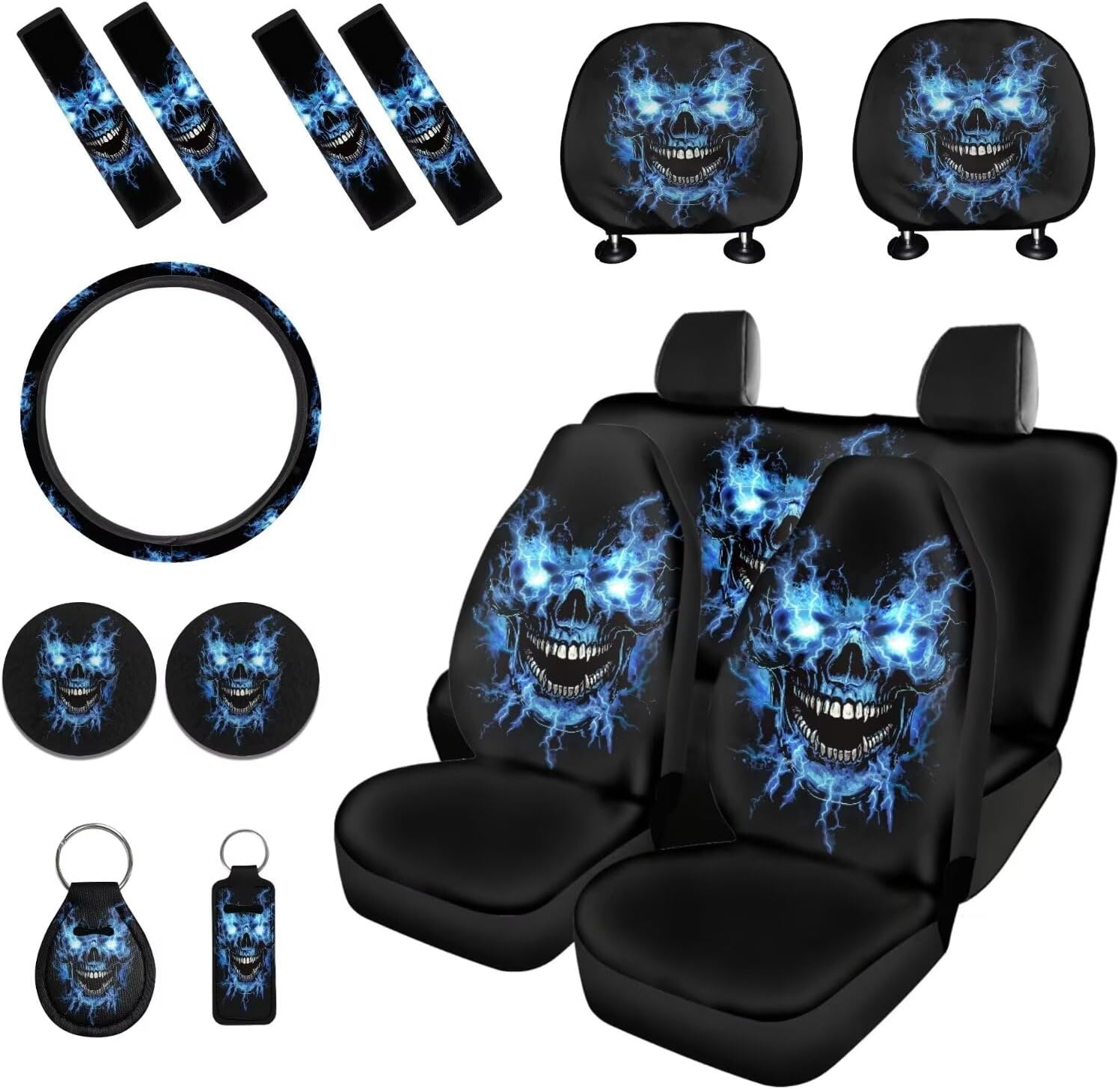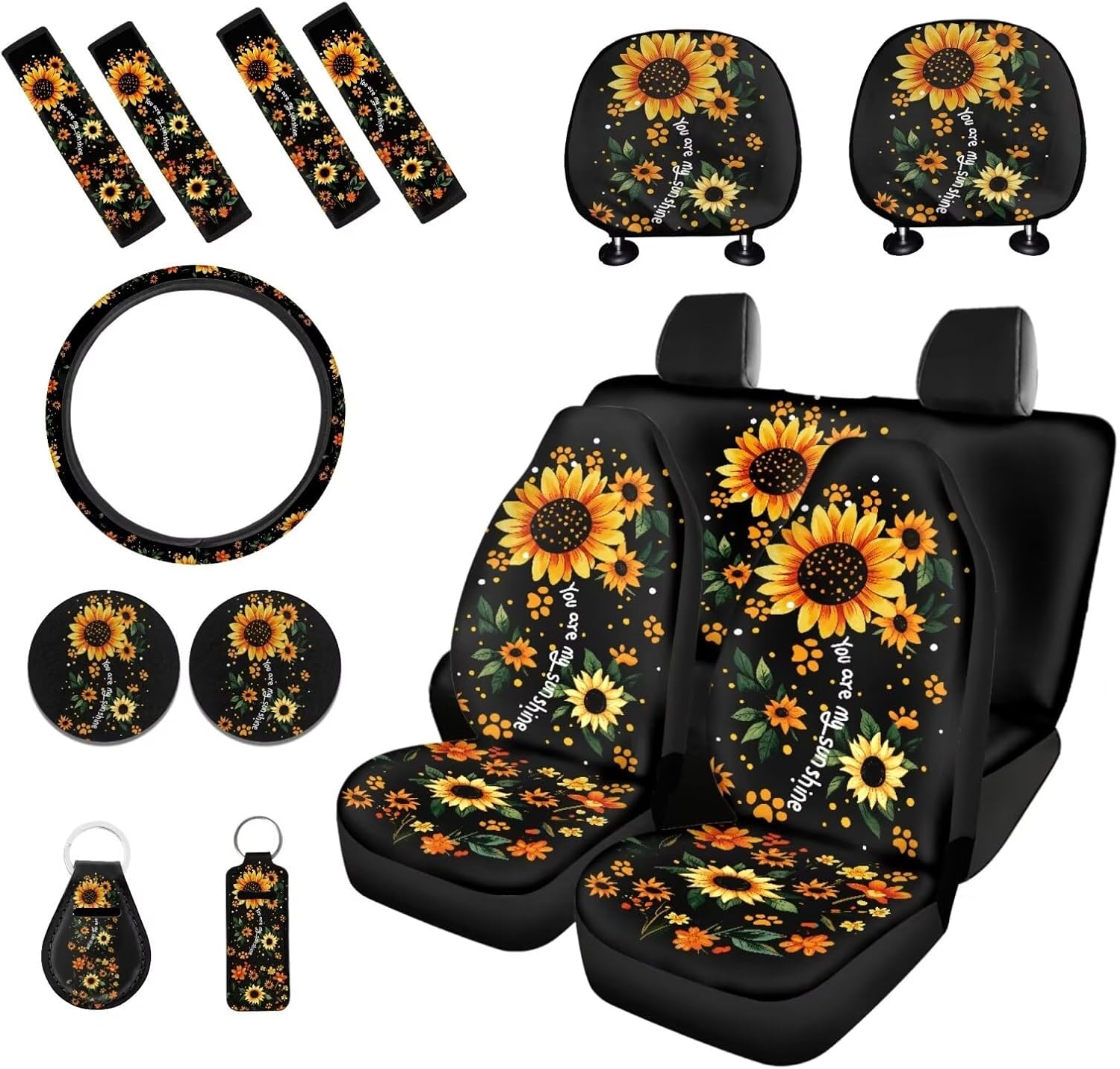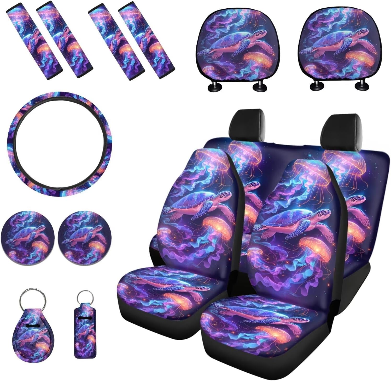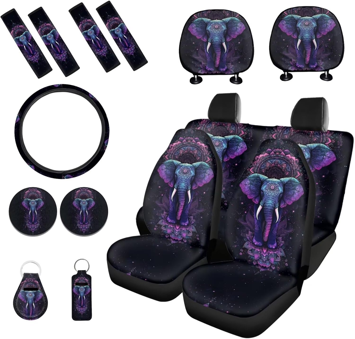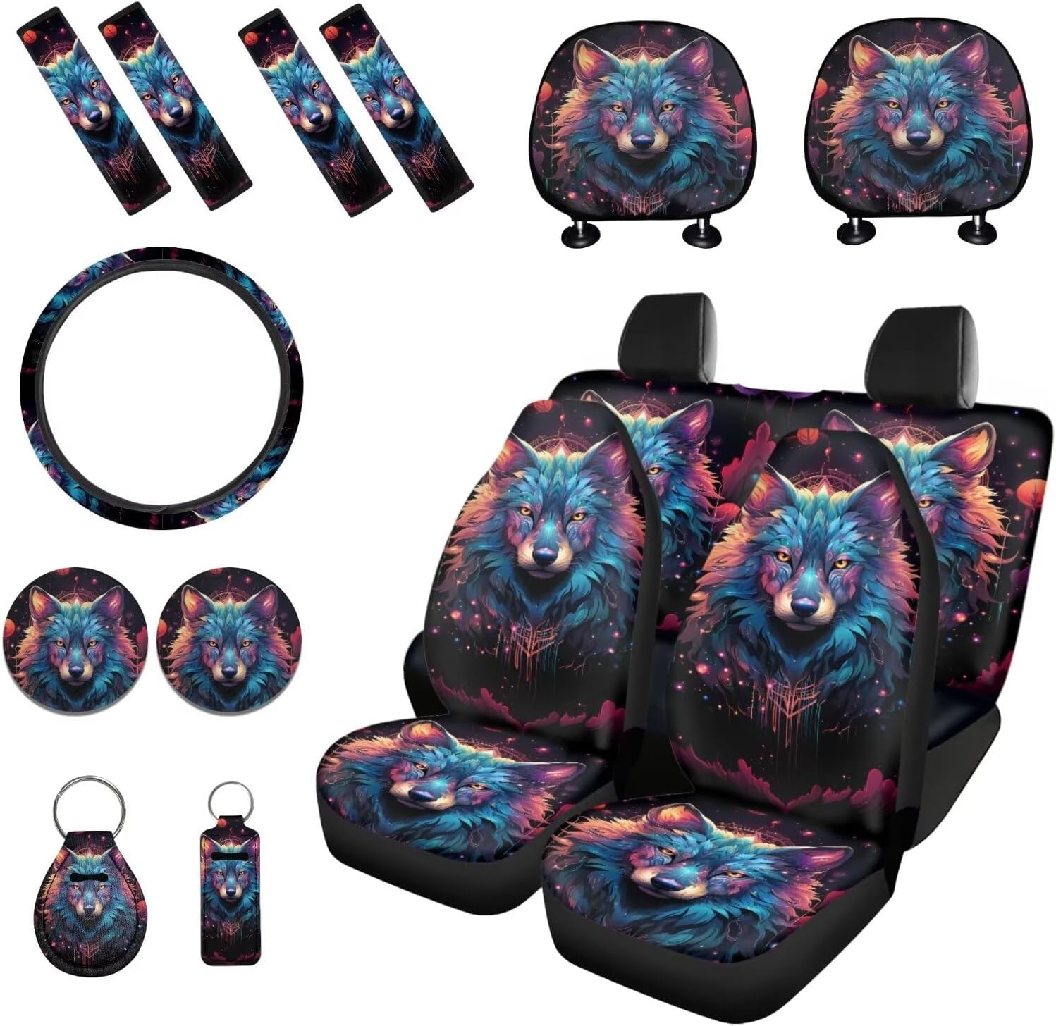 Package includes: 2 front and 2 rear seat covers 1 steering wheel cover, 4 seat belt covers, 2 car headrest cover 2 car coaster 1 keychain 1 lipstick holder keychian These car seat cover set are suitable as gifts for people who own cars, such as your family, friends, neighbors, colleagues, etc. They are practical and exquisite gifts. This full set car accessories not only beautifully decorates your car, but also keeps the interior clean; And they are easy to install, do not require any other tools, convenient and simple. Tips: Hand washable, do not soak for a long time, do not bleach, and the temperature of the detergent should not exceed 45 º C. Due to different measurement methods, please allow for an error of 1-2cm in this size data.