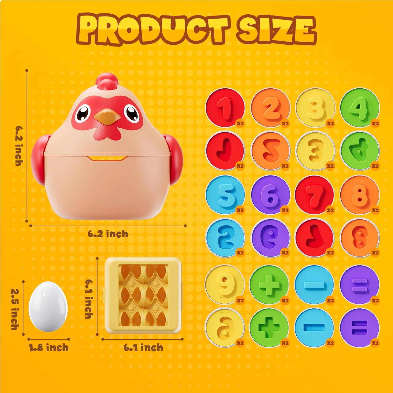 | Included Components | 1 Chicken Toy, 1 Egg Holder, 24 Play Eggs |
