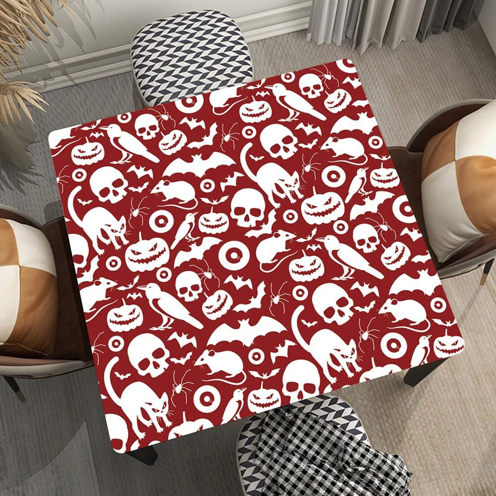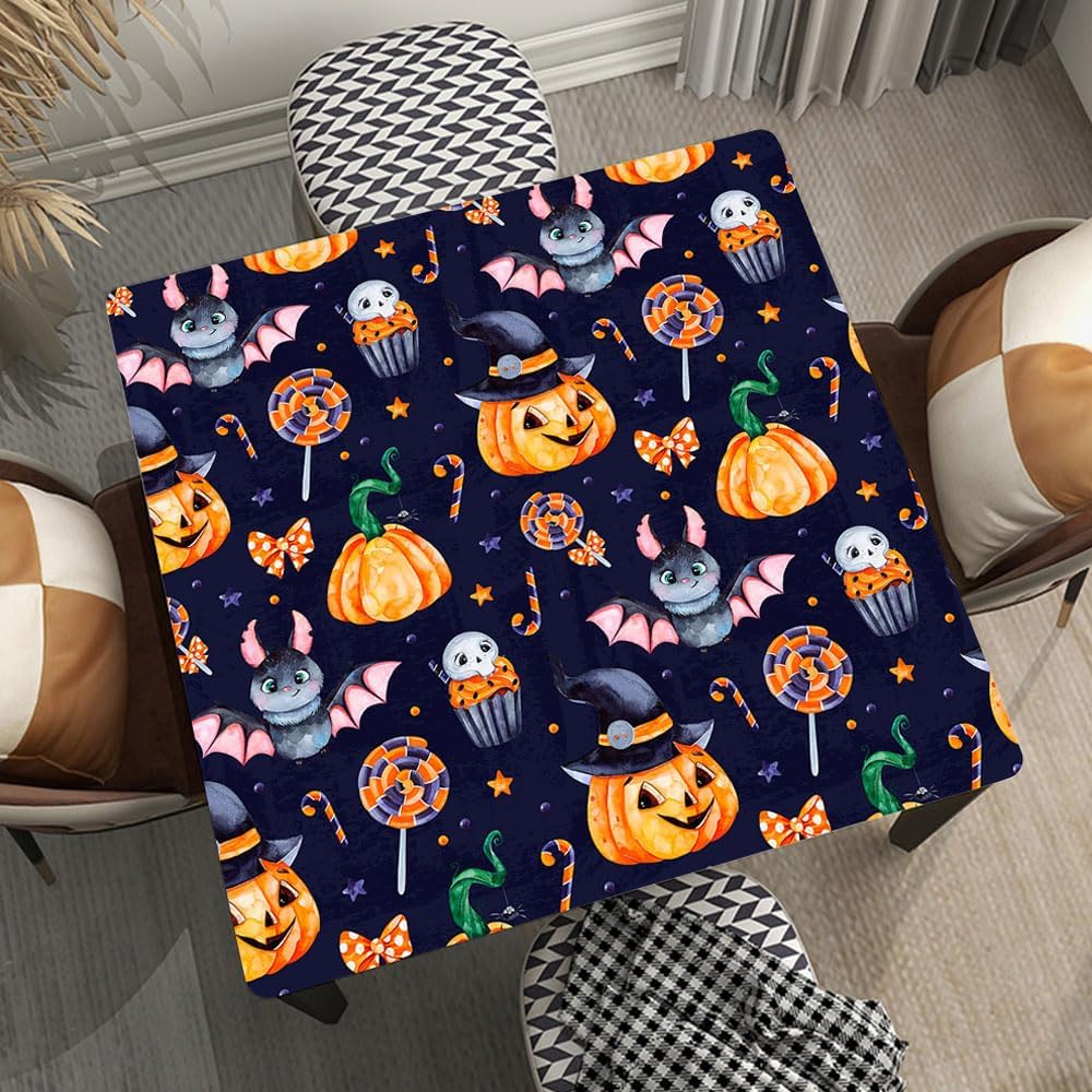 Elastic Edged Square Table Cloths Halloween Pattern with Pumpkins Background Fitted Table Covers for Party Picnic Garden Decor, Fitted for 60"x60" Square Table, Style 603