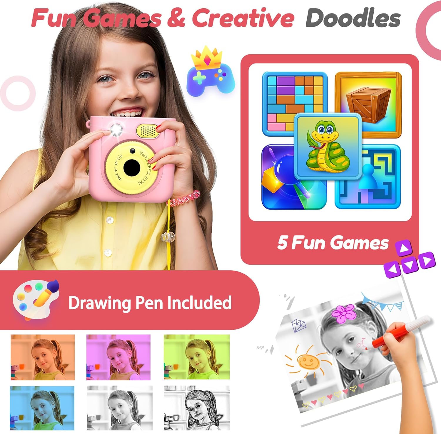 Bring the magic of fairies and the joy of photography together with this enchanting bundle! The Electric Fairy Butterfly Wings light up and flutter with music, perfect for imaginative dress-up and play. Alongside the Instant Camera, kids can capture and print their memories instantly with this 48MP digital camera that also features color & black-and-white printing. This bundle is a fantastic gift for girls and boys aged 3-12, ideal for Christmas, birthdays, or any special occasion, providing hours of creative fun!