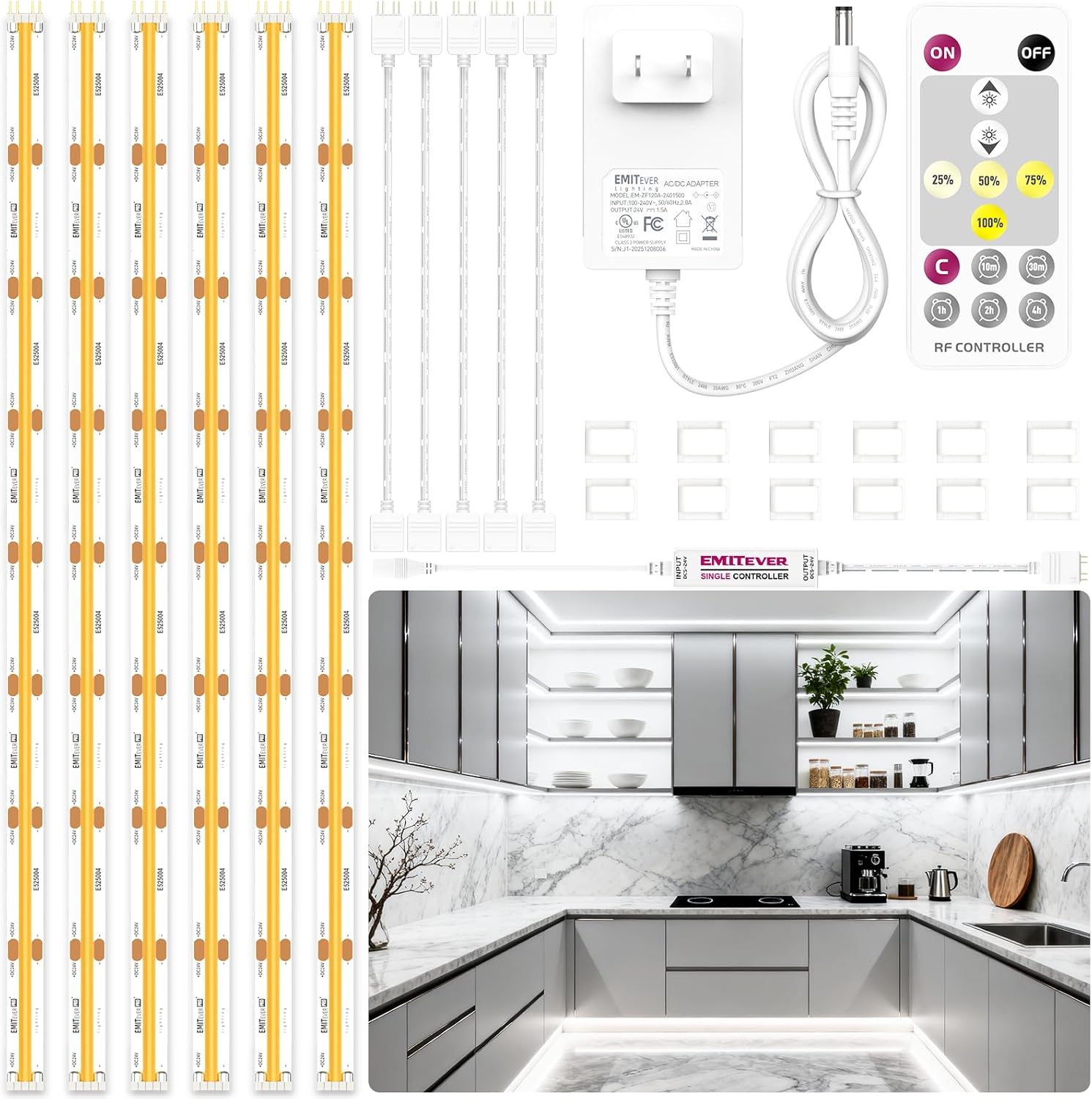 | Included Components | RF Remote, Touch Control, 24V Power Adapter, Fixed Wire Clips |