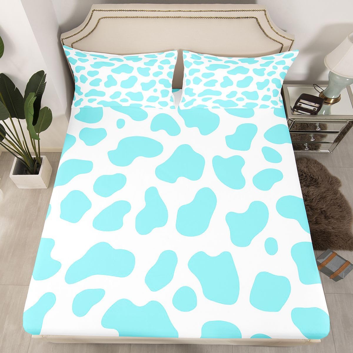 The Modern Fitted Sheet Set Pattern Bedding Set,Simply Decorating Your Rooms You Want,Bringing You Fresh Feel for Year Round Use. Made From Polyester Microfiber Size Information: Twin Size: 2Pcs Fitted Sheet Set:1 Fitted Sheet 39"Wx75"Lx16"H(99x190x41cm), 1 Pillowcase 20"x30"(51X75cm). Full Size: 3Pcs Fitted Sheet Set:1 Fitted Sheet 54"Wx75"Lx16"H(137x191x41cm), 2 Pillowcase 20"x30"(51x75cm). Queen Size: 3Pcs Fitted Sheet Set:1 Fitted Sheet 60"Wx80"Lx16"H(152x203x41cm), 2 Pillowcase 20"x30"(51x75cm). : Personalize Your Bedroom Vibrant prints and thoughtfully curated designs create a personalized bedroom retreat, supporting restful sleep in comfort With elasticity all around, this fitted sheet can firmly lock onto the mattress, making it suitable for various sleeping positions. Its all round package design ensures a smooth and flat surface. Coordinating envelope pillowcase that is easy to replace, saving time and effort, while maintaining the overall aesthetic appeal. : Washing Instructions Machine Wash Separately In Cold Water,Hang Dry,Do Not Bleach. : Occasion Ideal for bedroom, this ultra-soft fitted sheet provides exceptional comfort for everyone. A versatile essential for daily use, guest rooms, or as a spare set for the entire family.