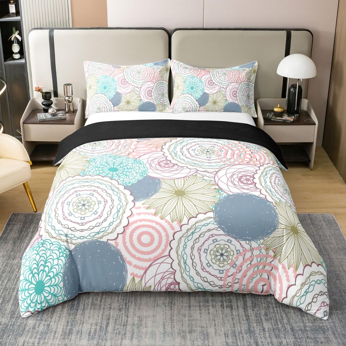 Cotton Duvet Cover Set with Printed Patterns Size Information Twin size:2pcs duvet cover set,1 Duvet Cover 68 x 90 inch,173 x 228cm, 1 pillow sham 20 x 30 inch,51x75cm.Without Comforter Full size:3pcs duvet cover set, 1 Duvet Cover 79 x 90 inch,200 x 229cm, 2 pillow shams 20 x 30 inch,51 x 75cm.Without Comforter Queen size:3pcs duvet cover set, 1 Duvet Cover 90 x 90 inch,229 x 229cm, 2 pillow shams 20 x 30 inch,51 x 75cm.Without Comforter King size :3pcs duvet cover set, 1 Duvet Cover 104 x 90 inch,264 x 229cm, 2 pillow shams 20 x 36 inch,51 x 92cm.Without Comforter Product Features: Decorative bedding ensemble with multiple pattern options Machine washable in cold water (separate cycle recommended) Line dry method suggested; bleach-free cleaning required All-season cotton construction suitable for various age groups Key Specifications: Primary material: 100% cotton Design application: Printed patterns Age compatibility: Kids, teens, and adults