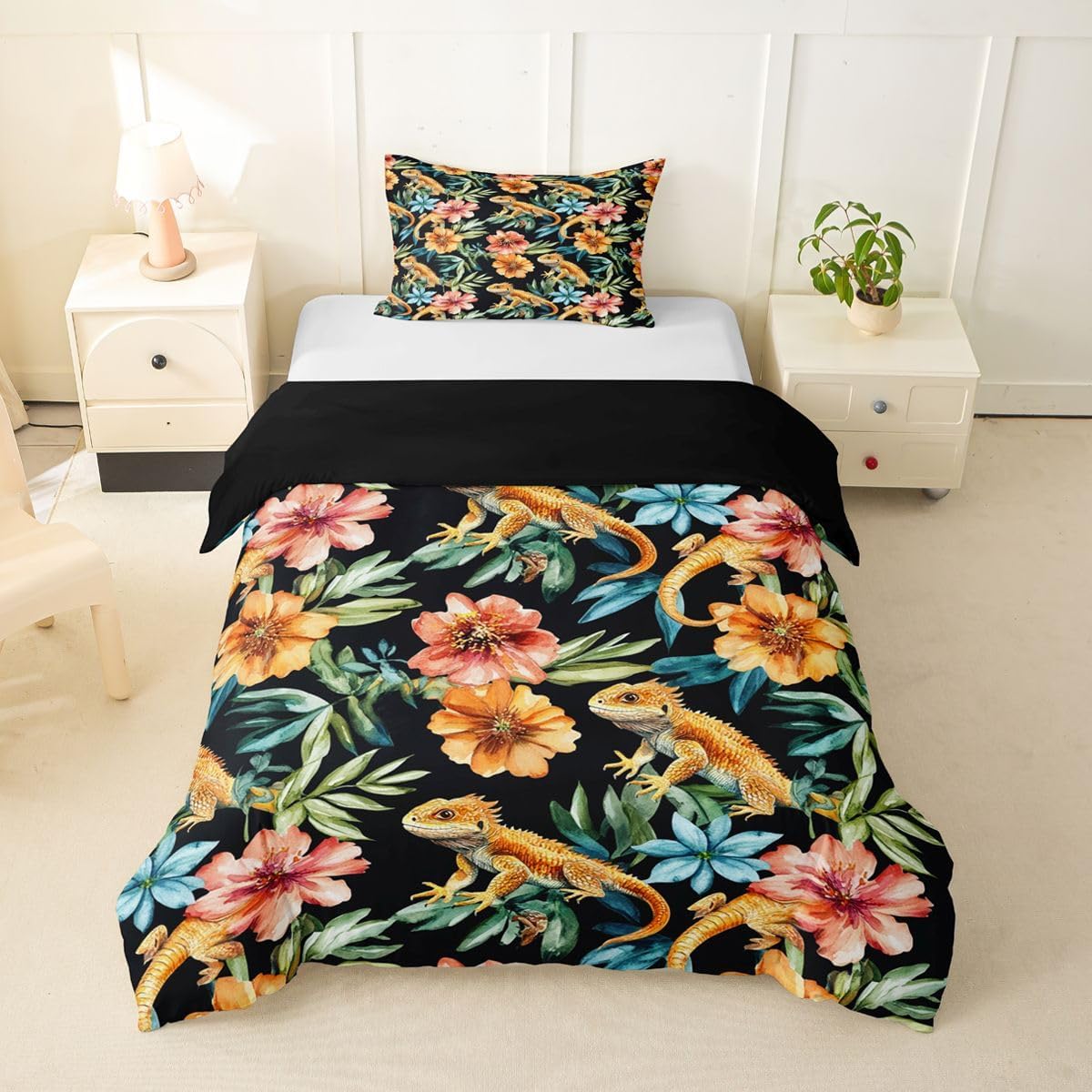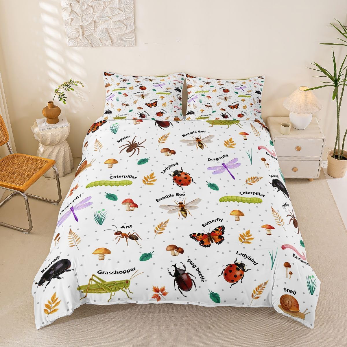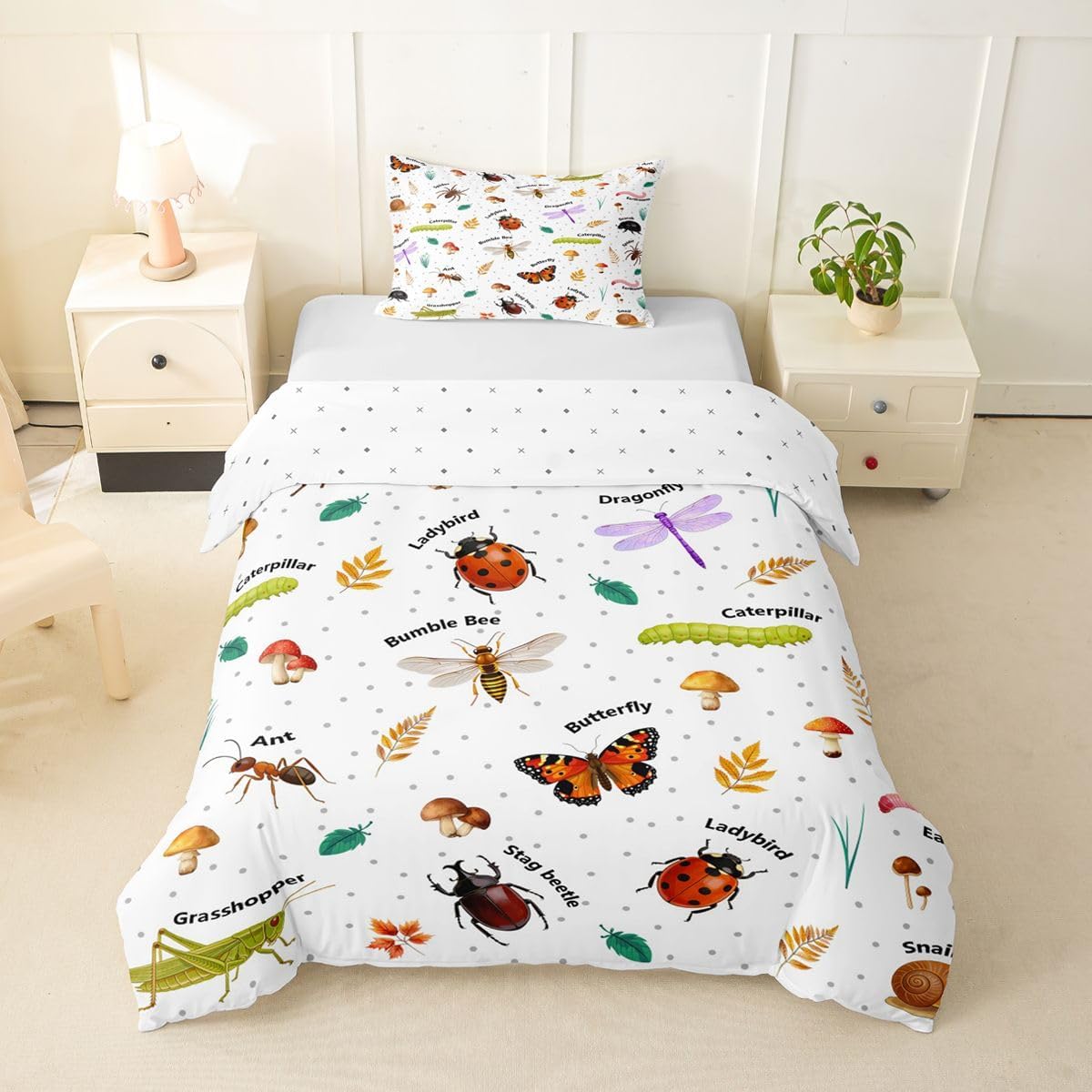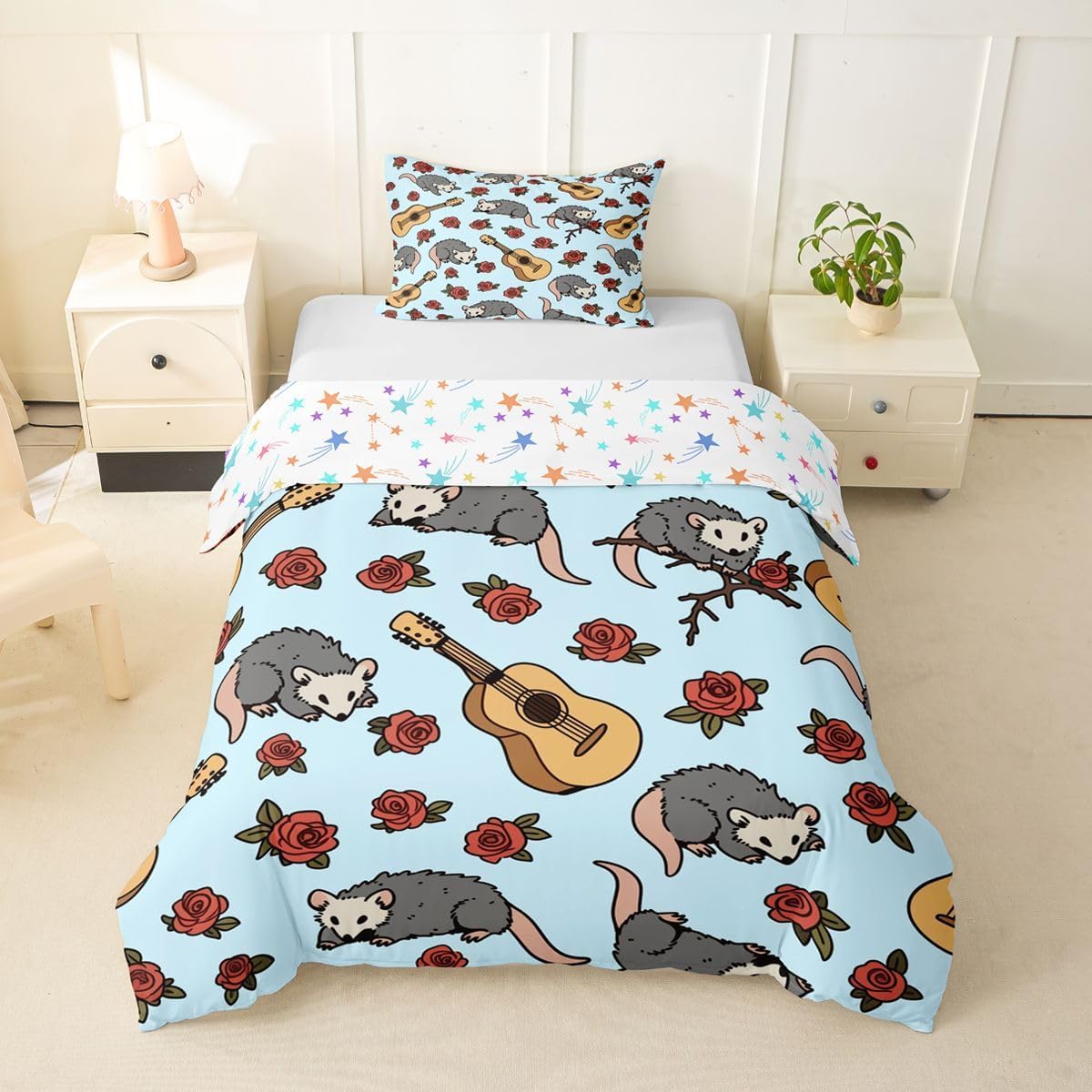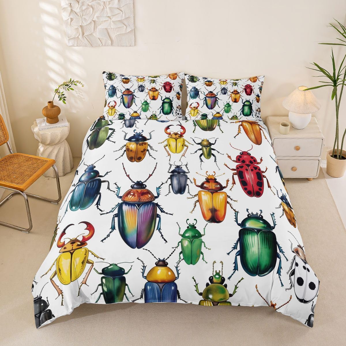 Size Information Toddler : 2Pcs Duvet Cover Set:1 Duvet Cover 42"x58",106x147cm and 1 Pillowcase 20"x30",51x75cm,Without Comforter Twin : 2Pcs Duvet Cover Set:1 Duvet Cover 68"x90",173x228cm and 1 Pillowcase 20"x30",51x75cm,Without Comforter Full : 3Pcs Duvet Cover Set: 1 Duvet Cover 79"x90",200x229cm and 2 Pillowcases 20"x30",51x75cm,Without Comforter Queen : 3Pcs Duvet Cover Set :1 Duvet Cover 90"x90",229x229cm and 2 Pillowcases 20"x30",51x75cm,Without Comforter King : 3Pcs Duvet Cover Set :1 Duvet Cover 104"x90",264x229cm and 2 Pillowcase 20"x36",51x92cm,Without Comforter Material: Polyester fabric. Fabric Characteristic: Polyester fabric with a specific hand feel. Design Feature: Available in multiple colorful printed designs. Intended Use: Suitable for home bedroom decoration. Care Instructions: Machine wash separately in cold water. Hang to dry. Do not bleach. Suitable For: Kids, teens, and adults. Fabric Property: Breathable construction. Seasonal Use: Designed for year-round use.