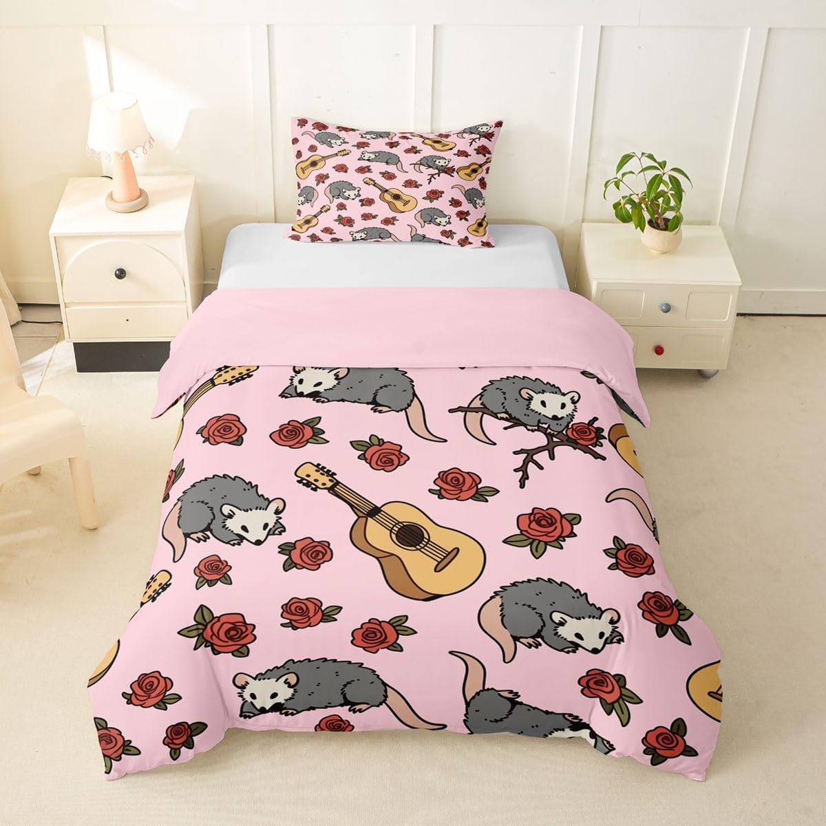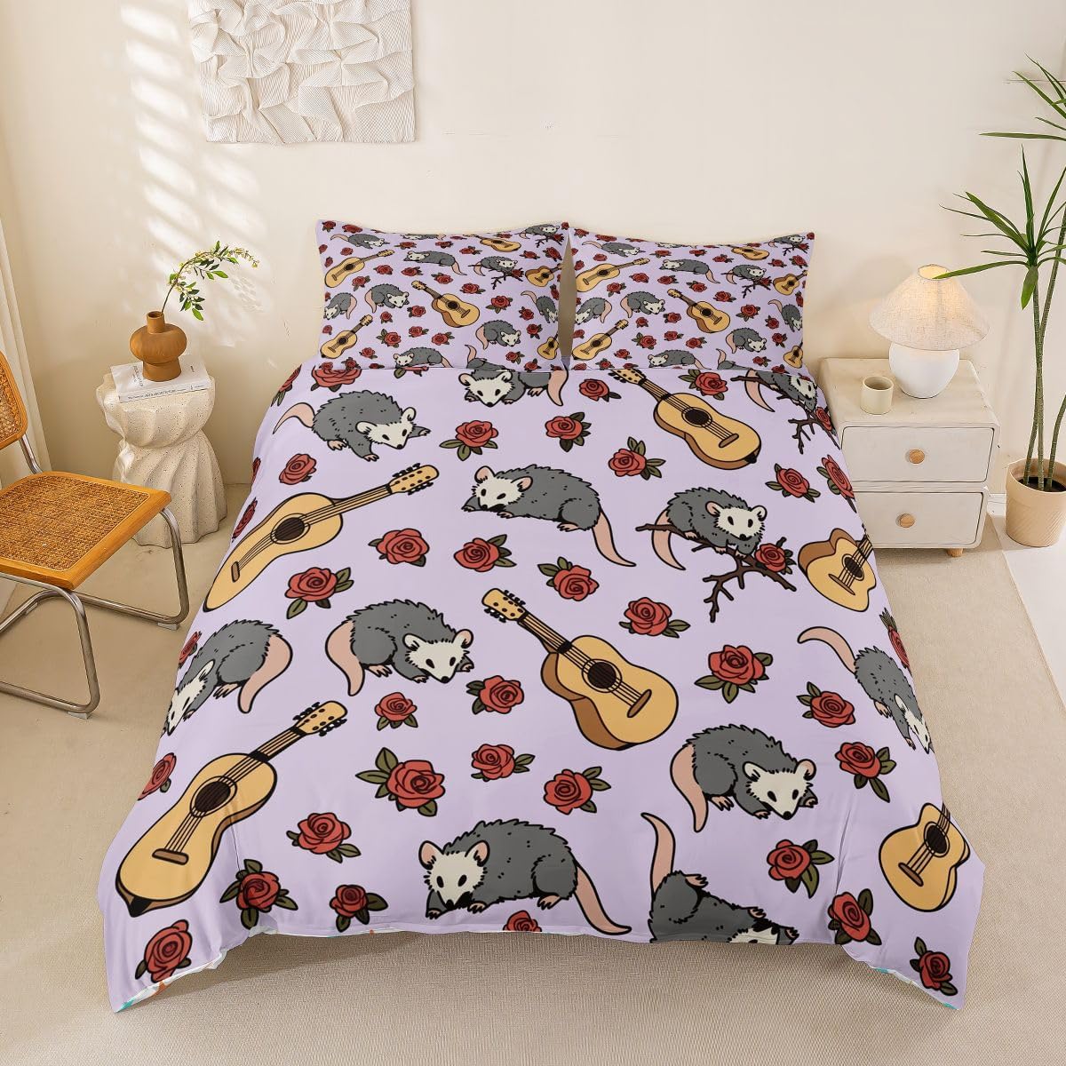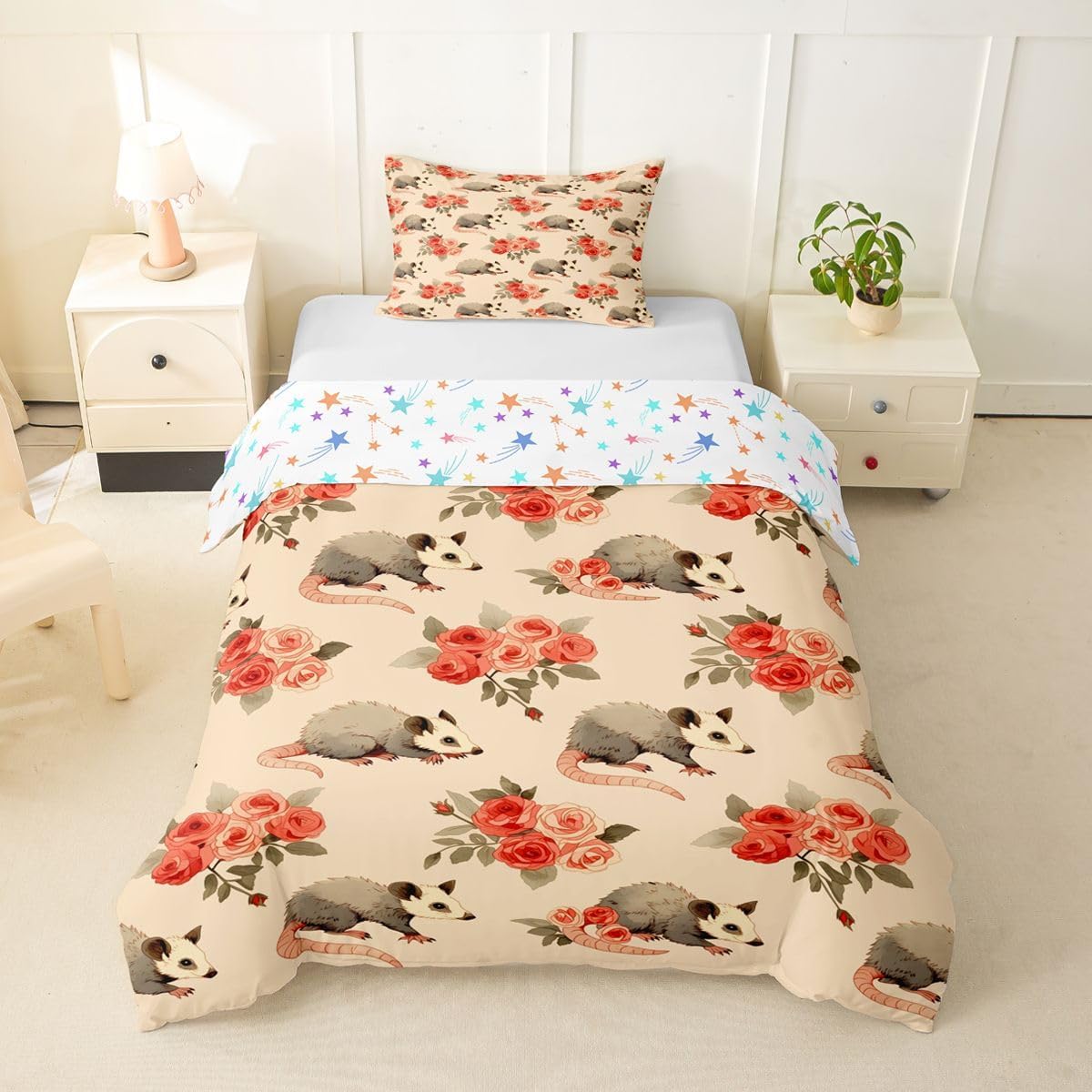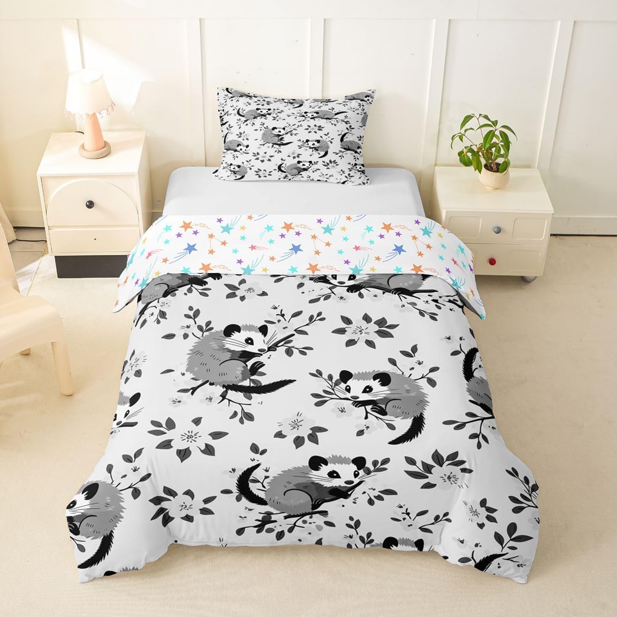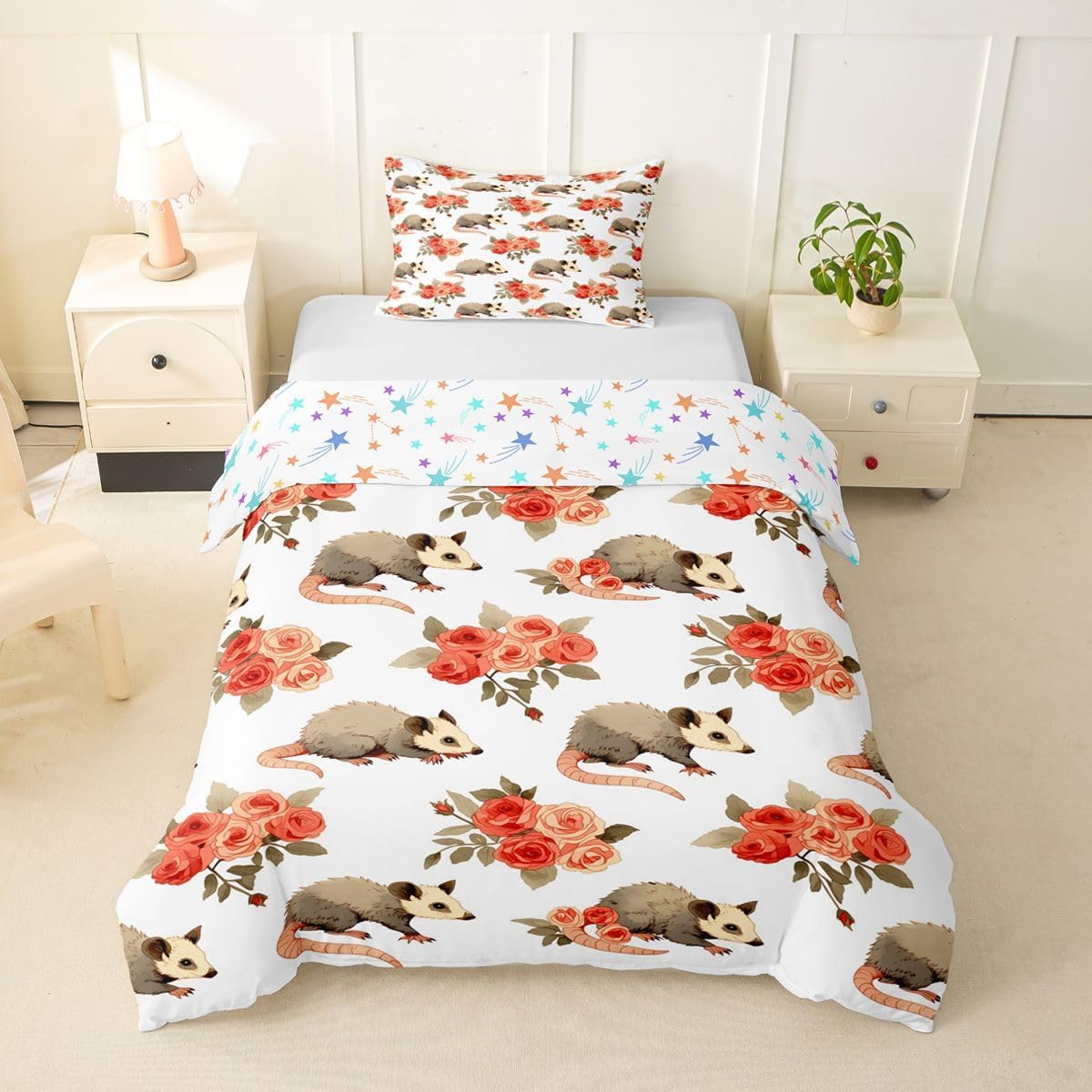 Size Information Toddler : 2Pcs Duvet Cover Set:1 Duvet Cover 42"x58",106x147cm and 1 Pillowcase 20"x30",51x75cm,Without Comforter Twin : 2Pcs Duvet Cover Set:1 Duvet Cover 68"x90",173x228cm and 1 Pillowcase 20"x30",51x75cm,Without Comforter Full : 3Pcs Duvet Cover Set: 1 Duvet Cover 79"x90",200x229cm and 2 Pillowcases 20"x30",51x75cm,Without Comforter Queen : 3Pcs Duvet Cover Set :1 Duvet Cover 90"x90",229x229cm and 2 Pillowcases 20"x30",51x75cm,Without Comforter King : 3Pcs Duvet Cover Set :1 Duvet Cover 104"x90",264x229cm and 2 Pillowcase 20"x36",51x92cm,Without Comforter Material: Polyester fabric. Fabric Characteristic: Polyester fabric with a specific hand feel. Design Feature: Available in multiple colorful printed designs. Intended Use: Suitable for home bedroom decoration. Care Instructions: Machine wash separately in cold water. Hang to dry. Do not bleach. Suitable For: Kids, teens, and adults. Fabric Property: Breathable construction. Seasonal Use: Designed for year-round use.
