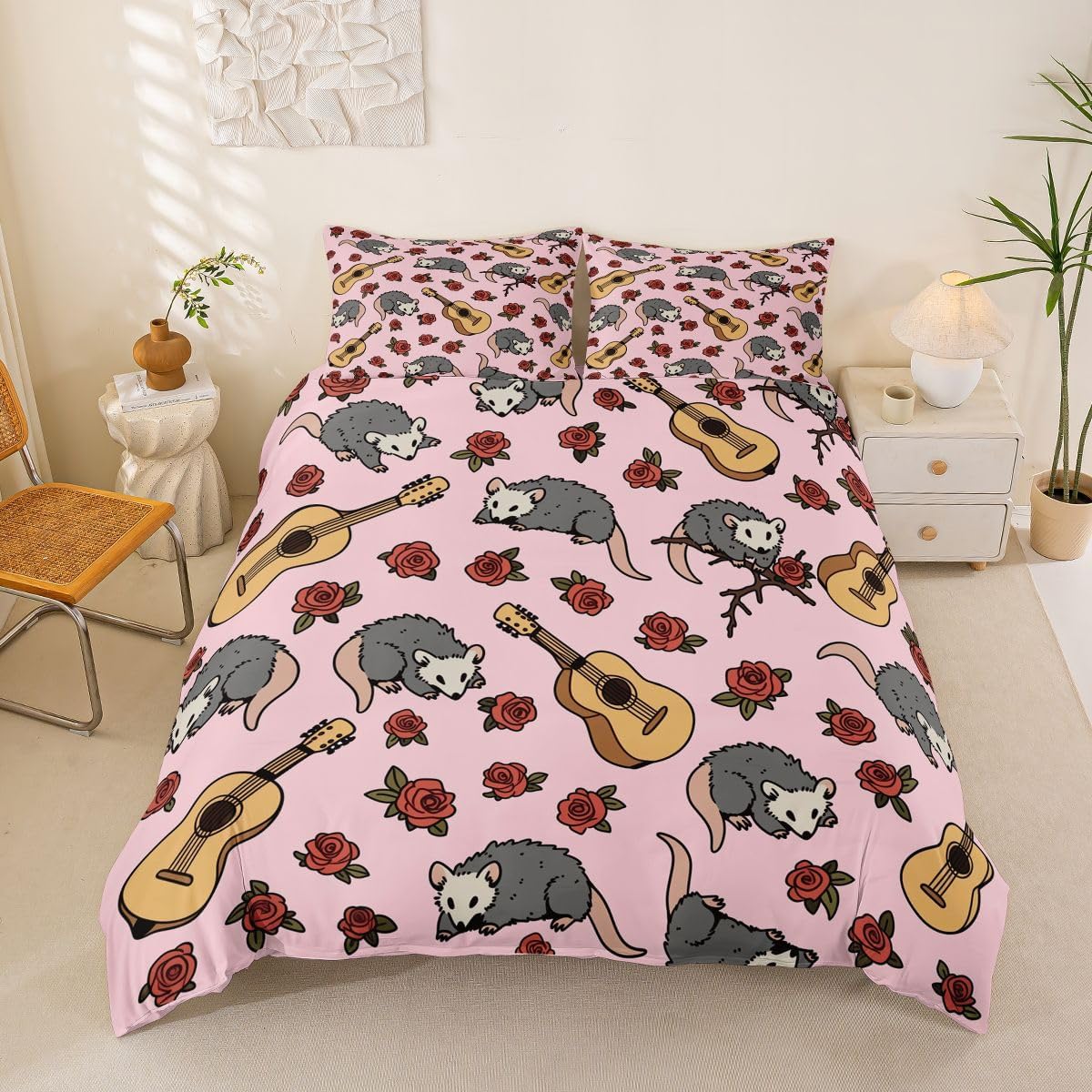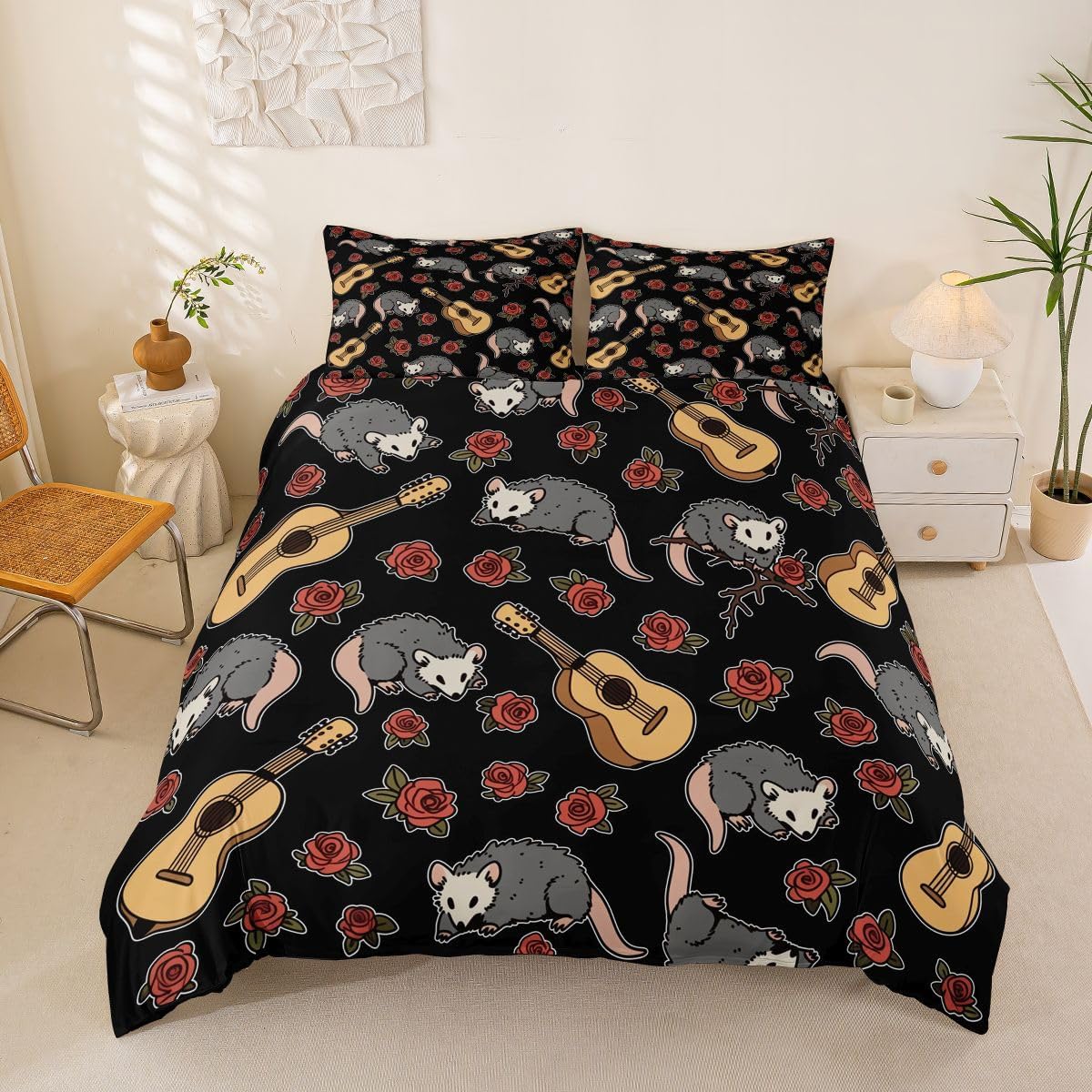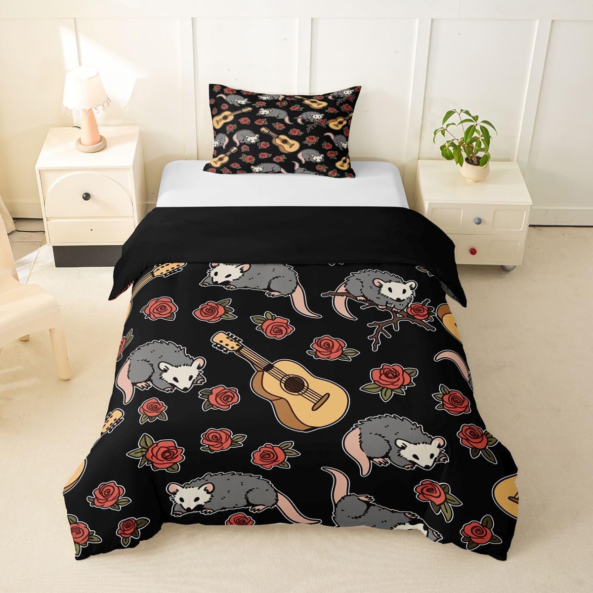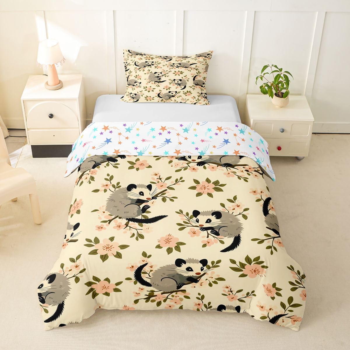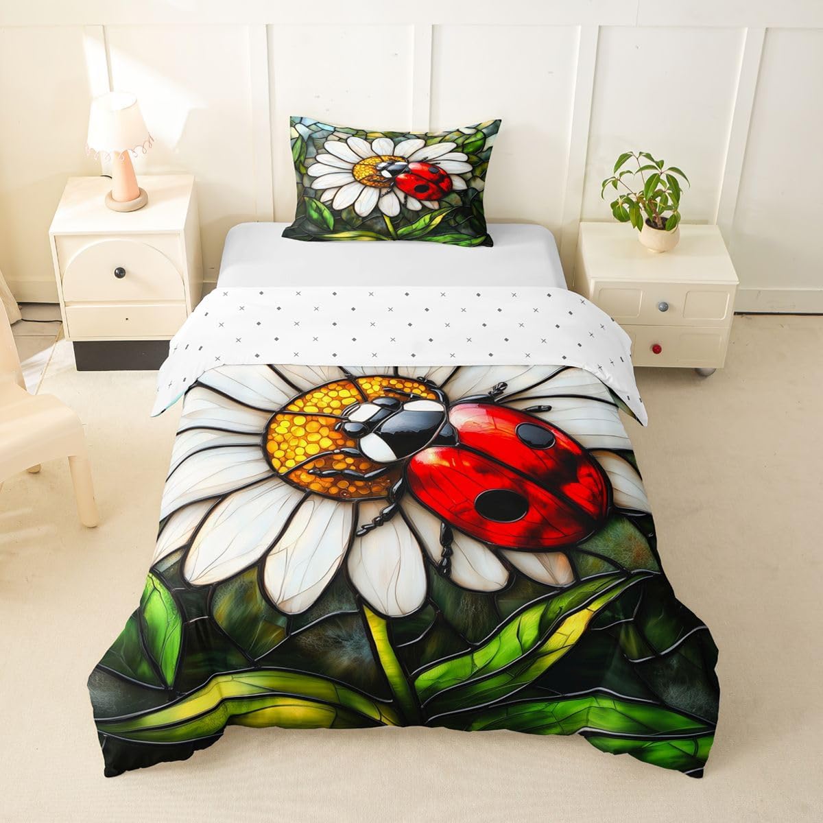Size Information Toddler : 2Pcs Duvet Cover Set:1 Duvet Cover 42"x58",106x147cm and 1 Pillowcase 20"x30",51x75cm,Without Comforter Twin : 2Pcs Duvet Cover Set:1 Duvet Cover 68"x90",173x228cm and 1 Pillowcase 20"x30",51x75cm,Without Comforter Full : 3Pcs Duvet Cover Set: 1 Duvet Cover 79"x90",200x229cm and 2 Pillowcases 20"x30",51x75cm,Without Comforter Queen : 3Pcs Duvet Cover Set :1 Duvet Cover 90"x90",229x229cm and 2 Pillowcases 20"x30",51x75cm,Without Comforter King : 3Pcs Duvet Cover Set :1 Duvet Cover 104"x90",264x229cm and 2 Pillowcase 20"x36",51x92cm,Without Comforter Material: Polyester fabric. Fabric Characteristic: Polyester fabric with a specific hand feel. Design Feature: Available in multiple colorful printed designs. Intended Use: Suitable for home bedroom decoration. Care Instructions: Machine wash separately in cold water. Hang to dry. Do not bleach. Suitable For: Kids, teens, and adults. Fabric Property: Breathable construction. Seasonal Use: Designed for year-round use.