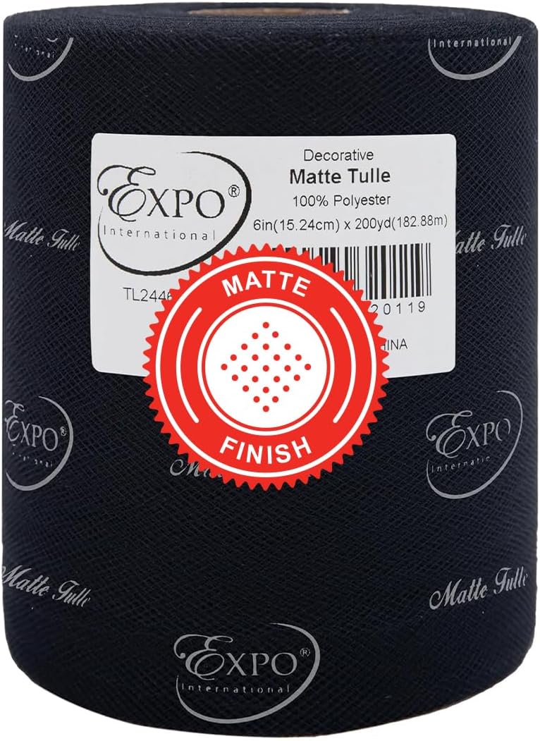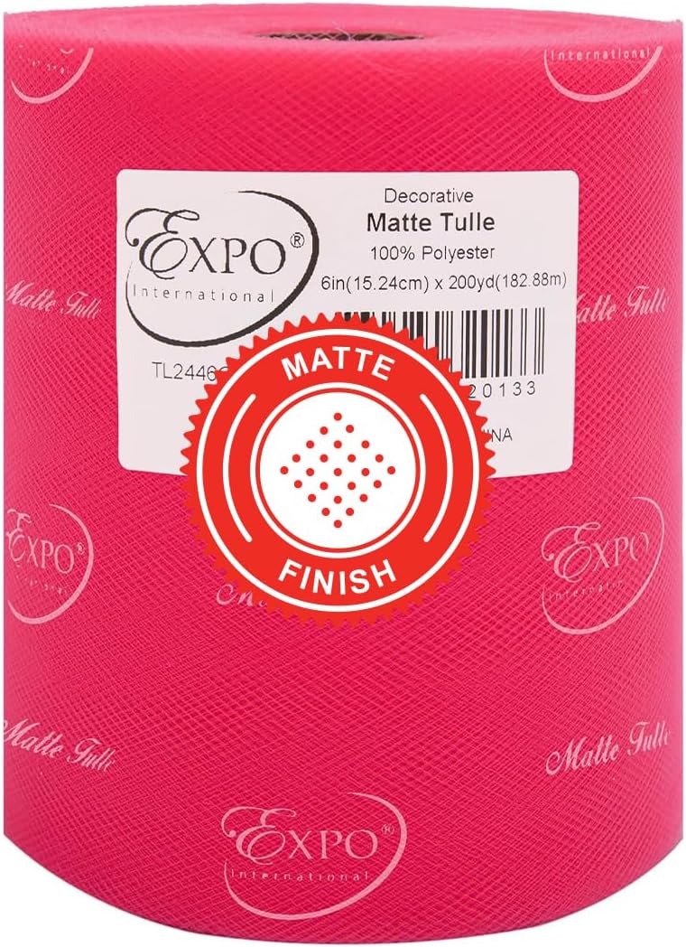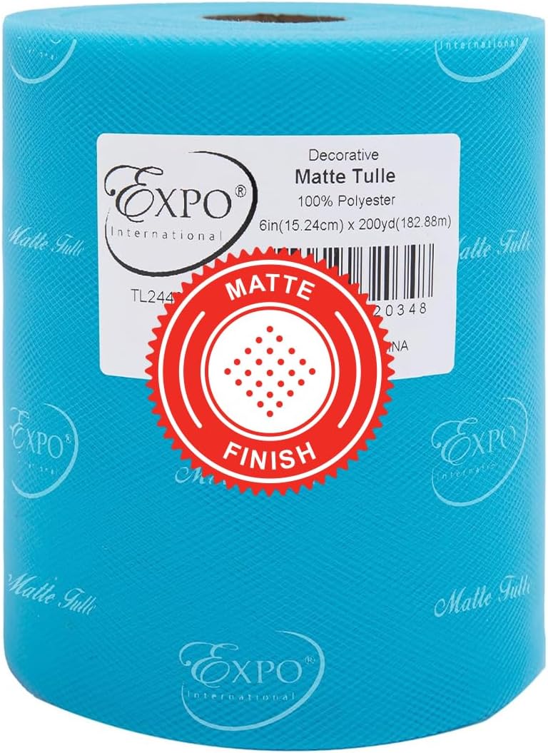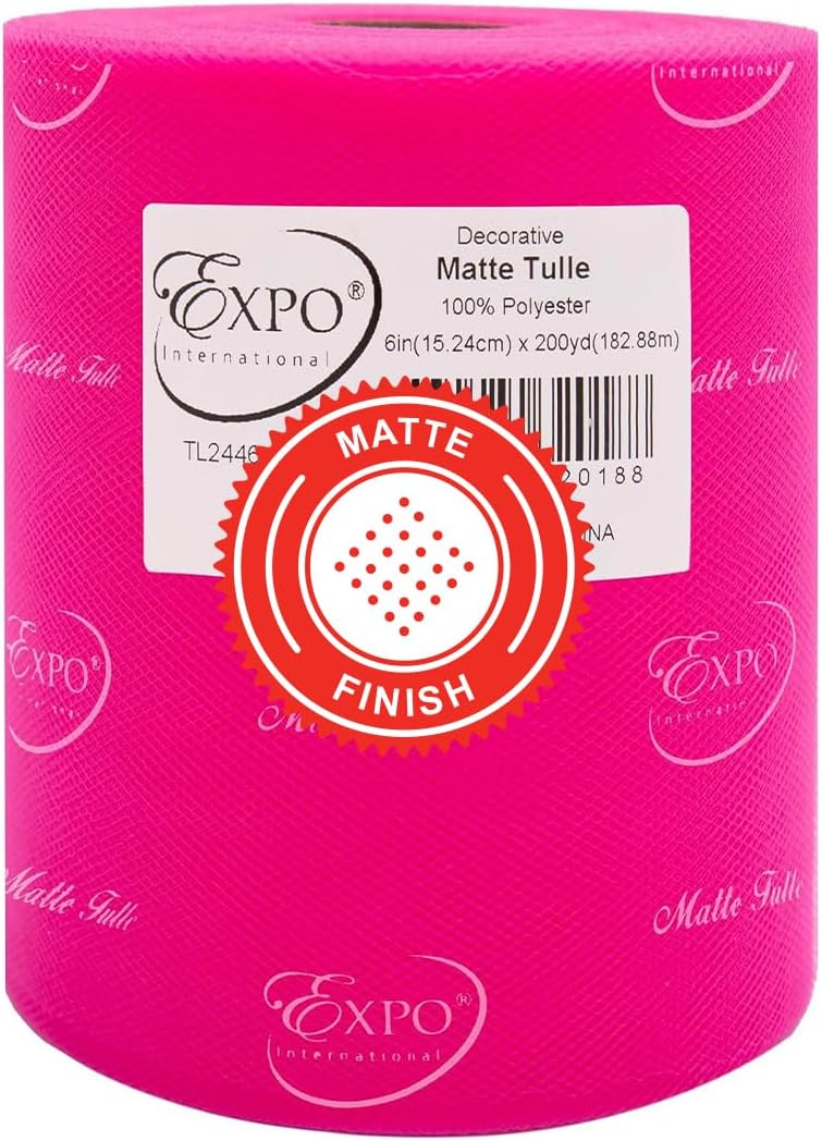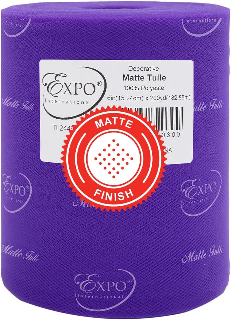 Value Pack of Decorative Matte Tulle, 6 Rolls/Spools of 6" x 200 yards (1200 yards/ 3600 feet), Lightweight Polyester Tulle Fabric for Tutus, Costumes, and Party Decorations, Washable, Easy-to-Use Let your creativity run wild as you craft stunning projects with the Expo International Decorative Matte Tulle. A perfect addition to your sewing and crafting supplies, this soft and lightweight tulle fabric is made with 100% polyester, follows CPSIA for lead content, features a beautiful matte finish, and is ideal for creating tutus, costumes, specialty fashion accessories, and more. Whether you're making headbands, hair clips, or even adding a finishing touch to a pair of shoes, this versatile tulle is sure to elevate your creations to the next level. From wreaths and pom poms to crowns and bouquets, the possibilities are endless! Our high-quality decorative matte tulle can easily be cut, tied, folded, and wrapped to create a variety of beautiful party decorations, wedding decorations, and embellishments, thereby offering great value for both the sewer and crafter alike. The generous amount of tulle on each roll means you can create multiple projects without running out, while the washable and durable tulle ensures your finished products will look stunning for years to come. Multiple color and size options are also available.