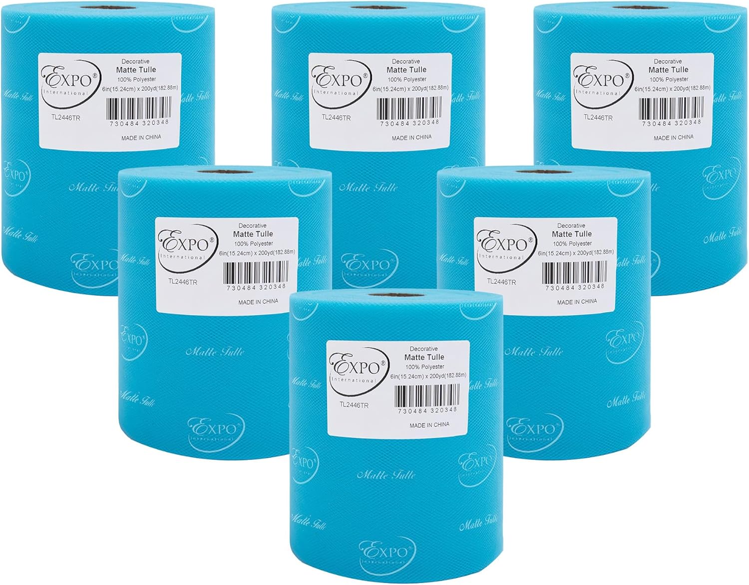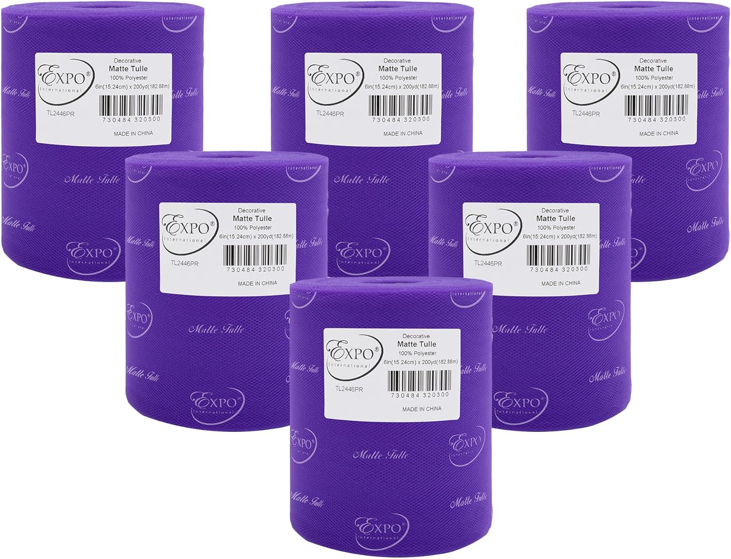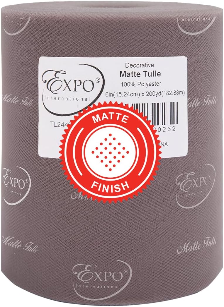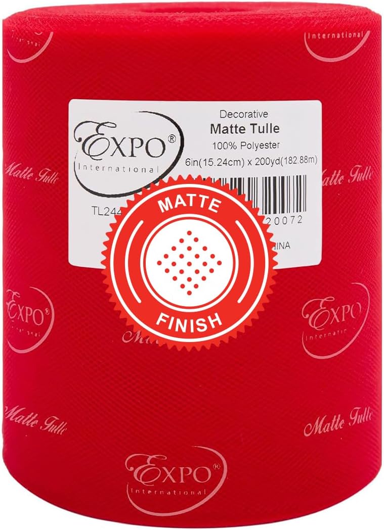 Value Pack of Decorative Matte Tulle, 6 Rolls/Spools of 6" x 200 yards (1200 yards/ 3600 feet), Lightweight Polyester Tulle Fabric for Tutus, Costumes, and Party Decorations, Washable, Easy-to-Use Let your creativity run wild as you craft stunning projects with the Expo International Decorative Matte Tulle. A perfect addition to your sewing and crafting supplies, this soft and lightweight tulle fabric is made with 100% polyester, follows CPSIA for lead content, features a beautiful matte finish, and is ideal for creating tutus, costumes, specialty fashion accessories, and more. Whether you're making headbands, hair clips, or even adding a finishing touch to a pair of shoes, this versatile tulle is sure to elevate your creations to the next level. From wreaths and pom poms to crowns and bouquets, the possibilities are endless! Our high-quality decorative matte tulle can easily be cut, tied, folded, and wrapped to create a variety of beautiful party decorations, wedding decorations, and embellishments, thereby offering great value for both the sewer and crafter alike. The generous amount of tulle on each roll means you can create multiple projects without running out, while the washable and durable tulle ensures your finished products will look stunning for years to come. Multiple color and size options are also available.