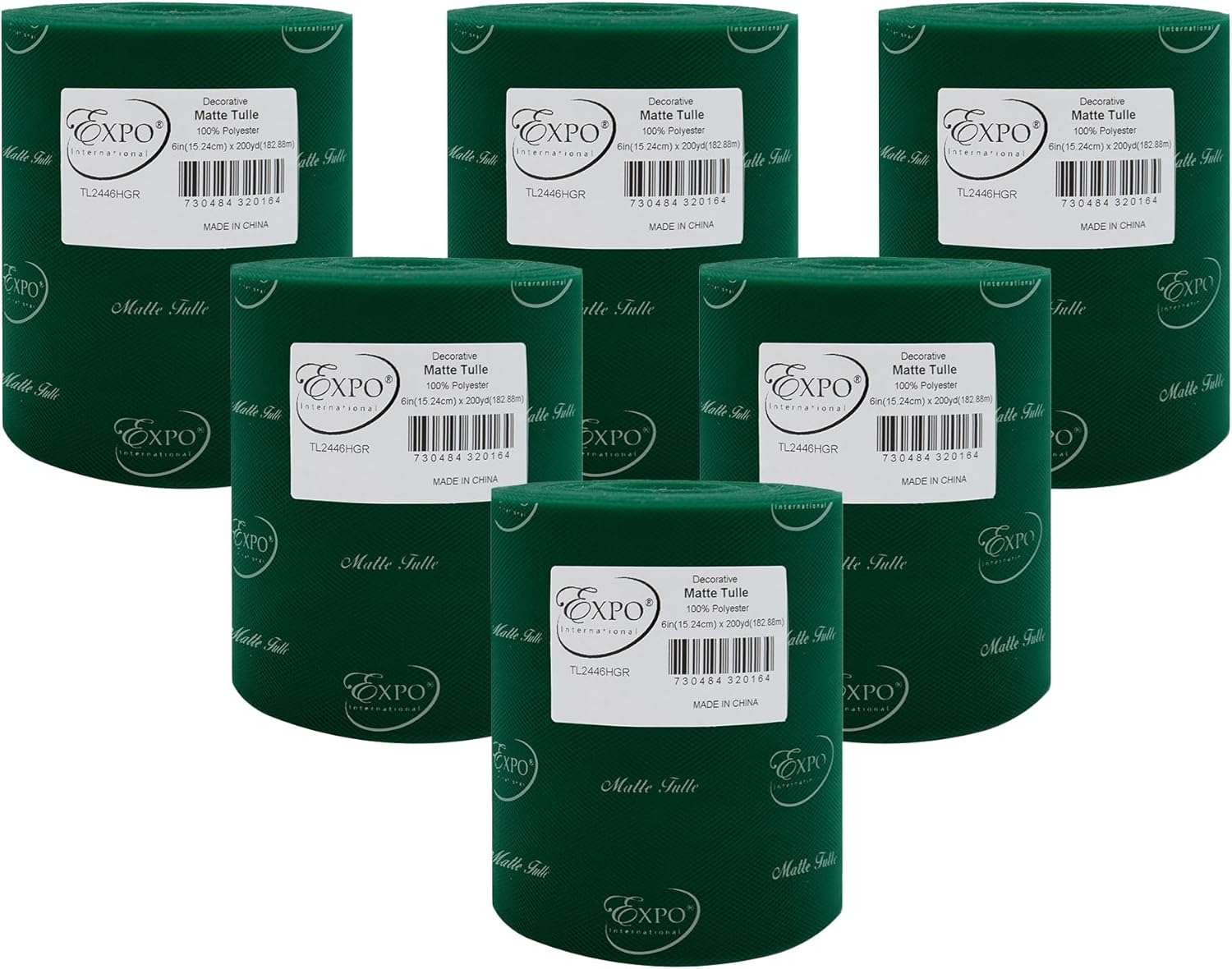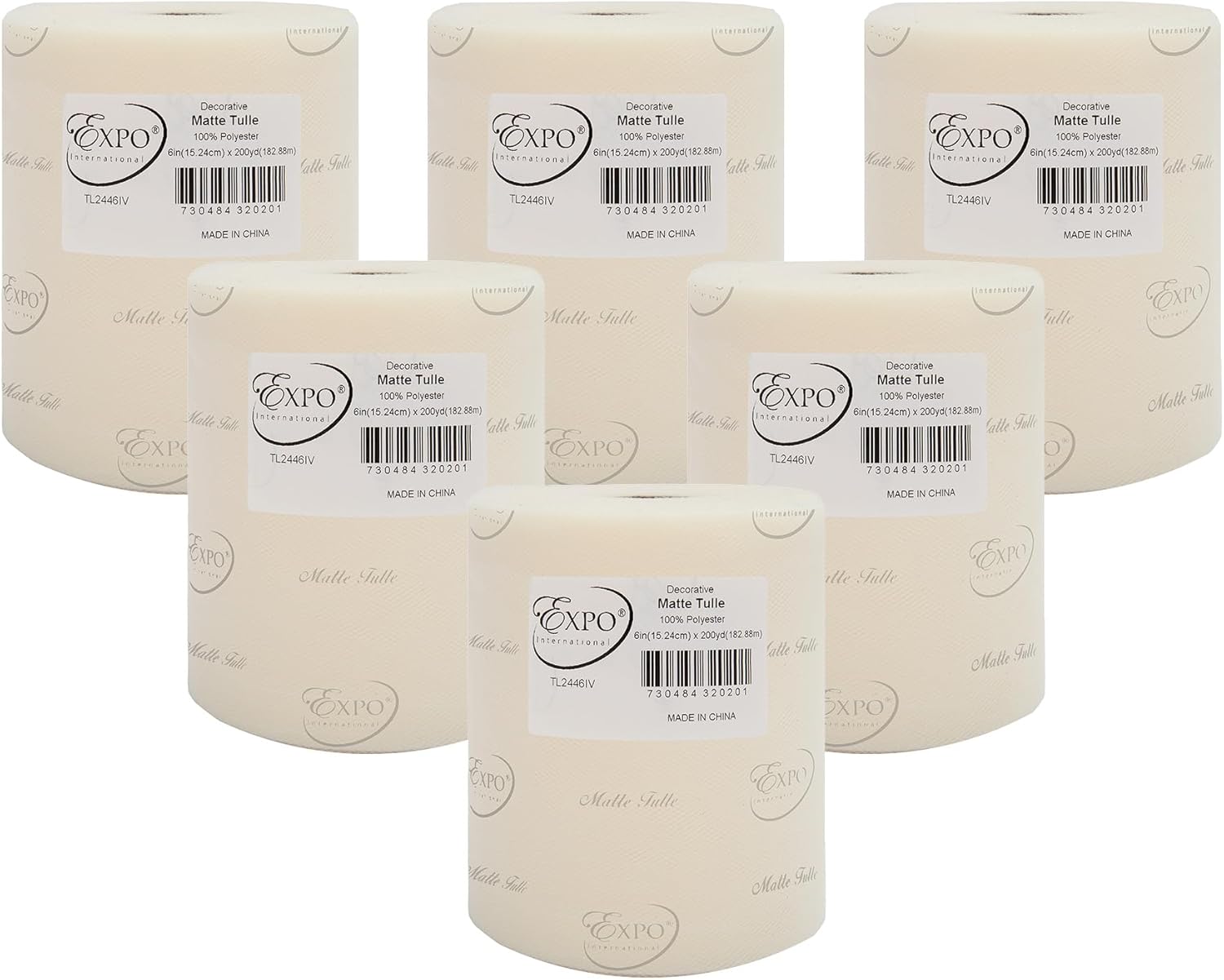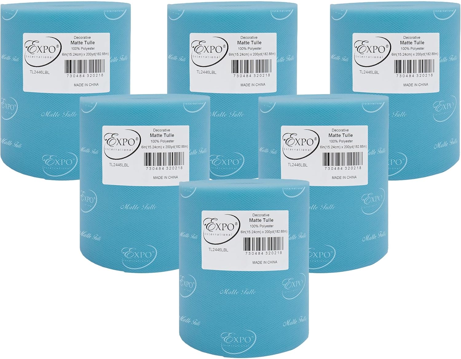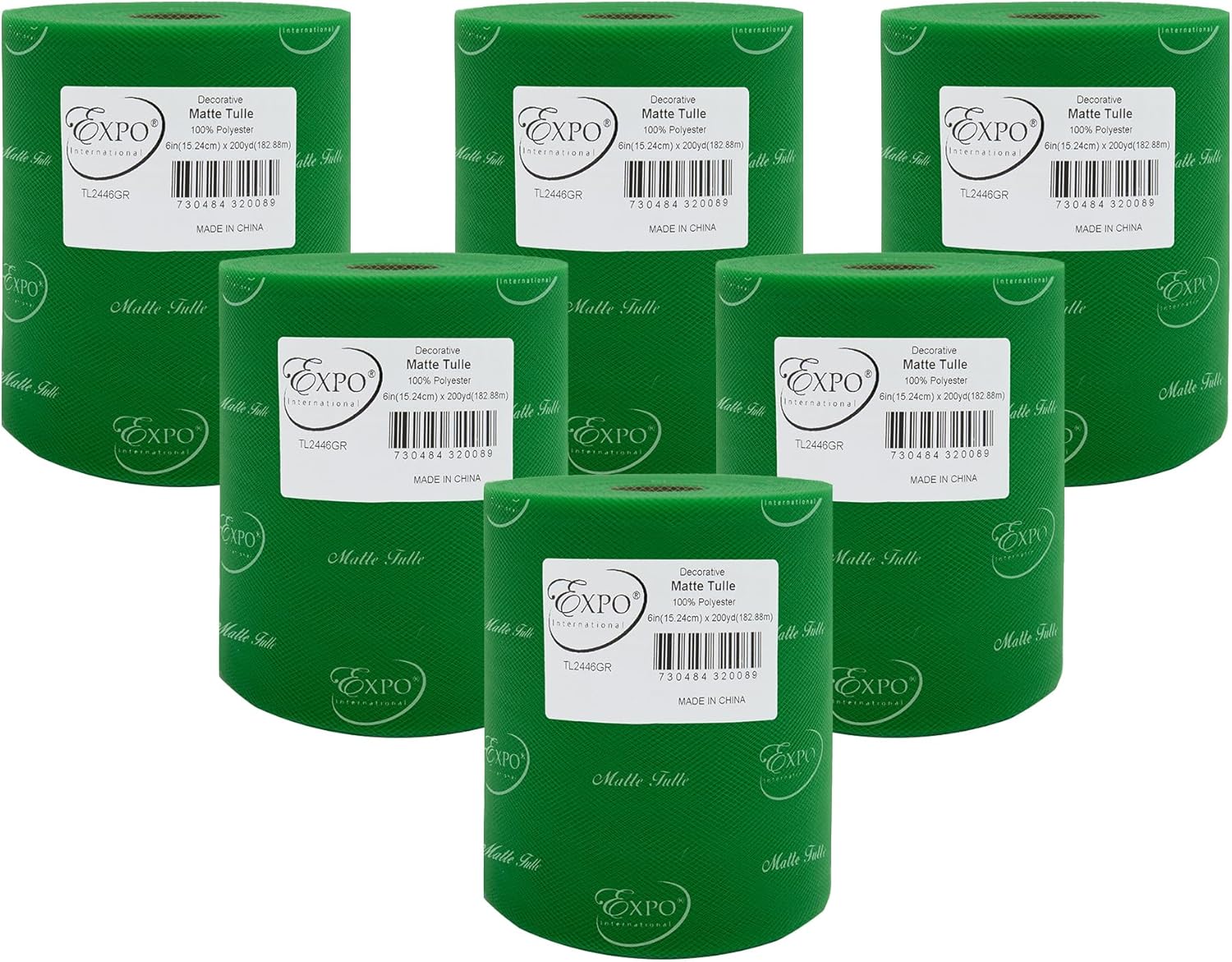 Value Pack of Decorative Matte Tulle, 6 Rolls/Spools of 6" x 200 yards (1200 yards/ 3600 feet), Lightweight Polyester Tulle Fabric for Tutus, Costumes, and Party Decorations, Washable, Easy-to-Use Let your creativity run wild as you craft stunning projects with the Expo International Decorative Matte Tulle. A perfect addition to your sewing and crafting supplies, this soft and lightweight tulle fabric is made with 100% polyester, follows CPSIA for lead content, features a beautiful matte finish, and is ideal for creating tutus, costumes, specialty fashion accessories, and more. Whether you're making headbands, hair clips, or even adding a finishing touch to a pair of shoes, this versatile tulle is sure to elevate your creations to the next level. From wreaths and pom poms to crowns and bouquets, the possibilities are endless! Our high-quality decorative matte tulle can easily be cut, tied, folded, and wrapped to create a variety of beautiful party decorations, wedding decorations, and embellishments, thereby offering great value for both the sewer and crafter alike. The generous amount of tulle on each roll means you can create multiple projects without running out, while the washable and durable tulle ensures your finished products will look stunning for years to come. Multiple color and size options are also available.