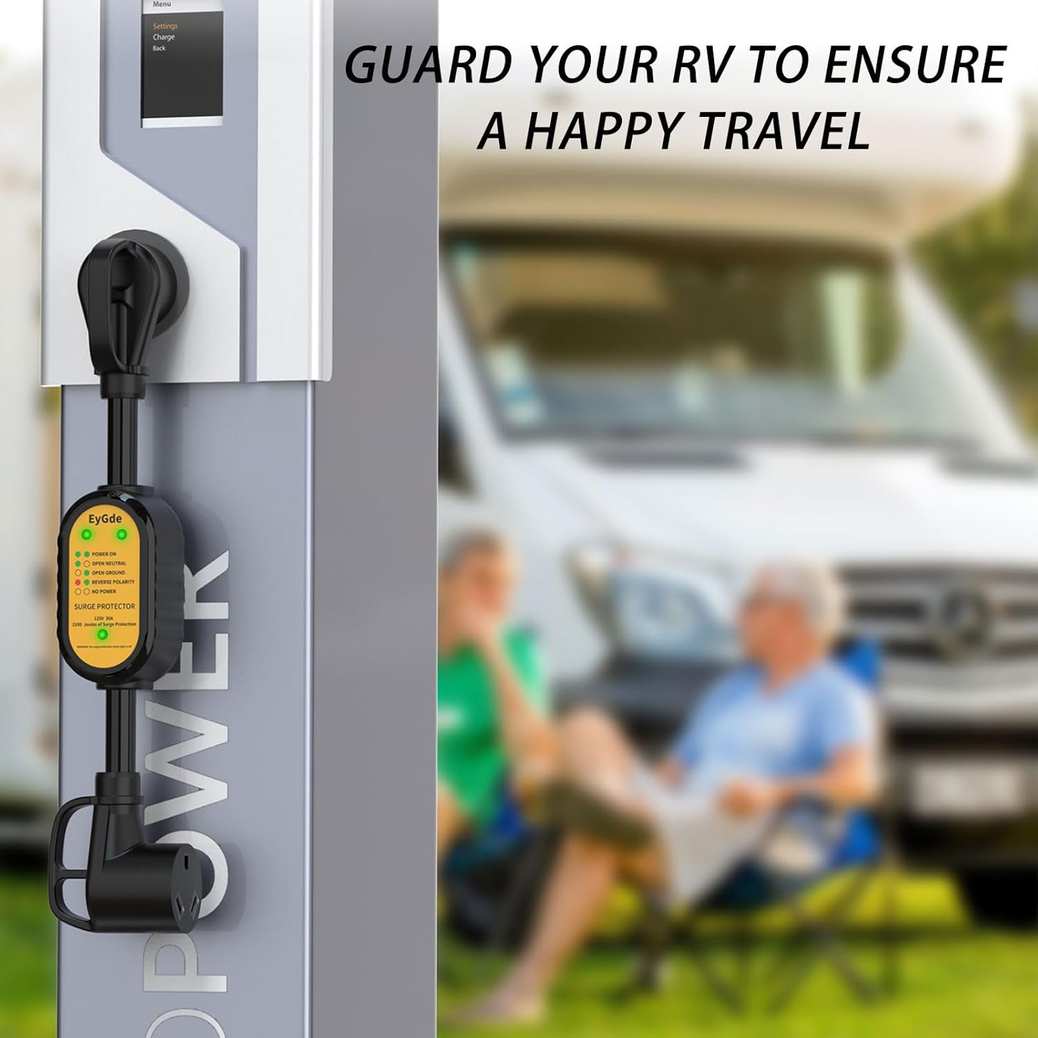 EyGde RV Surge Protector 50 Amp Waterproof - RV Circuit Analyzer Voltage Protection Power Guard for Camper Travel Trailer,Green. EyGde 30 Amp RV Surge Protector, Camper Surge Protector 30amp with 15 Amp Male to 30 Amp Female RV Adapter Plug Circuit Analyzer for Travel Trailers