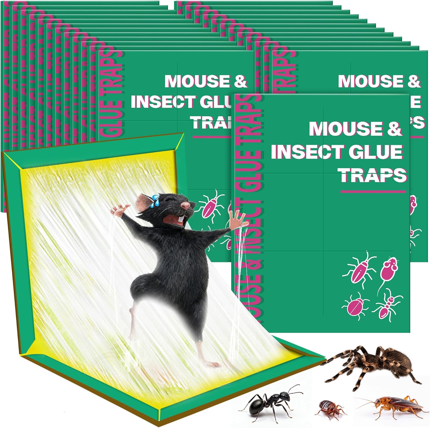 Ezoon Mouse Glue Traps with Enhanced Stickiness, Rat Mouse Traps, Snake Mouse Traps Sticky Pad Board for House Indoor Outdoor, Easy to Set(24 Pack) Easy to Use: 1.Open the mouse trap and remove the two buttons carefully. 2.Put the glue mouse board together and squeeze hard, then open it hard. Which makes the glue more adhensive and the effect better. 3.Set the bait that the mouse likes to eat to the center of the mice trap. 4.Place the mouse trap to anywhere mice frequently pass-by. Tips for Better Use: 1.Please place the mouse traps into the damp or moist locations like basements or under sinks where mouse likes to go. 2.For best effect, place 2 mouse traps 5-10 ft. 3.If the mouse is still not caught a few days later, please try a different bait or place. 4.Avoid direct sunlight exposure and water for good effect. 5.If the sticky board gets wet, please dry it up before use. 6.If the glue sticks to your hands or other objects, apply vegetable oil, turpentine or petroleum products, and wash with soap and water. 7.Keep the mouse sticky trap out of reach of children& pets. 8.To avoid polluting floor or wall, please put a larger paper under mouse traps. Package Included: 24 x Mouse Glue Traps