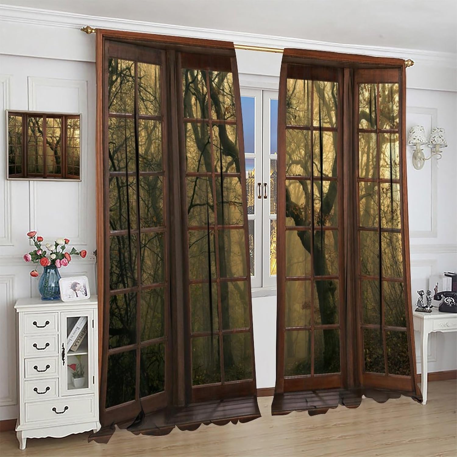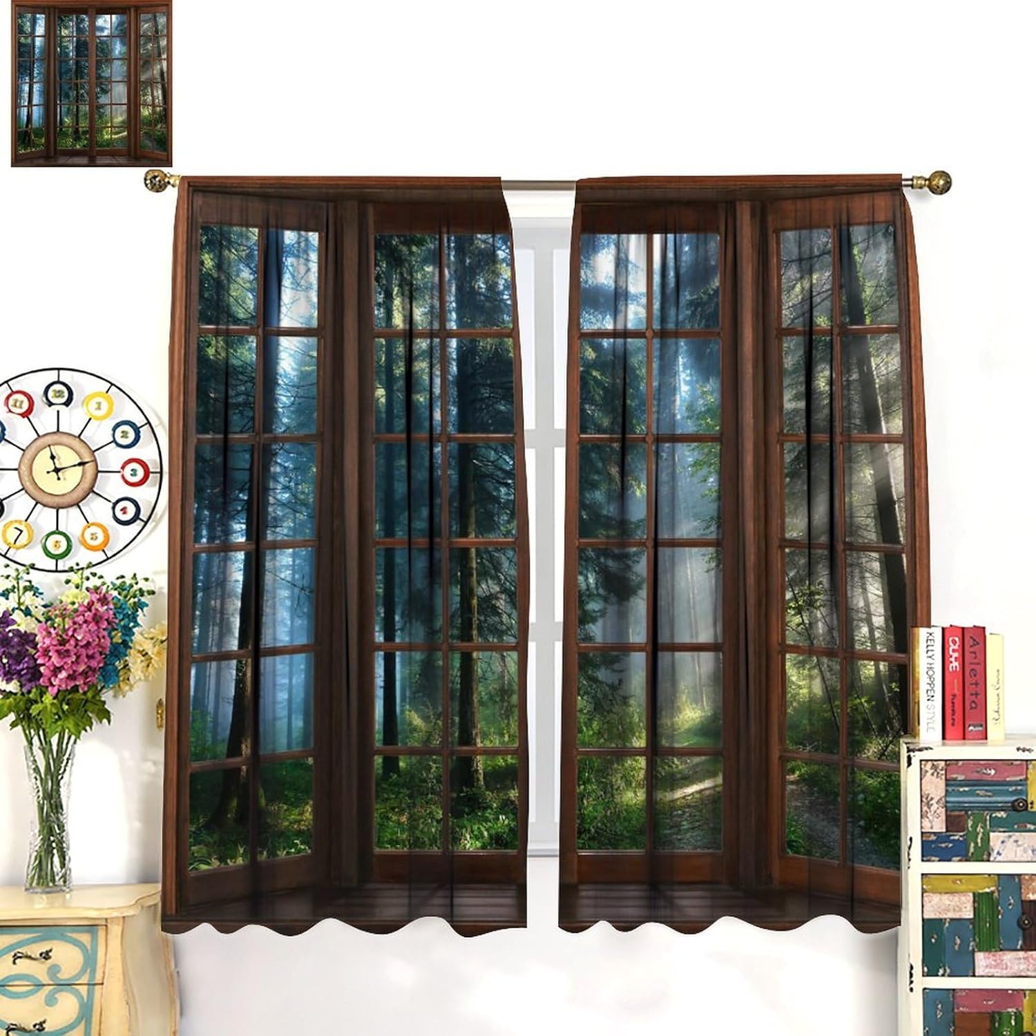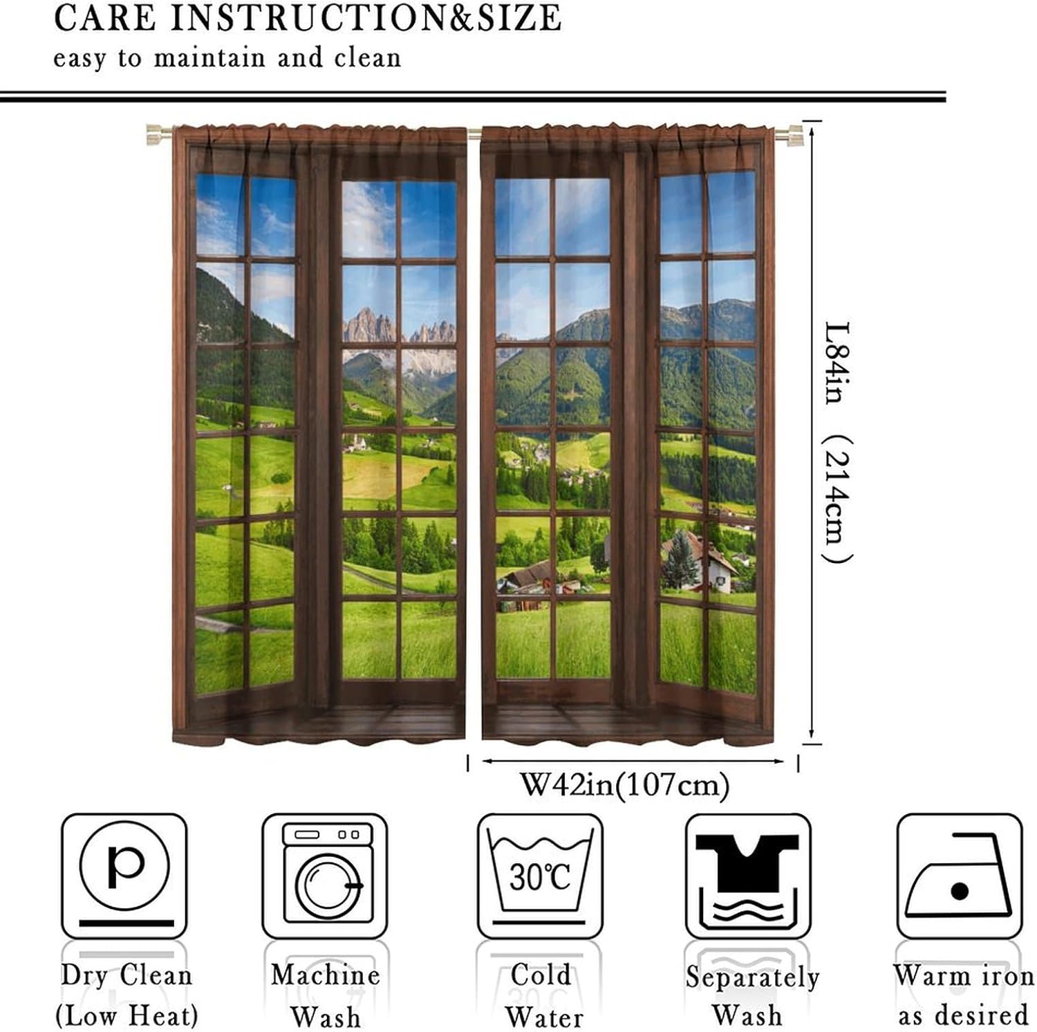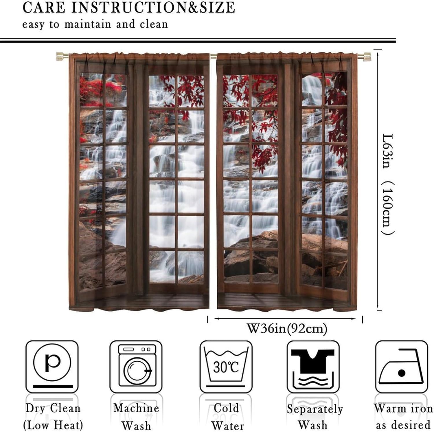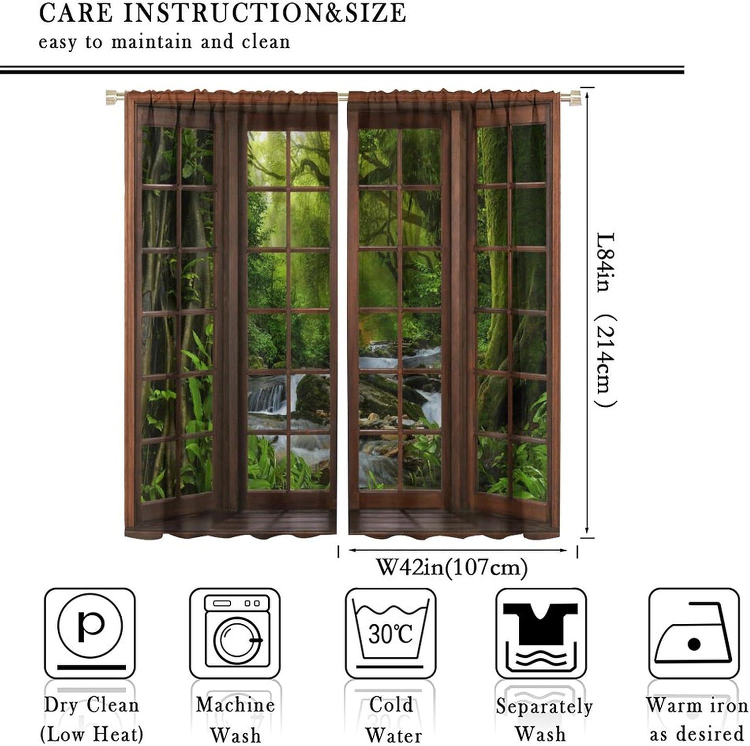 Package included:2 panels per package.Size:One panel measures 21" (W) x 45" (L). The overall size is 42"(W) x 45"(L).One panel piece measures 21" (W) x 54" (L). The overall size is 42"(W) x 54"(L).One panel piece measures 21" (W) x 63" (L). The overall size is 42"(W) x 63"(L).One panel piece measures 27.5" (W) x 63" (L). The overall size is 55" ( W ) x 63" ( L ).One panel piece measures 26" (W) x 84" (L). The overall size is 52" (W) x 84" (L).One panel piece measures 31.5" (W) x 63" (L). The overall size is 63" (W) x 63" (L).One panel piece measures 36" (W) x 63" (L). The overall size is 72" (W) x 63" (L).One panel piece measures 31.5" (W) x 72" (L). The overall size is 63" (w) x 72" (L).One panel piece measures 42" (W) x 84" (L). , The overall size is 84" (W) x 84" (L).About the material:1. Made of fiber polyester fabric.2. High color fastness, no fading even after long term use.3. No chemical coating, no odor, healthier and safer for people, especially for babies and children.About the function.1. It can block out 70%-90% of light and can protect privacy by blocking light or darkening the room.2. It is very suitable for bedroom, living room, kitchen, cafe, office, closet, door, bathroom, dining room, dormitory, nursery, outdoor patio, etc.3. It is also one of the best gifts for family, friends, relatives or yourself.Warm tips:1. Machine washable in cold water.2. The pattern is only on one side, the other side is white.3. Due to manual measurement, please allow 1-2 cm difference.Our service:We focus on customer satisfaction. If you have any questions or problems, please contact us by email, we will reply within 24 hours and provide a satisfactory solution.