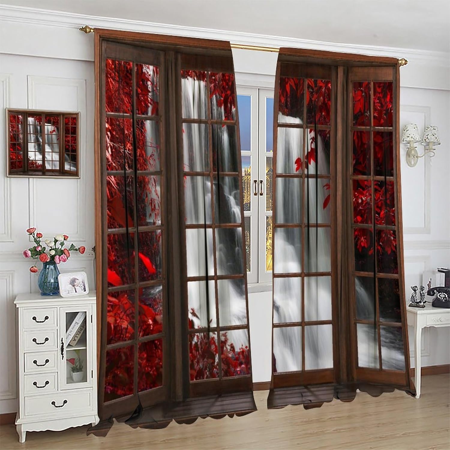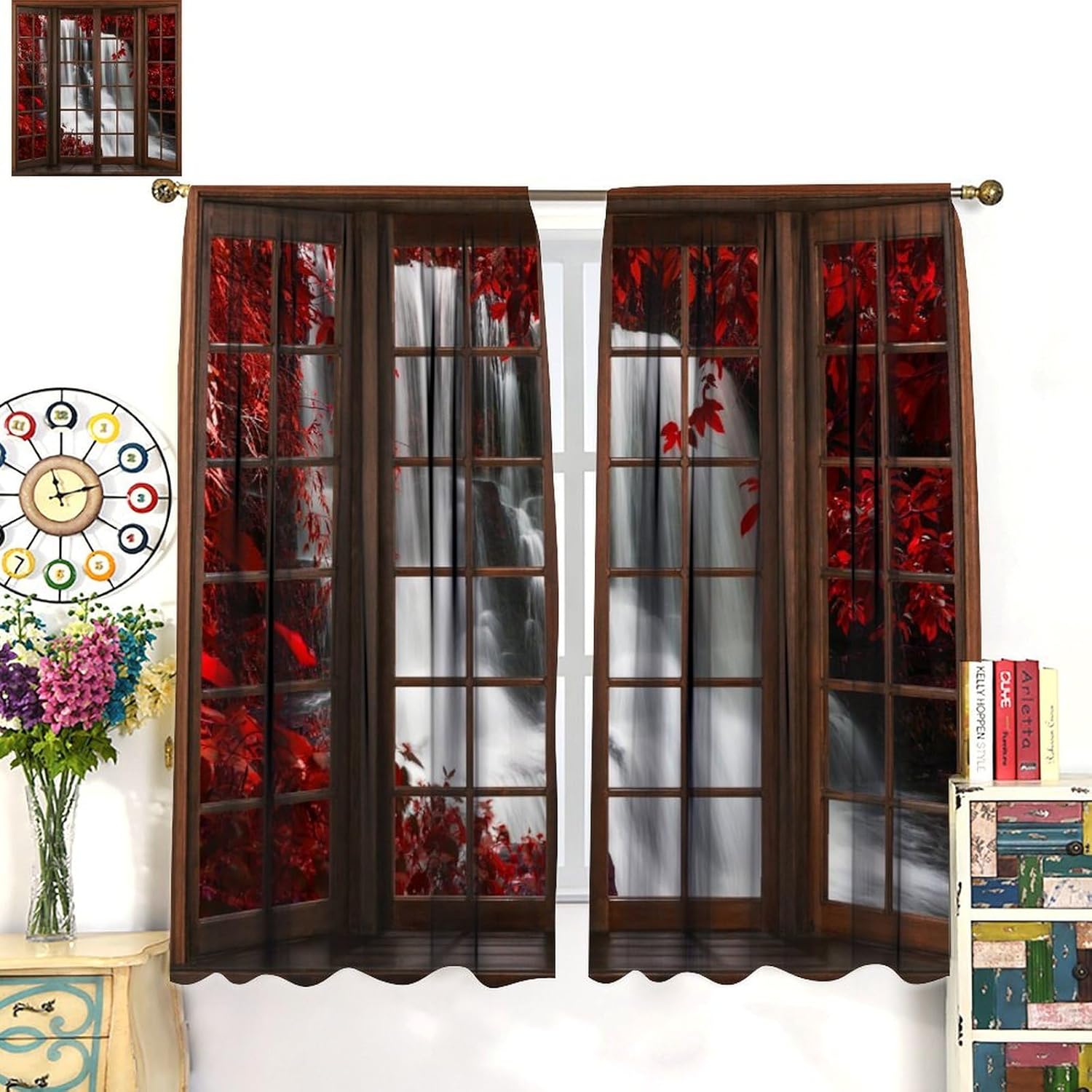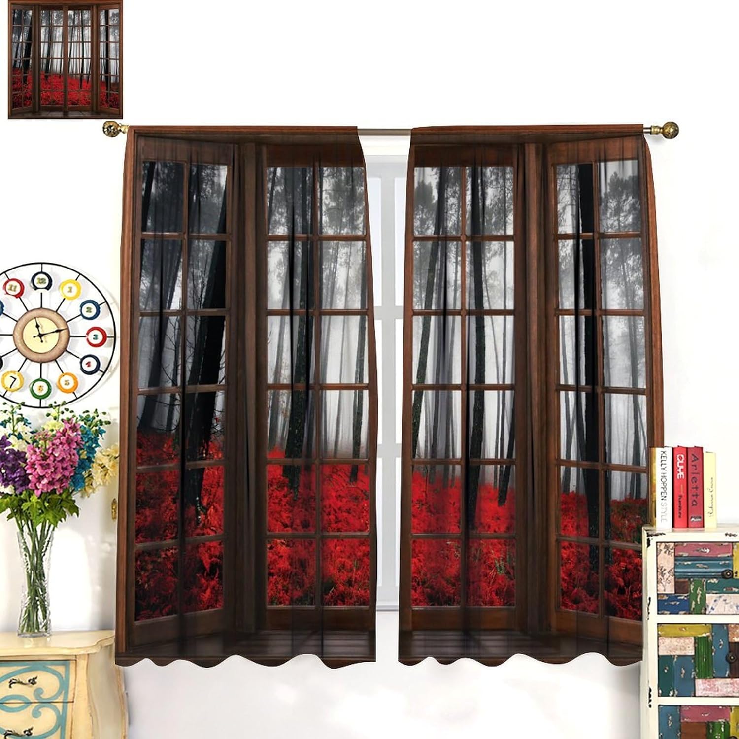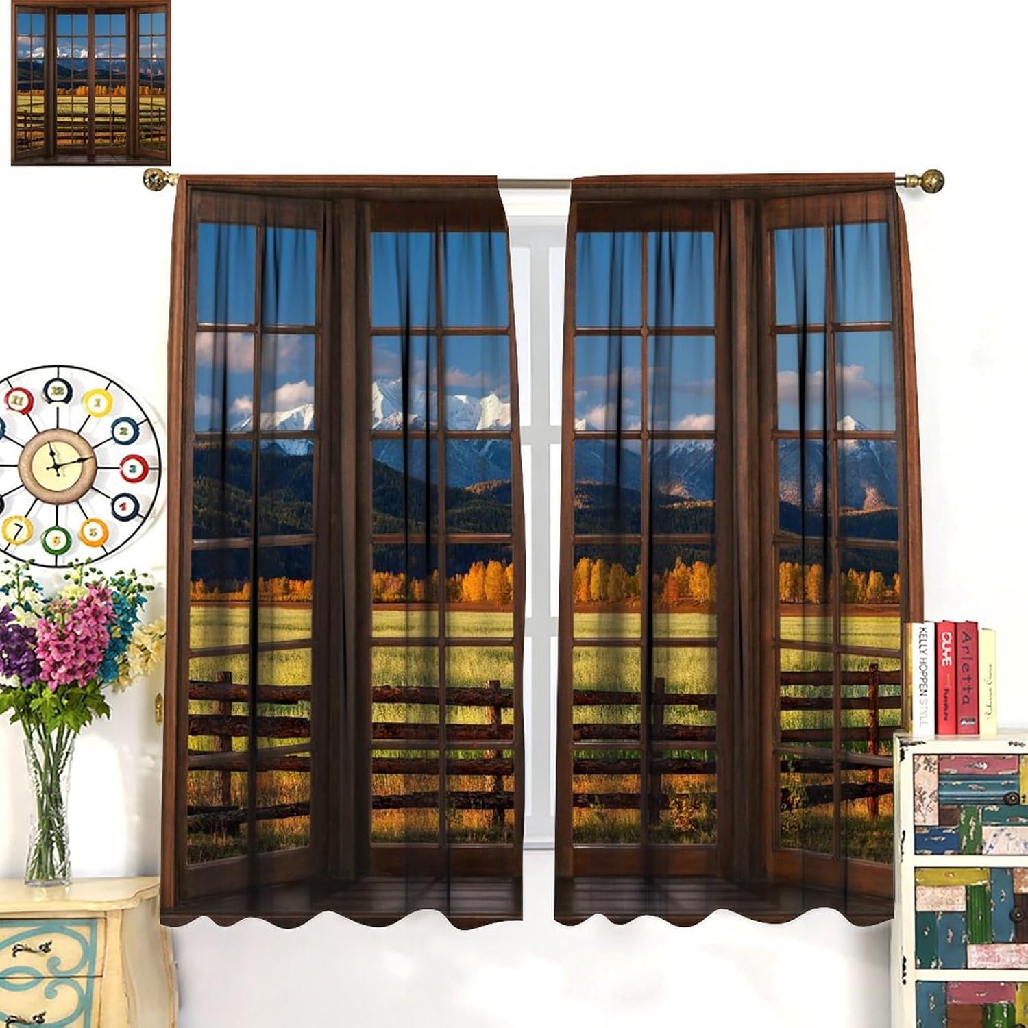 Package included:2 panels per package.Size:One panel measures 21" (W) x 45" (L). The overall size is 42"(W) x 45"(L).One panel piece measures 21" (W) x 54" (L). The overall size is 42"(W) x 54"(L).One panel piece measures 21" (W) x 63" (L). The overall size is 42"(W) x 63"(L).One panel piece measures 27.5" (W) x 63" (L). The overall size is 55" ( W ) x 63" ( L ).One panel piece measures 26" (W) x 84" (L). The overall size is 52" (W) x 84" (L).One panel piece measures 31.5" (W) x 63" (L). The overall size is 63" (W) x 63" (L).One panel piece measures 36" (W) x 63" (L). The overall size is 72" (W) x 63" (L).One panel piece measures 31.5" (W) x 72" (L). The overall size is 63" (w) x 72" (L).One panel piece measures 42" (W) x 84" (L). , The overall size is 84" (W) x 84" (L).About the material:1. Made of fiber polyester fabric.2. High color fastness, no fading even after long term use.3. No chemical coating, no odor, healthier and safer for people, especially for babies and children.About the function.1. It can block out 70%-90% of light and can protect privacy by blocking light or darkening the room.2. It is very suitable for bedroom, living room, kitchen, cafe, office, closet, door, bathroom, dining room, dormitory, nursery, outdoor patio, etc.3. It is also one of the best gifts for family, friends, relatives or yourself.Warm tips:1. Machine washable in cold water.2. The pattern is only on one side, the other side is white.3. Due to manual measurement, please allow 1-2 cm difference.Our service:We focus on customer satisfaction. If you have any questions or problems, please contact us by email, we will reply within 24 hours and provide a satisfactory solution.