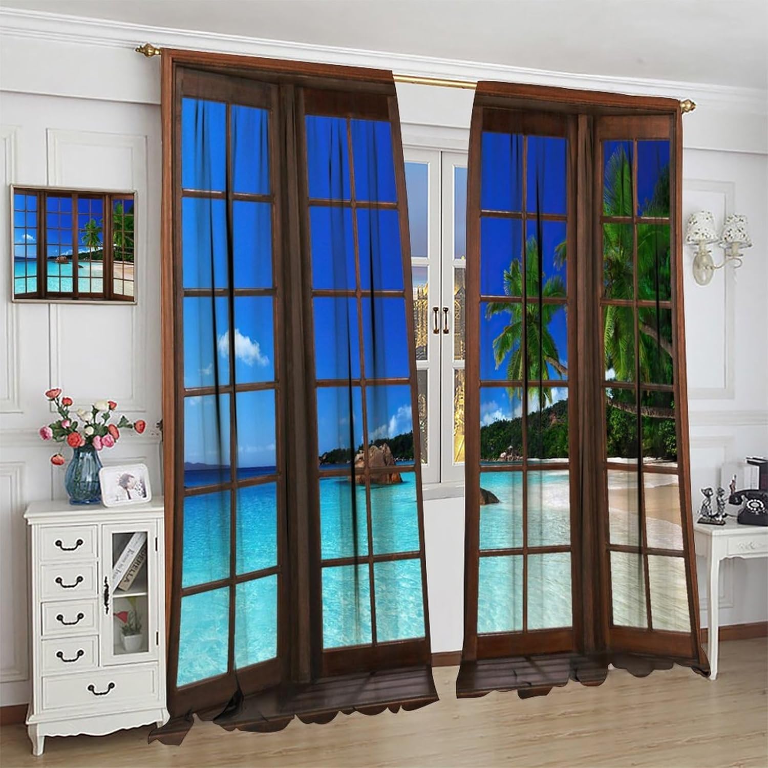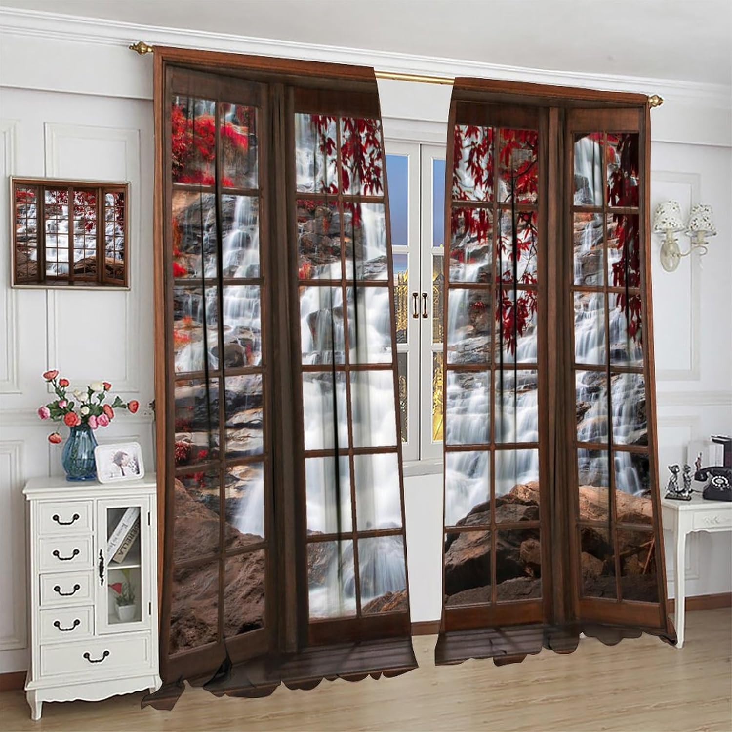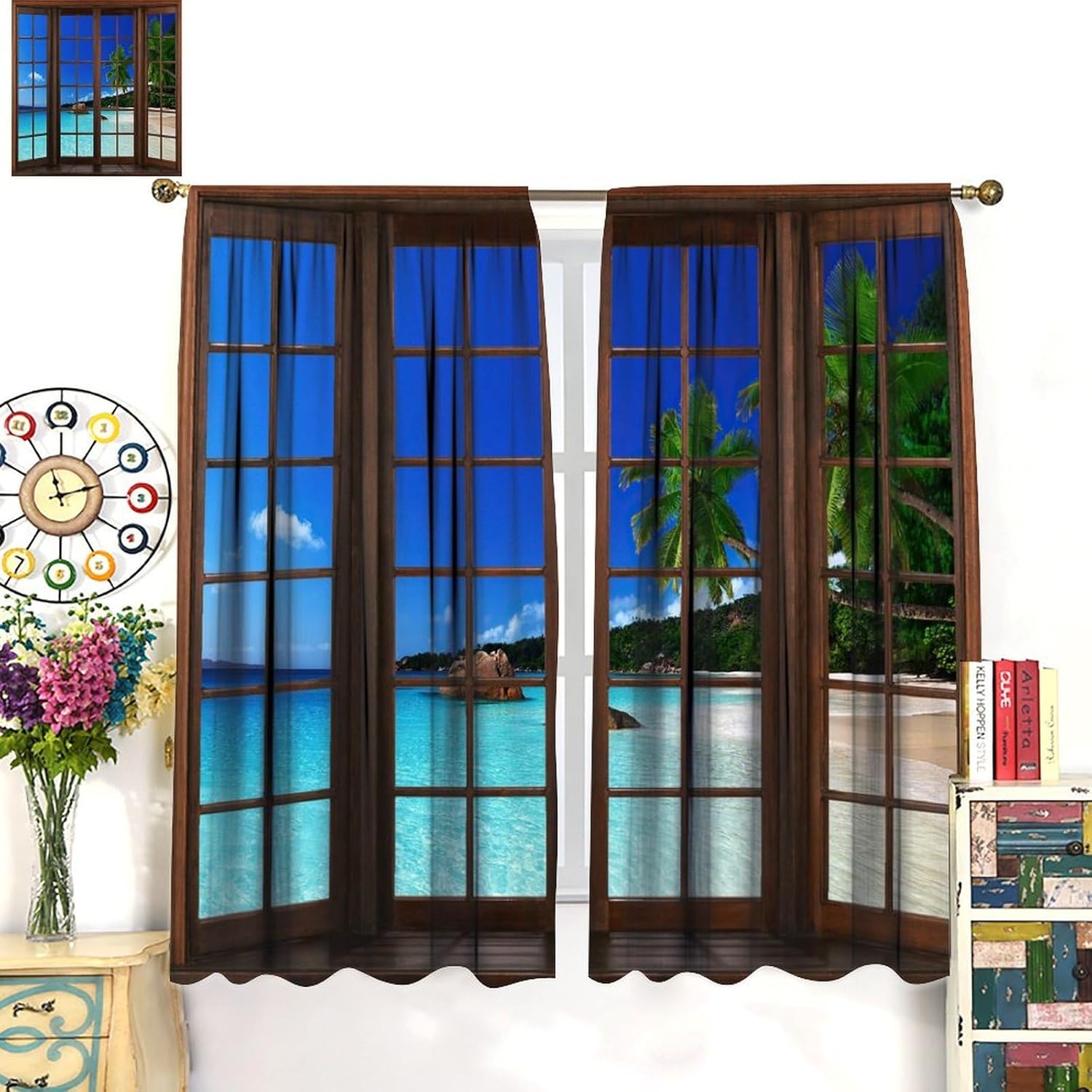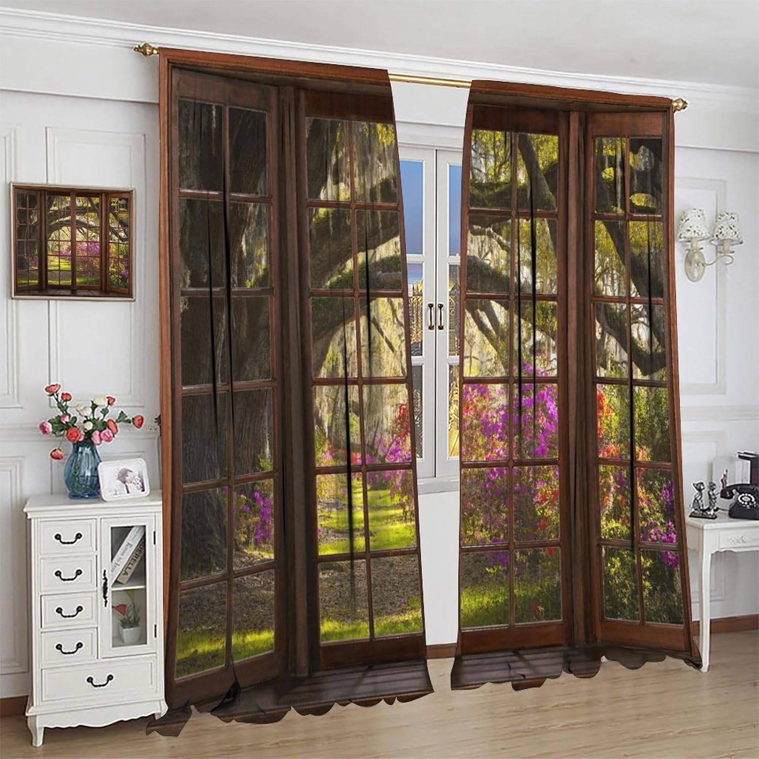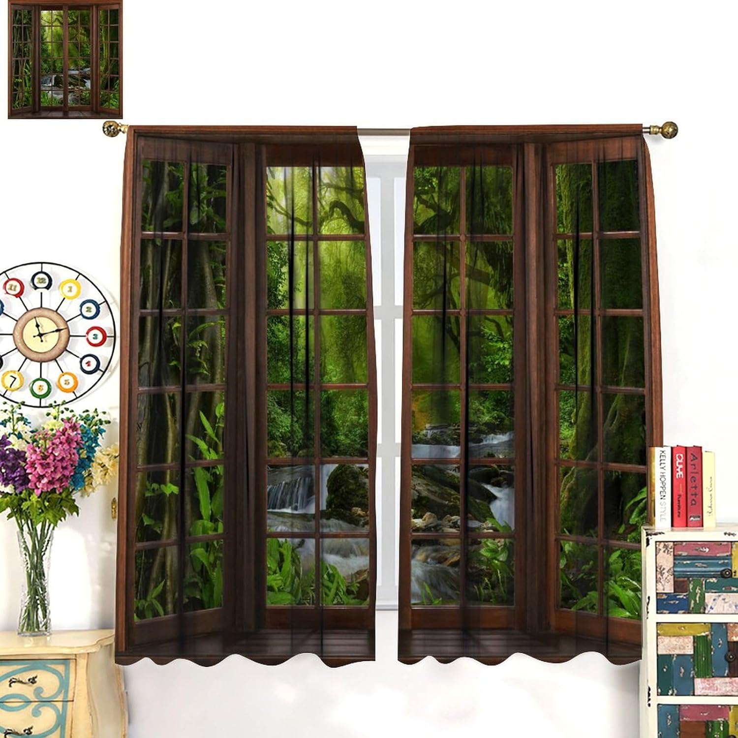 Package included:2 panels per package.Size:One panel measures 21" (W) x 45" (L). The overall size is 42"(W) x 45"(L).One panel piece measures 21" (W) x 54" (L). The overall size is 42"(W) x 54"(L).One panel piece measures 21" (W) x 63" (L). The overall size is 42"(W) x 63"(L).One panel piece measures 27.5" (W) x 63" (L). The overall size is 55" ( W ) x 63" ( L ).One panel piece measures 26" (W) x 84" (L). The overall size is 52" (W) x 84" (L).One panel piece measures 31.5" (W) x 63" (L). The overall size is 63" (W) x 63" (L).One panel piece measures 36" (W) x 63" (L). The overall size is 72" (W) x 63" (L).One panel piece measures 31.5" (W) x 72" (L). The overall size is 63" (w) x 72" (L).One panel piece measures 42" (W) x 84" (L). , The overall size is 84" (W) x 84" (L).About the material:1. Made of fiber polyester fabric.2. High color fastness, no fading even after long term use.3. No chemical coating, no odor, healthier and safer for people, especially for babies and children.About the function.1. It can block out 70%-90% of light and can protect privacy by blocking light or darkening the room.2. It is very suitable for bedroom, living room, kitchen, cafe, office, closet, door, bathroom, dining room, dormitory, nursery, outdoor patio, etc.3. It is also one of the best gifts for family, friends, relatives or yourself.Warm tips:1. Machine washable in cold water.2. The pattern is only on one side, the other side is white.3. Due to manual measurement, please allow 1-2 cm difference.Our service:We focus on customer satisfaction. If you have any questions or problems, please contact us by email, we will reply within 24 hours and provide a satisfactory solution.