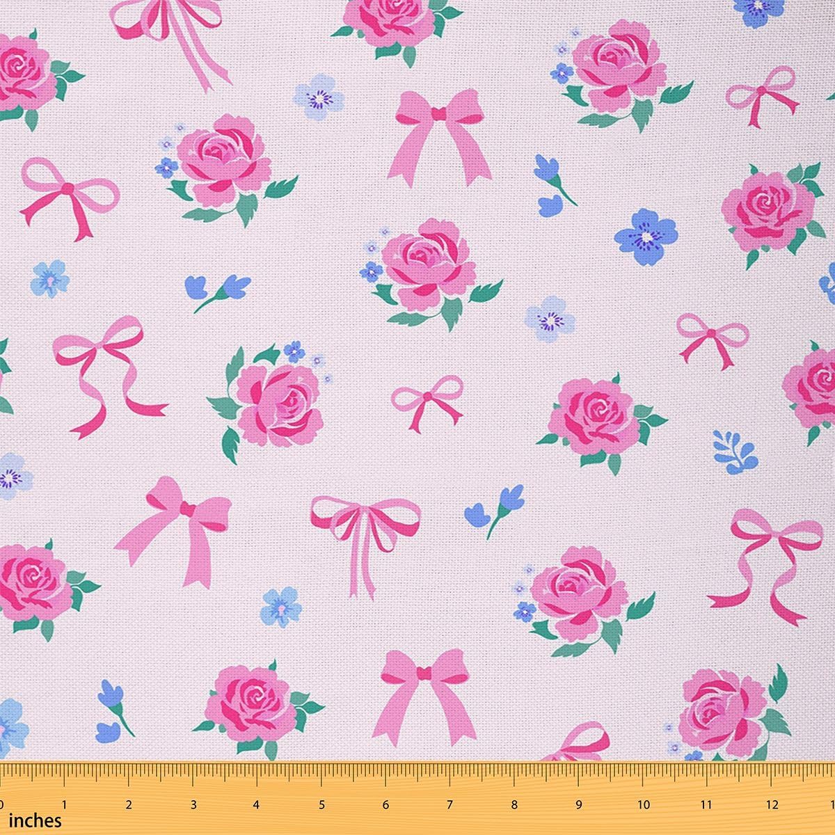 Feelyou Kids Cute Strawberry Upholstery Fabric for Chairs 3 Yards,Kawaii Fruit Butterfly Fabric by The Yard, Floral Flower Decorative Waterproof Pink