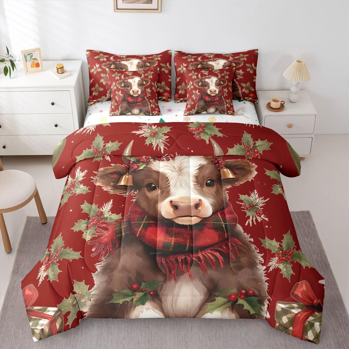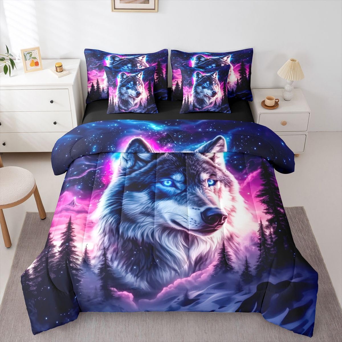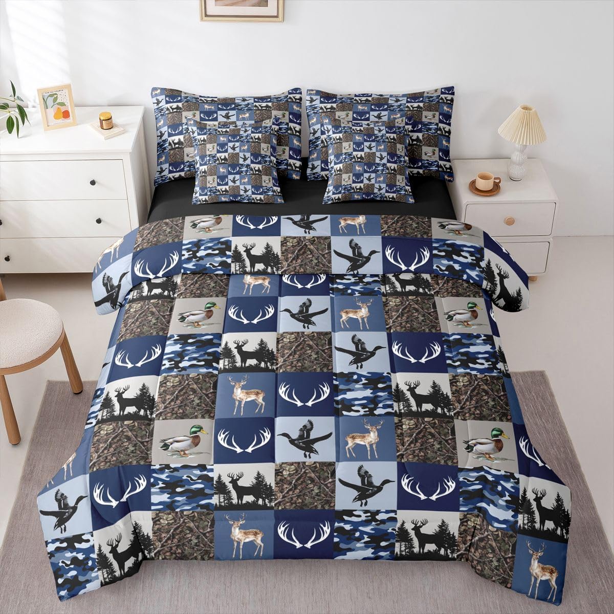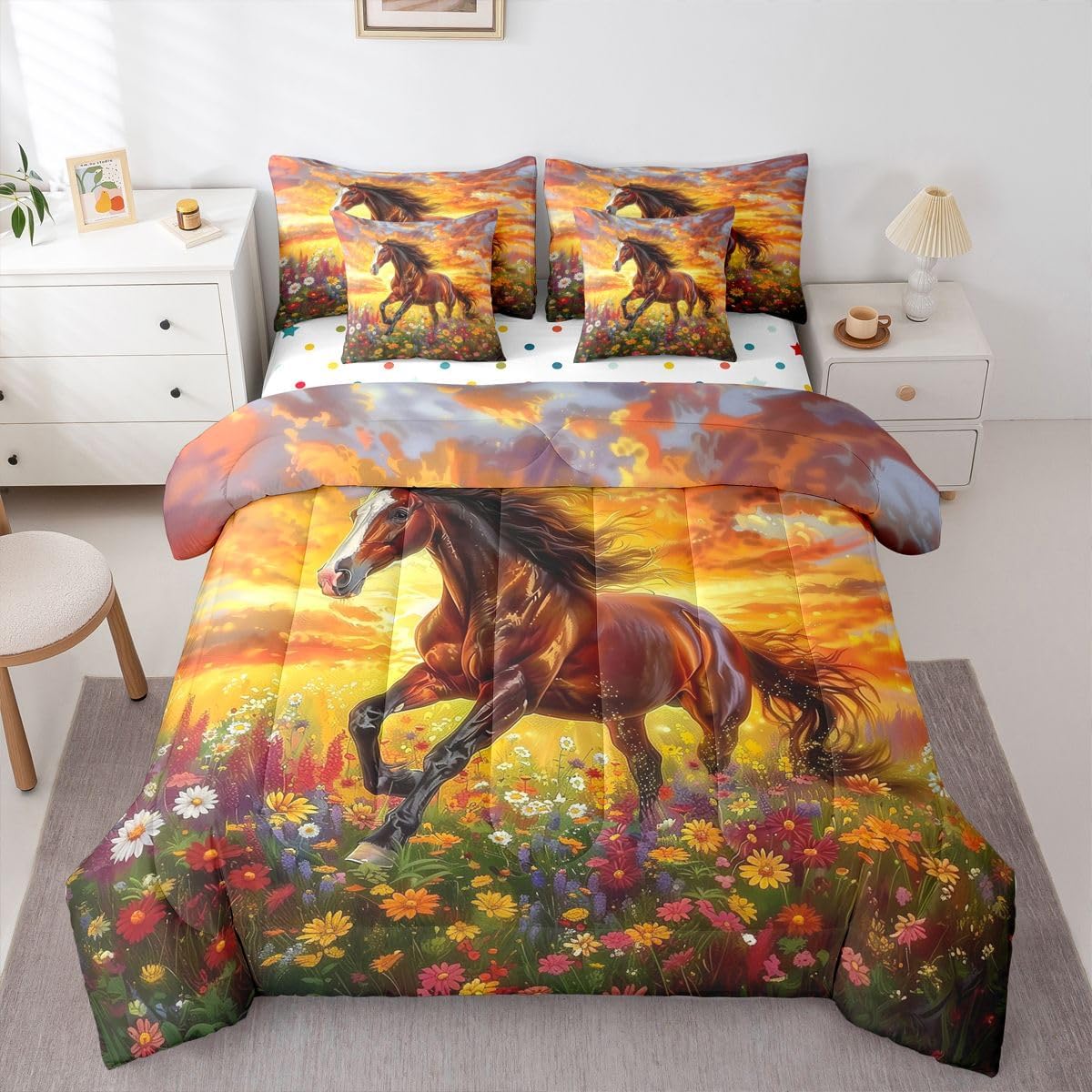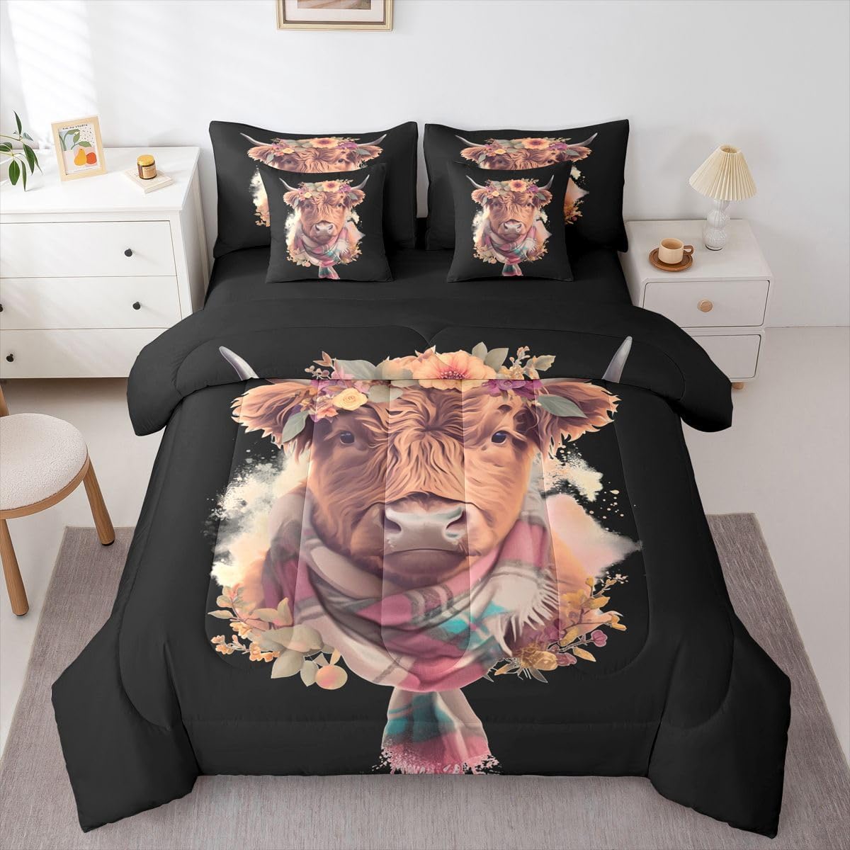 Why choose us Everyone has their own preferences; we develop different styles and different designs to suit the hobbies and aesthetics of different people; we look forward to bringing more joy and fun into your life; special design for special you; it's not just a simple home product, it's a way of life Brighten up your bedroom with this bed linen set; this bright and colourful bedding set features vibrant colours and special print pattern; turn the reversible duvet set over for a new look against a modern geometric background Convenient to use due to polyester which is super soft and comfortable; this all year round bedding is designed to be lightweight and breathable for a good night's sleep; a practical product for homes, dormitories, hotels, guest rooms Twin bedding set includes 1 twin comforter: 68"x90", 1 fitted sheet: 39"x75"x16", 1 flat sheet: 66"x96", 2 Pillowcases: 20"x30", 2 square pillow covers: 18"x18", perfect for a twin size bed. Full bedding set includes 1 full comforter: 79"x90", 1 fitted sheet: 54"x75"x16", 1 flat sheet: 81"x96", 2 Pillowcases: 20"x30", 2 square pillow covers: 18"x18", perfect for a full size bed. Queen bedding set includes 1 queen comforter: 90"x90", 1 fitted sheet: 60"x80"x16", 1 flat sheet: 90"x102", 2 Pillowcases: 20"x30", 2 square pillow covers: 18"x18", perfect for a queen size bed. King bedding set includes 1 king comforter: 104"x90", 1 fitted sheet: 78"x80"x16", 1 flat sheet: 90"x106", 2 Pillowcases: 20"x36", 2 square pillow covers: 18"x18", perfect for a king size bed. In addition to this comforter set with sheets, there are curtains, area rugs, shower curtains, blankets and other furniture with the same design waiting for you to explore. Whether it is for birthday of your family or friends, relatives, or just for yourself, the item should be interesting and authentic.