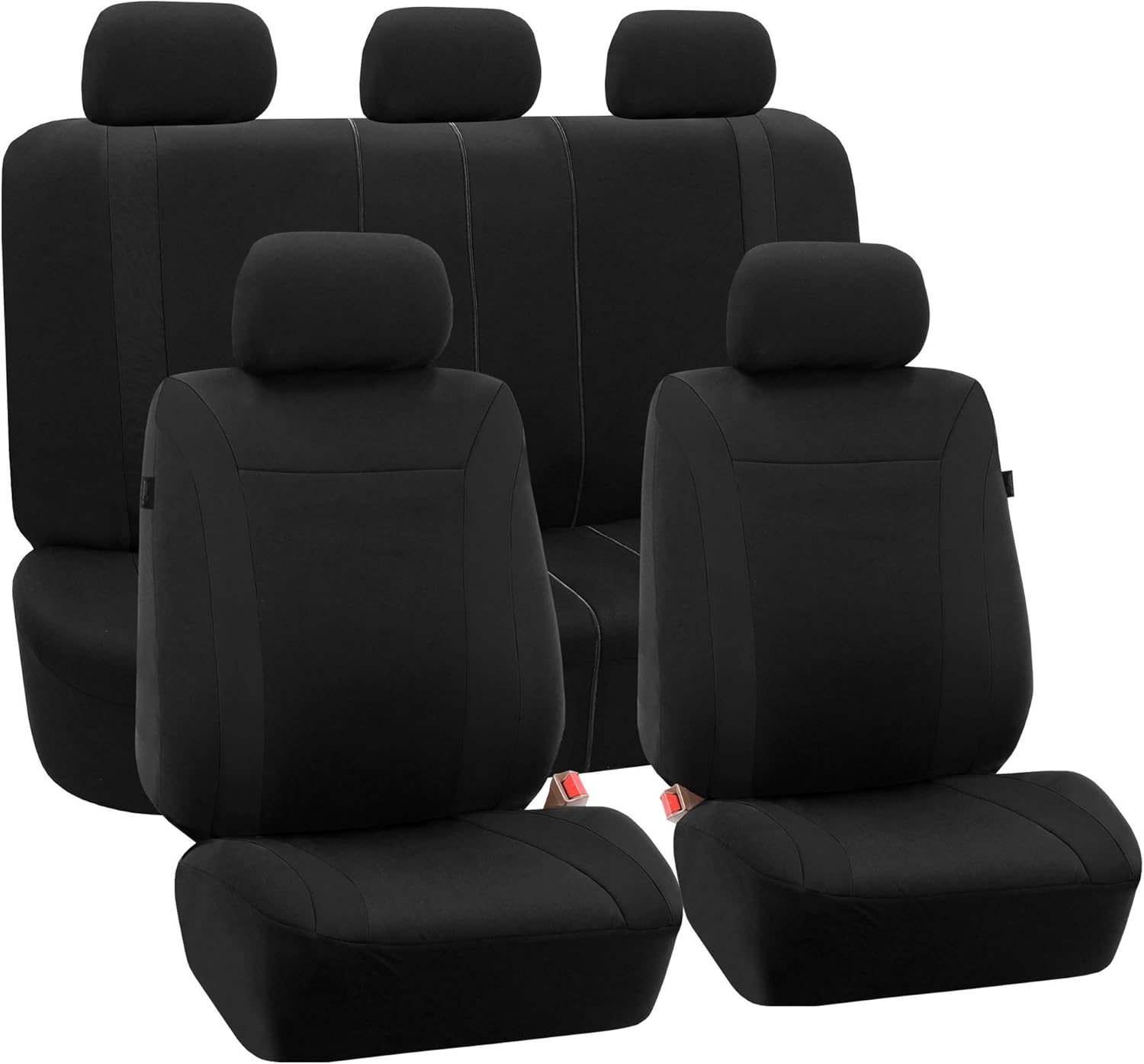 FH Group got you covered! Our full set of premium cloth car seat covers not only provide the best protection for your car's upholstery against any type of mess but they also enhance the looks of your car's interior. No need to worry anymore about spills, stains, mud, or anything damaging your original car seats because this car seat protector got your back. This full set of car seat covers includes two front low back seat covers, which are compatible with most sedans, SUVs, and vans’ seats with removable headrests only. Our rear seat covers are fully compatible with 50/50, 40/60, or 60/40 split rear benches or longer benches. The cover features 3 zippers in the backrest AND bottom, and extra mesh pieces so you can move the rear seat freely or use the middle arm rests and get full protection. We understand messes happen, that’s why these waterproof and washable seat covers for cars are convenient for any type of driver. We offer automotive seat covers in numerous fabrics, colors, and designs, so you can easily find the seat cover for cars that fits your style the most. We have car seat covers for women, for men and for everyone FH Group car seat covers are a great car interior accessory for your vehicle. We have it all: car seat covers for SUV, car seat covers for autos, car seat covers for vans, you name it!