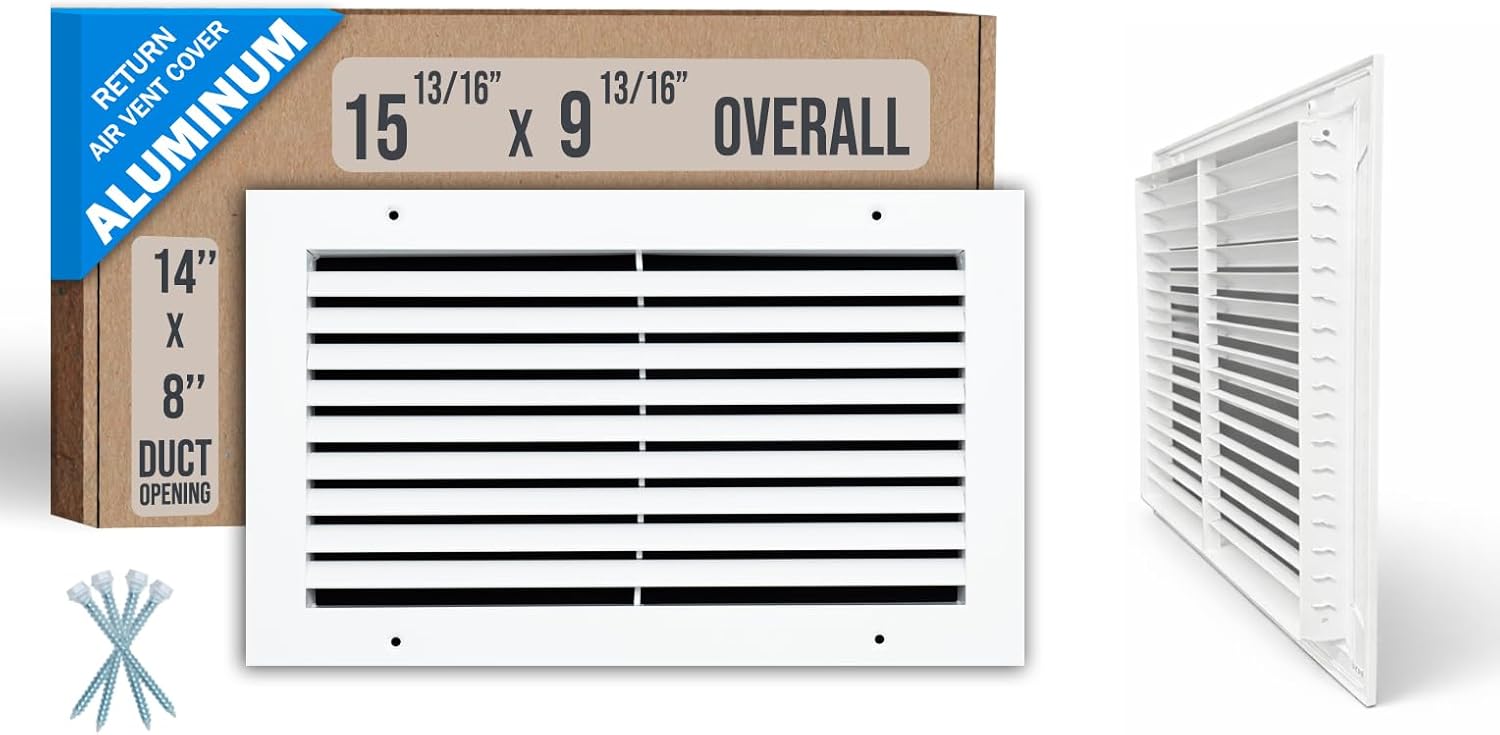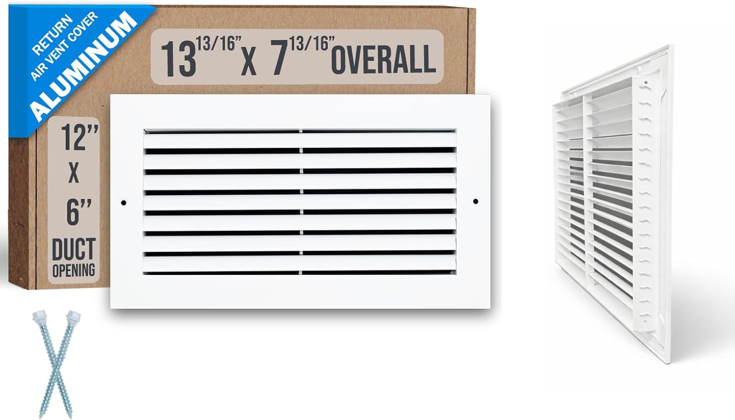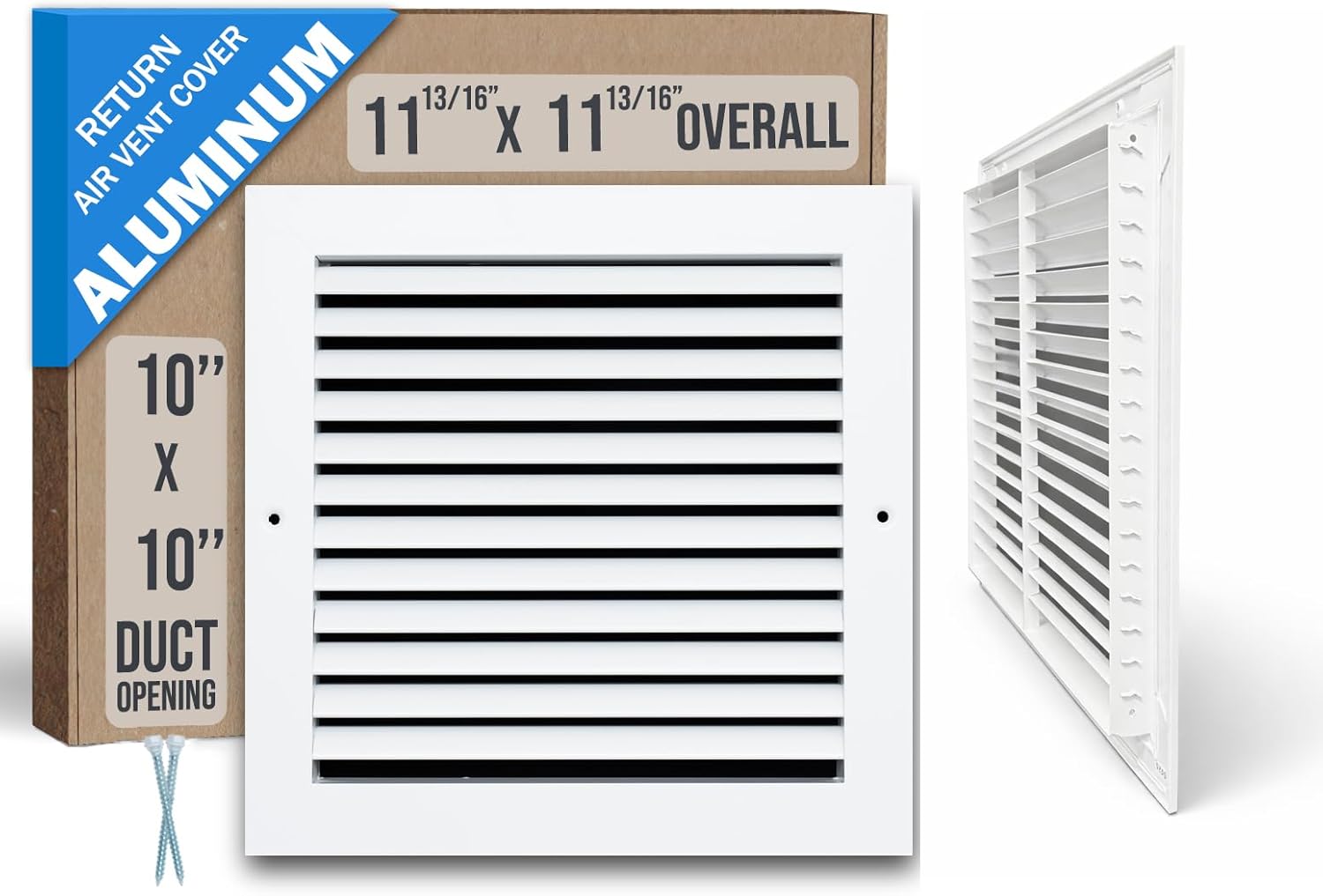 Premium Aluminum Vent Cover for Enhanced Airflow and StyleEnhance your space with our PREMIUM ALUMINUM VENT COVER, designed for optimal airflow and modern style. Crafted from high-quality aluminum with a durable powder-coated finish, this lightweight and rust-resistant vent cover ensures long-lasting performance in residential or commercial settings. Its sleek design features linear curved fins angled at 45 degrees, maximizing airflow while minimizing noise for quiet, efficient ventilation. The contemporary finish resists scratches, flaking, and fading, complementing any dรฉcor. Sizing is simple: measure your duct opening, as the listed size corresponds to the wall or ceiling opening dimensions, with outer grille dimensions 1 13/16" larger for a perfect fit. Suitable for sidewall or ceiling installations, this vent cover includes screws for hassle-free mounting, offering an effortless way to improve ventilation and air quality in your space.